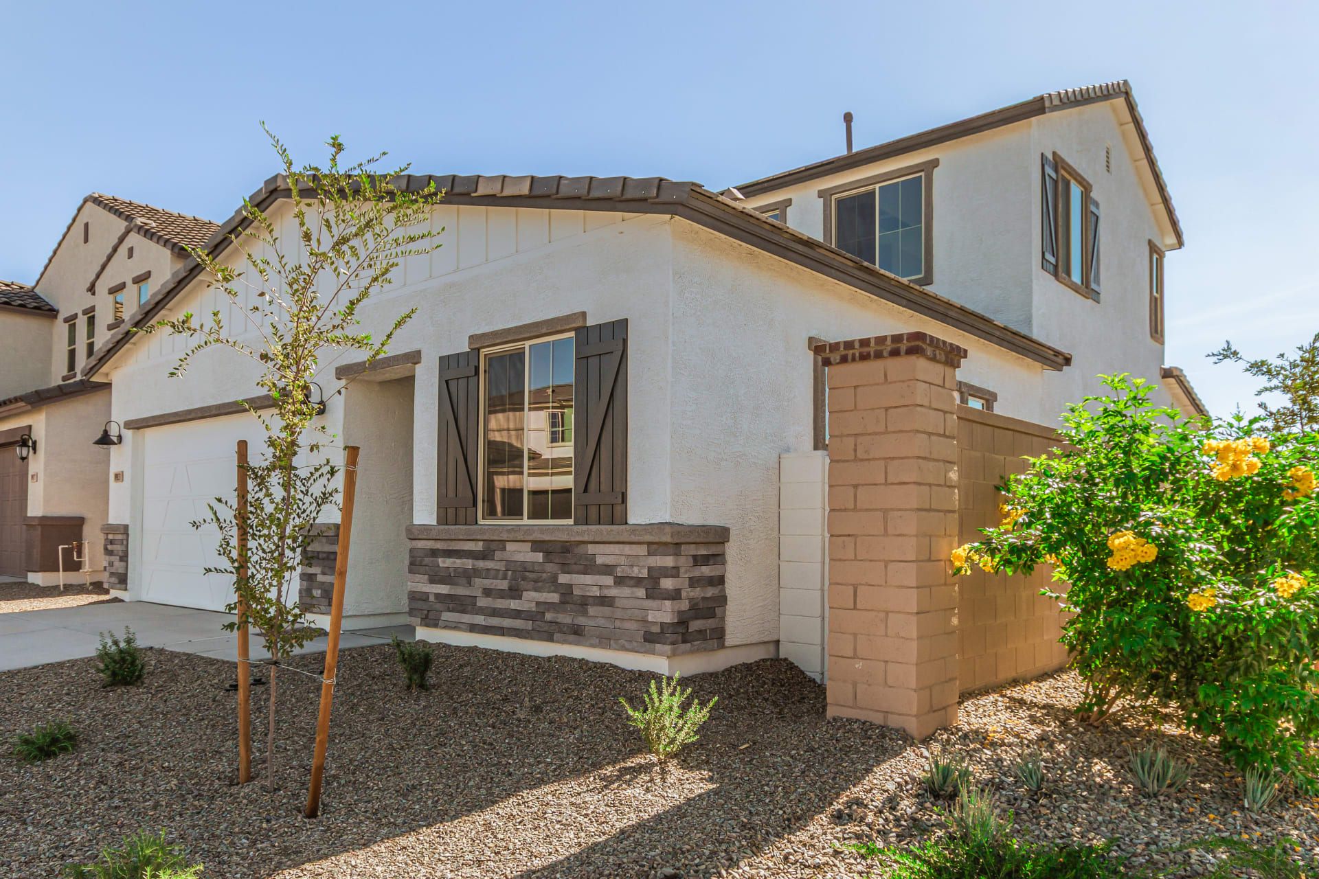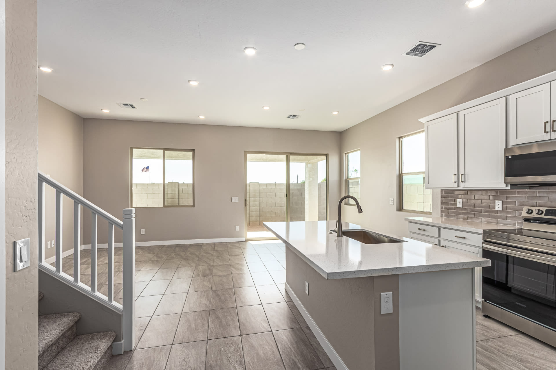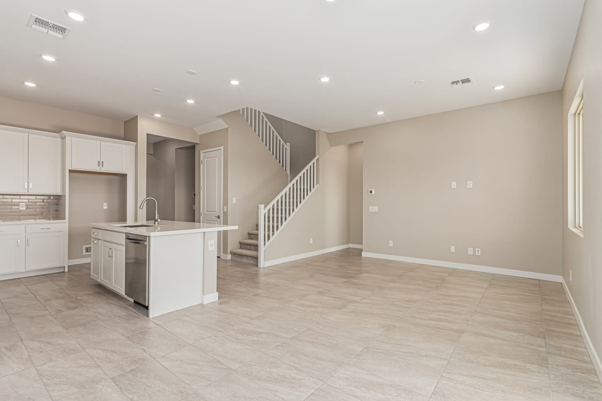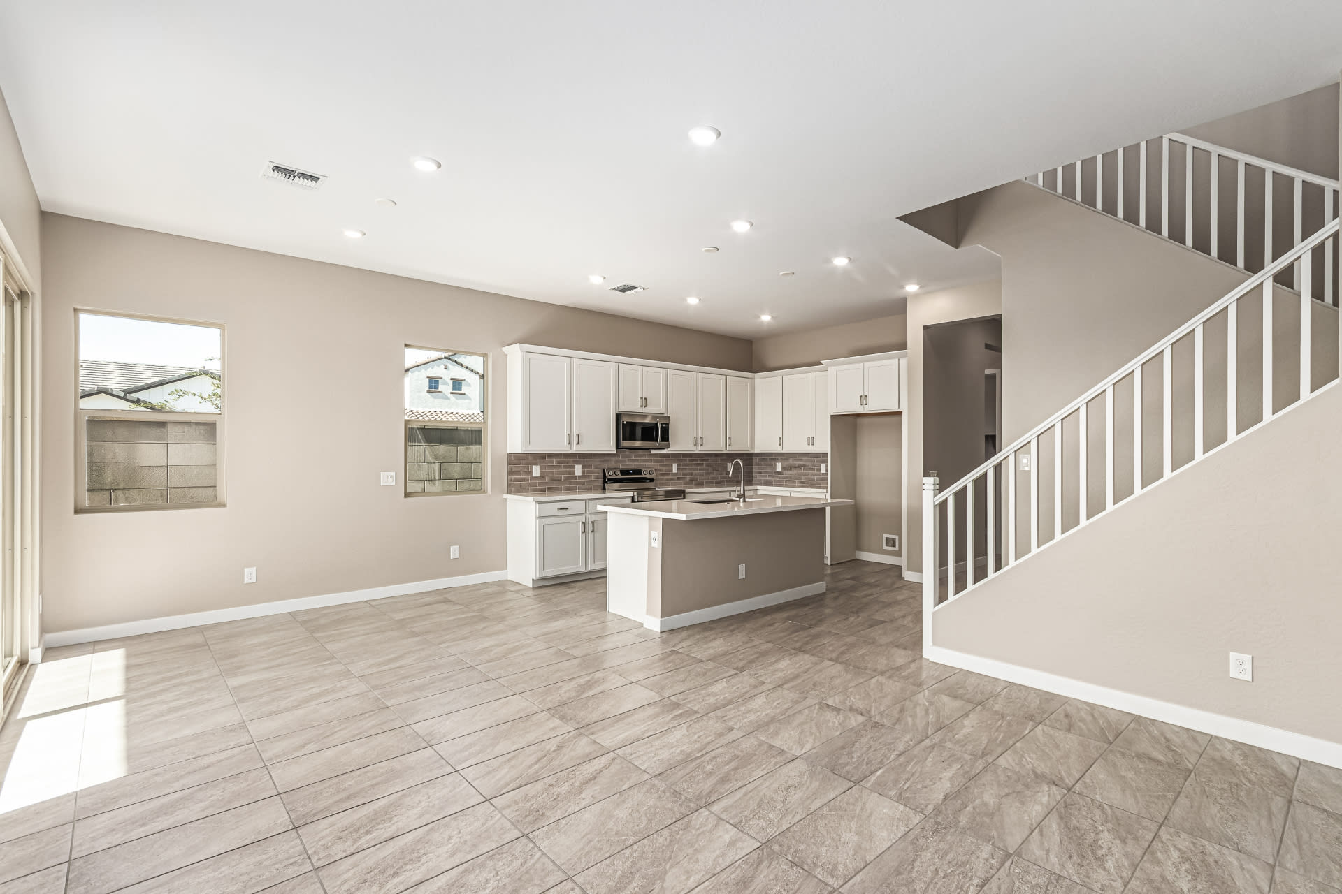 BEAUTIFUL BRAND NEW TWO STORY is a home within a home with the primary bedroom, office and laundry room downstairs and the rest of the bedrooms with the additional loft living space upstairs. This home features 10′ ceilings with 8′ interior doors downstairs. Whole House Soft Close Cabinets with Polished Nickel Pulls throughout. Bianco Tiza Quartz Countertop pairs perfectly with the 5×5 White Backsplash completing this clean, modern kitchen. The downstairs features elegant low maintenance 12×24 Abound AB04 Ashen Tile Flooring with 4″ flat baseboards throughout. This home includes Two Tone Paint, a Tankless Water Heater and a gas stub for the BBQ. This home is a High Performance Smart Home. Welcome to the beautiful gated community of Rialta! This Pricing Does Not Include Seller Concessions.