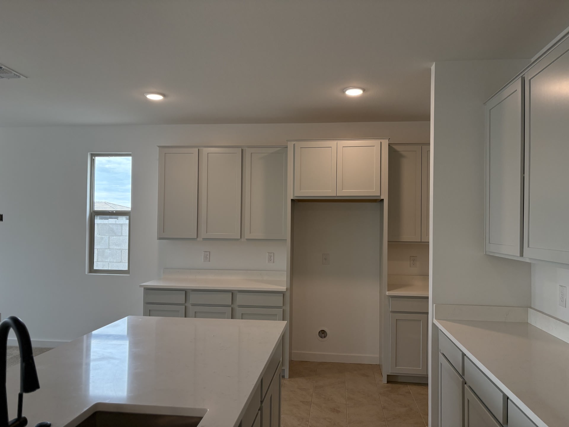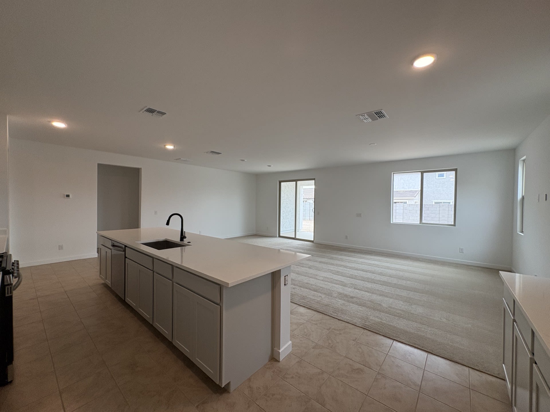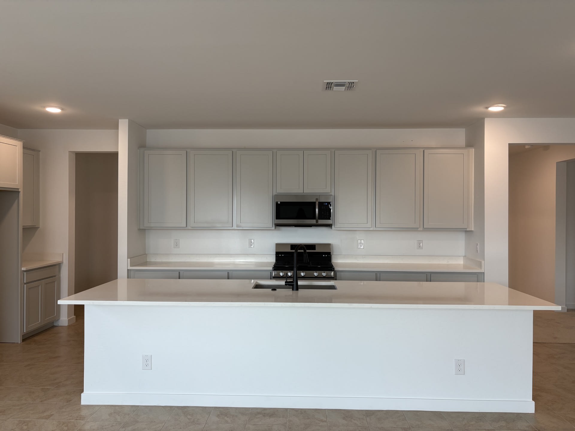 Welcome to your perfect home! This spacious one-story features 3 bedrooms, 2.5 bathrooms, plus an open study all within 2,355 sq ft of thoughtfully designed living space. Enjoy the 3-car garage, ideal for storage and larger vehicles. The open floor plan boasts a beautiful kitchen with a large island, white quartz countertops, tall 46-inch off-white cabinets, and sleek matte black hardware. The Jack and Jill bathroom adds convenience, and the large laundry room makes everyday tasks easier. Relax in the primary suite with a large walk-in shower and a shelved linen closet for optimal storage. Triple sliding glass doors lead to a spacious covered patio with a gas stub, perfect for entertaining. This is the ideal home for first-time buyers looking for comfort, style, and functionality!