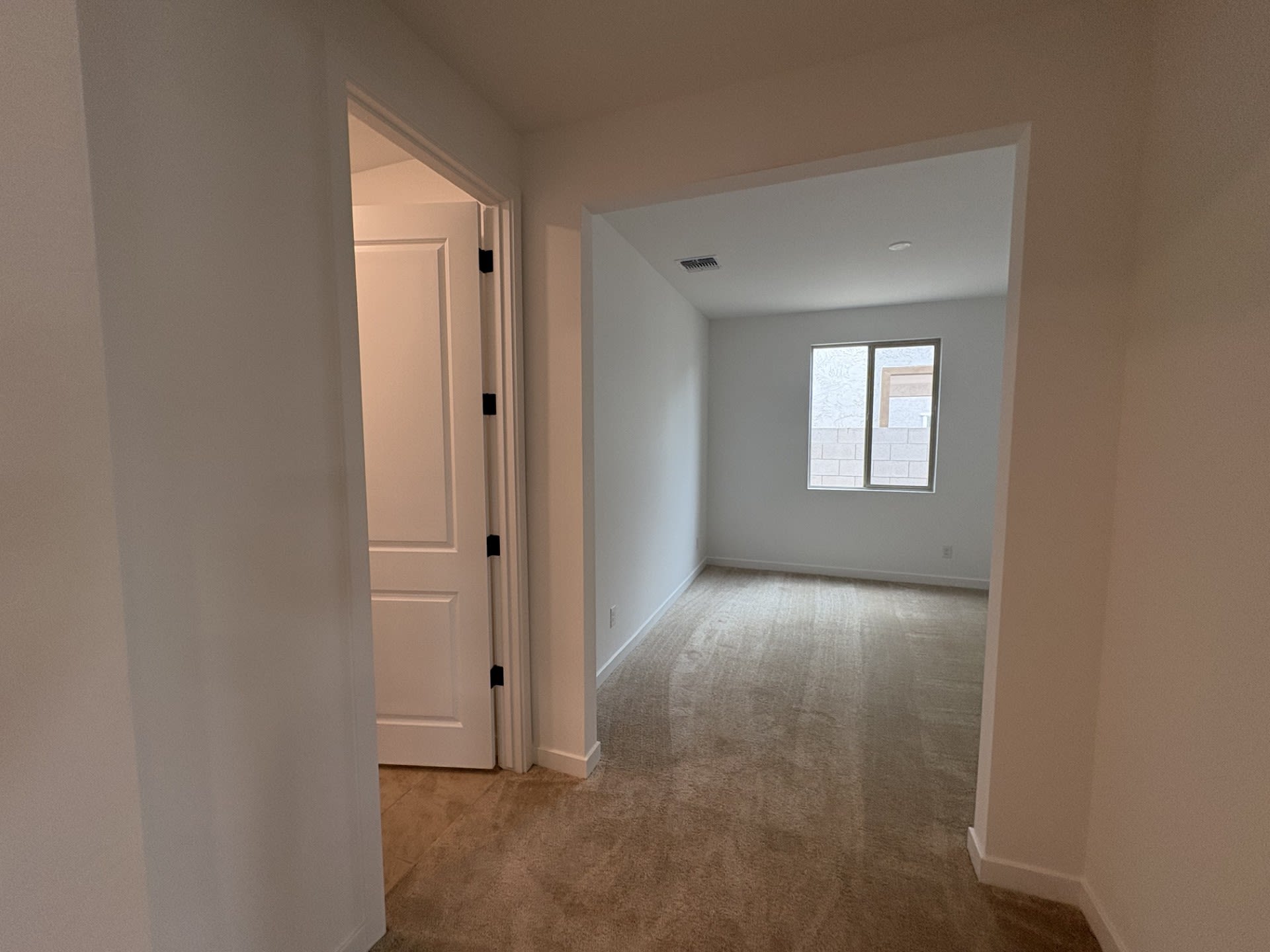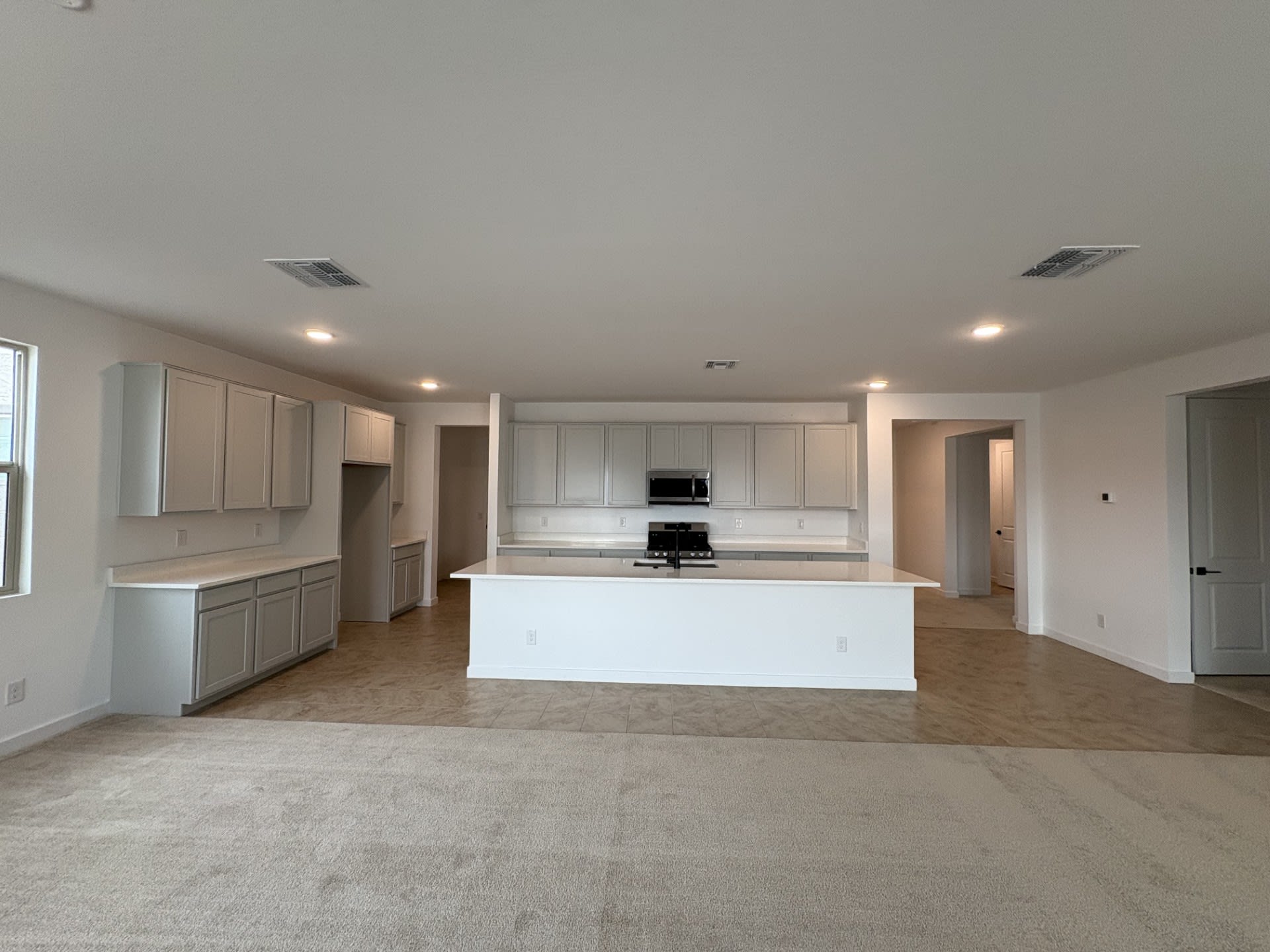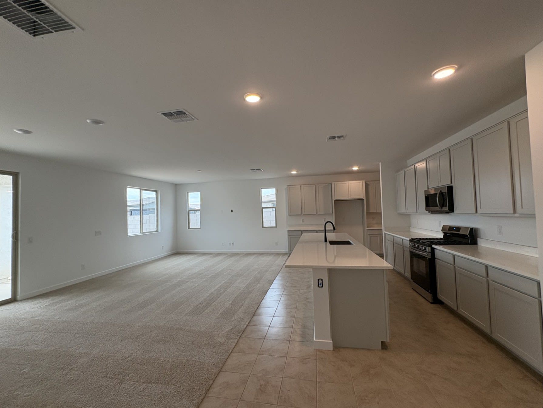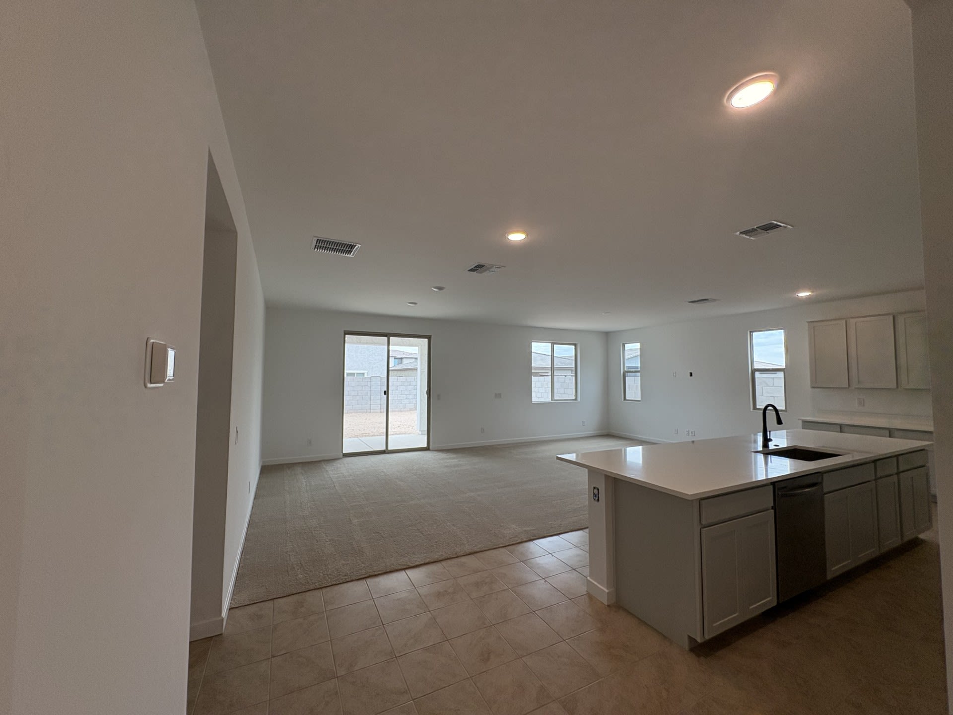 Welcome to your perfect home! This spacious one-story features 3 bedrooms, 2.5 bathrooms, plus an open study all within 2,355 sq ft of thoughtfully designed living space. Enjoy the 3-car garage, ideal for storage and larger vehicles. The open floor plan boasts a beautiful kitchen with a large island, white quartz countertops, tall 46-inch off-white cabinets, and sleek matte black hardware. The Jack and Jill bathroom adds convenience, and the large laundry room makes everyday tasks easier. Relax in the primary suite with a large walk-in shower and a shelved linen closet for optimal storage. Triple sliding glass doors lead to a spacious covered patio with a gas stub, perfect for entertaining. This is the ideal home for first-time buyers looking for comfort, style, and functionality!