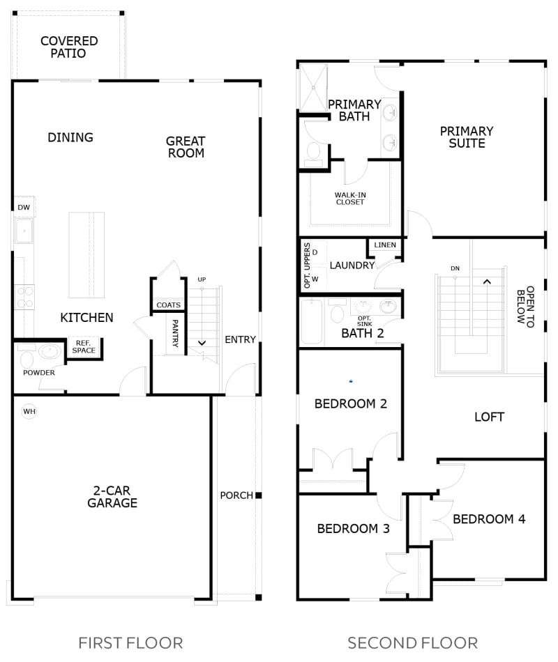 With four bedrooms, two and one-half bathrooms and a spacious loft, this plan offers room to grow and to relax, complete with an open-concept living area. Upstairs, the primary suite features a walk-in closet and luxurious bath, while the loft and additional bedrooms provide flexibility for a home office, game room or guest space.