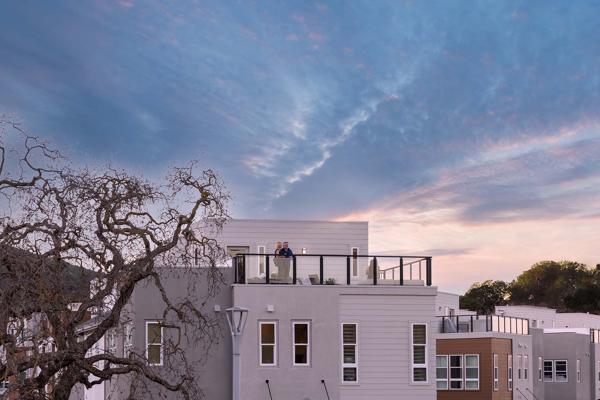 Rise and shine on your rooftop deck overlooking the rolling hills of the Rush Creek Preserve.