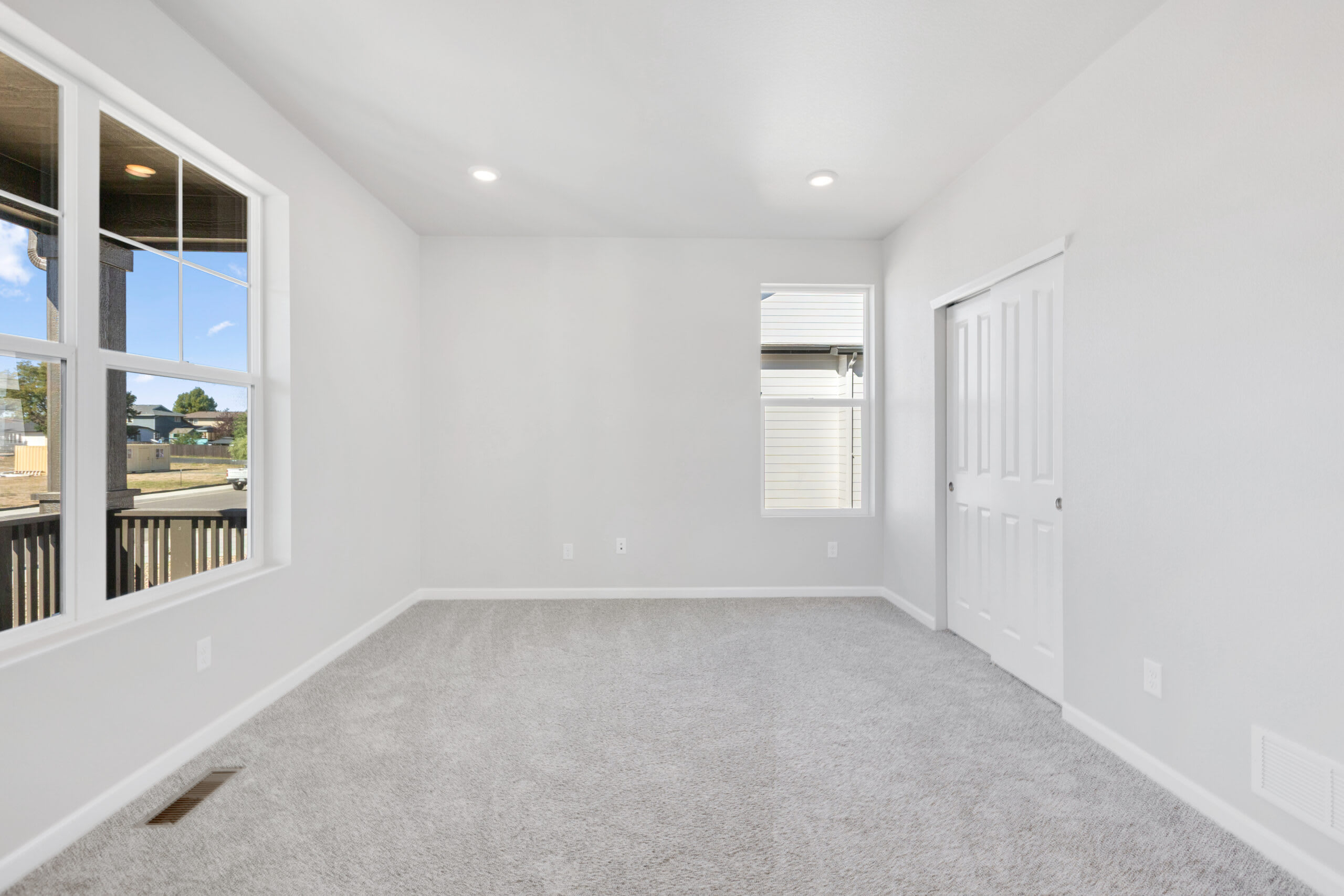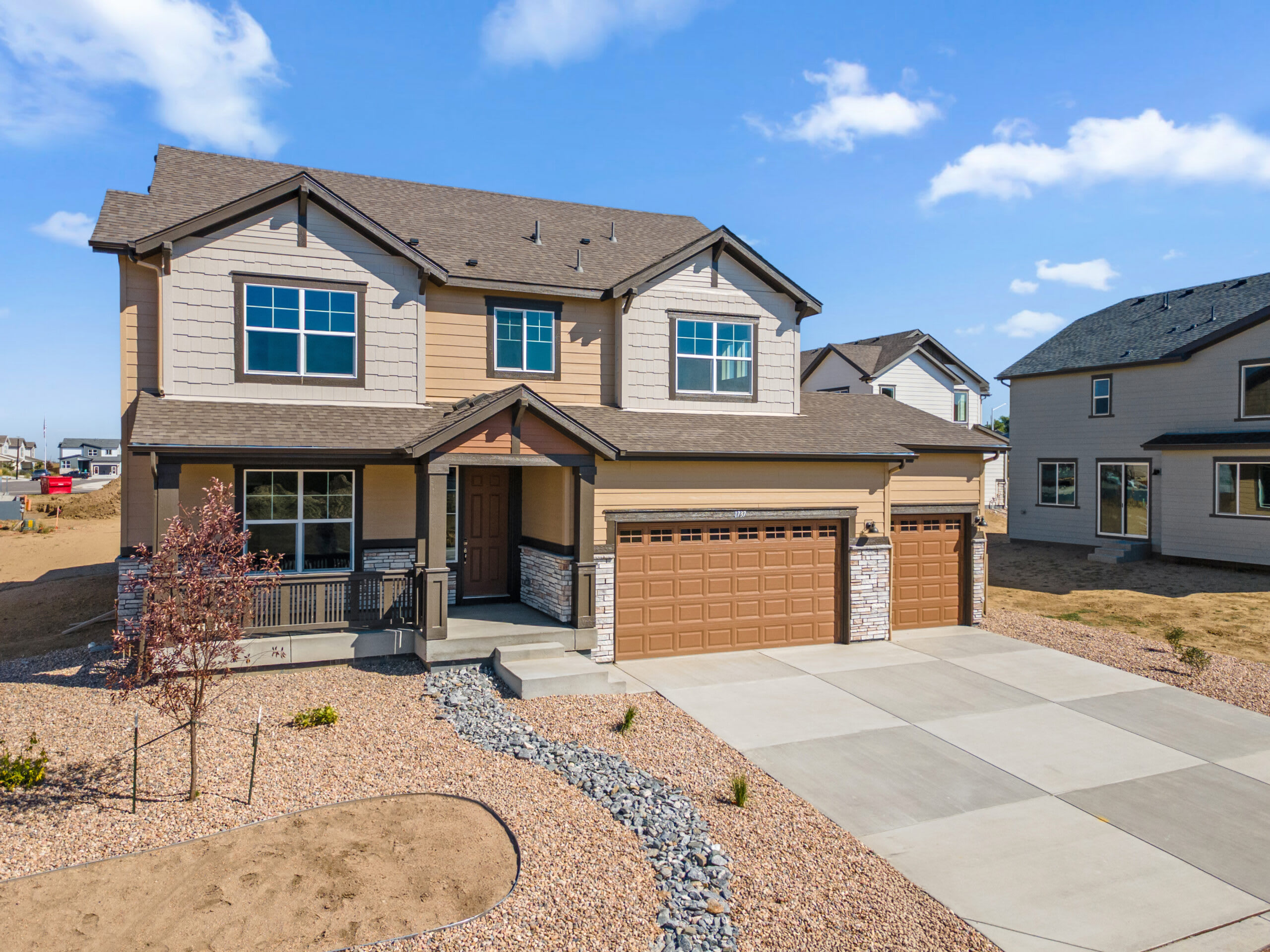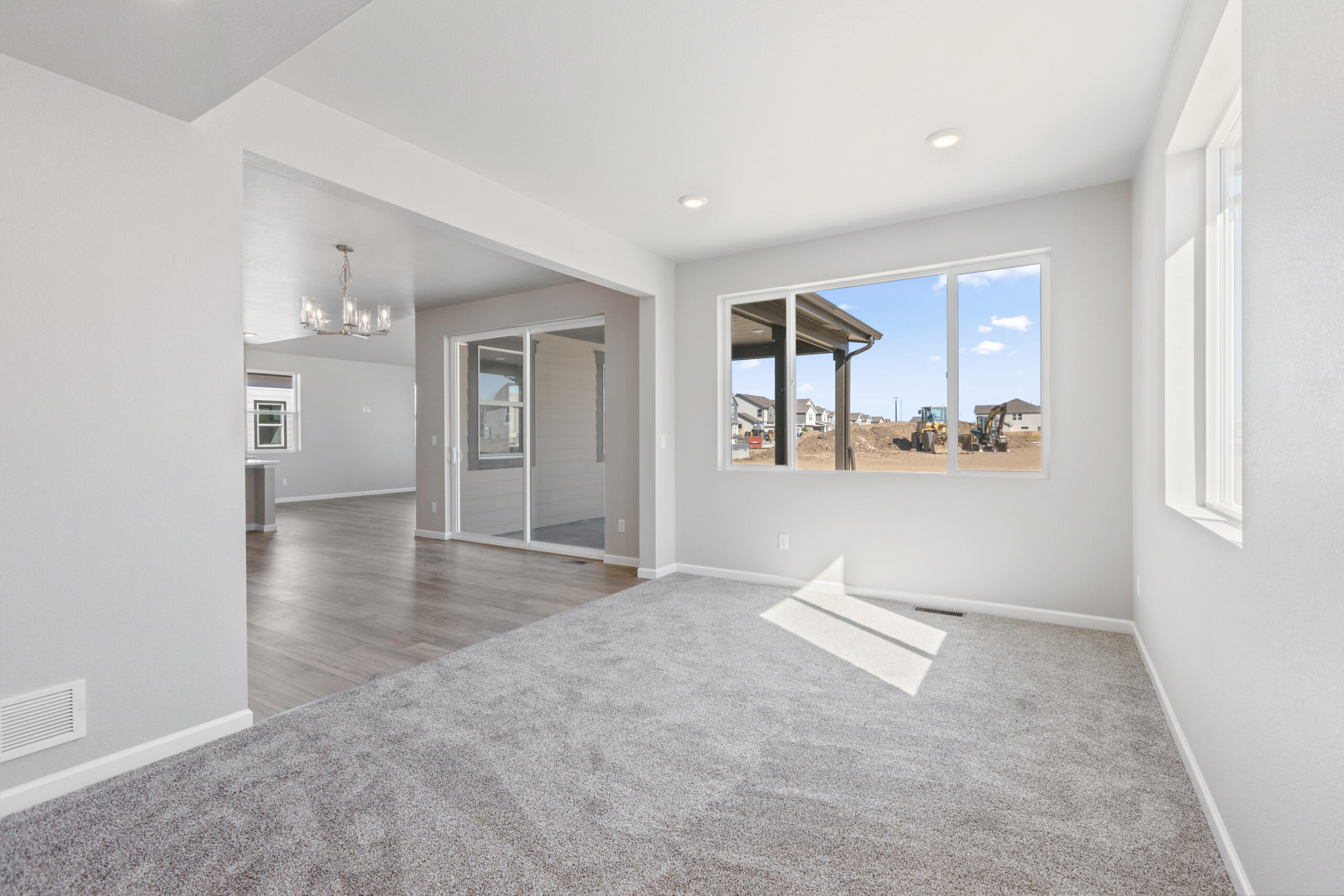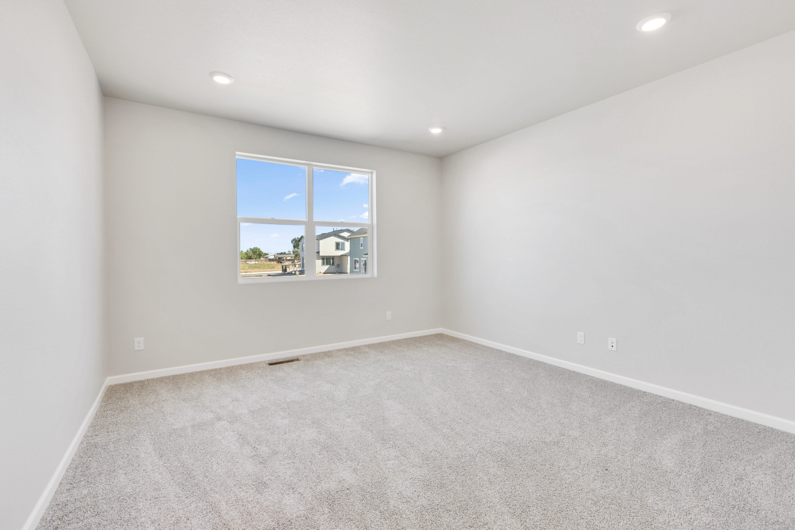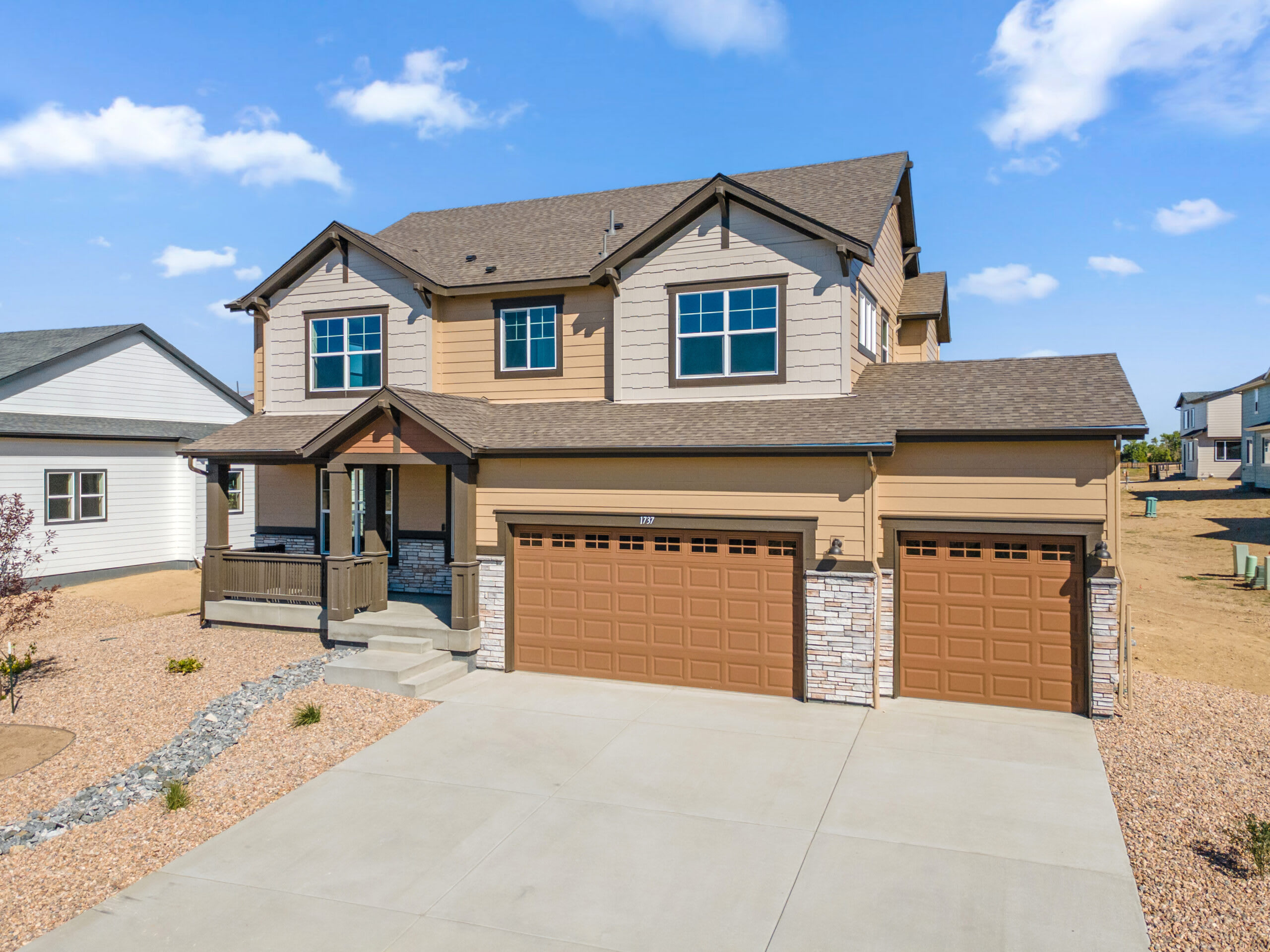 As you walk up the front porch and into the entryway of the home, you’ll have the study to your right and mudroom to your left with a powder bathroom and access into the 3-car garage. At the end of the hallway from the entryway, you’ll be greeted by the open-concept main level where the kitchen, great room, and nook/dining area flow effortlessly between one another. The kitchen features and eat-at center island, a tiled backsplash, and a walk-in pantry. Just beside the nook/dining area, you’ll have a sliding glass door that takes you to the rear covered patio. This would be the ideal space to sip your morning coffee, read a book, entertain guests, or soak in the Colorado sunshine. You’ll have an additional room beside the nook to utilize as flex space. Turn this space into a fitness studio, play room or craft room for the kids, a zen den or place to relax, or a theater room. The ideas are endless!