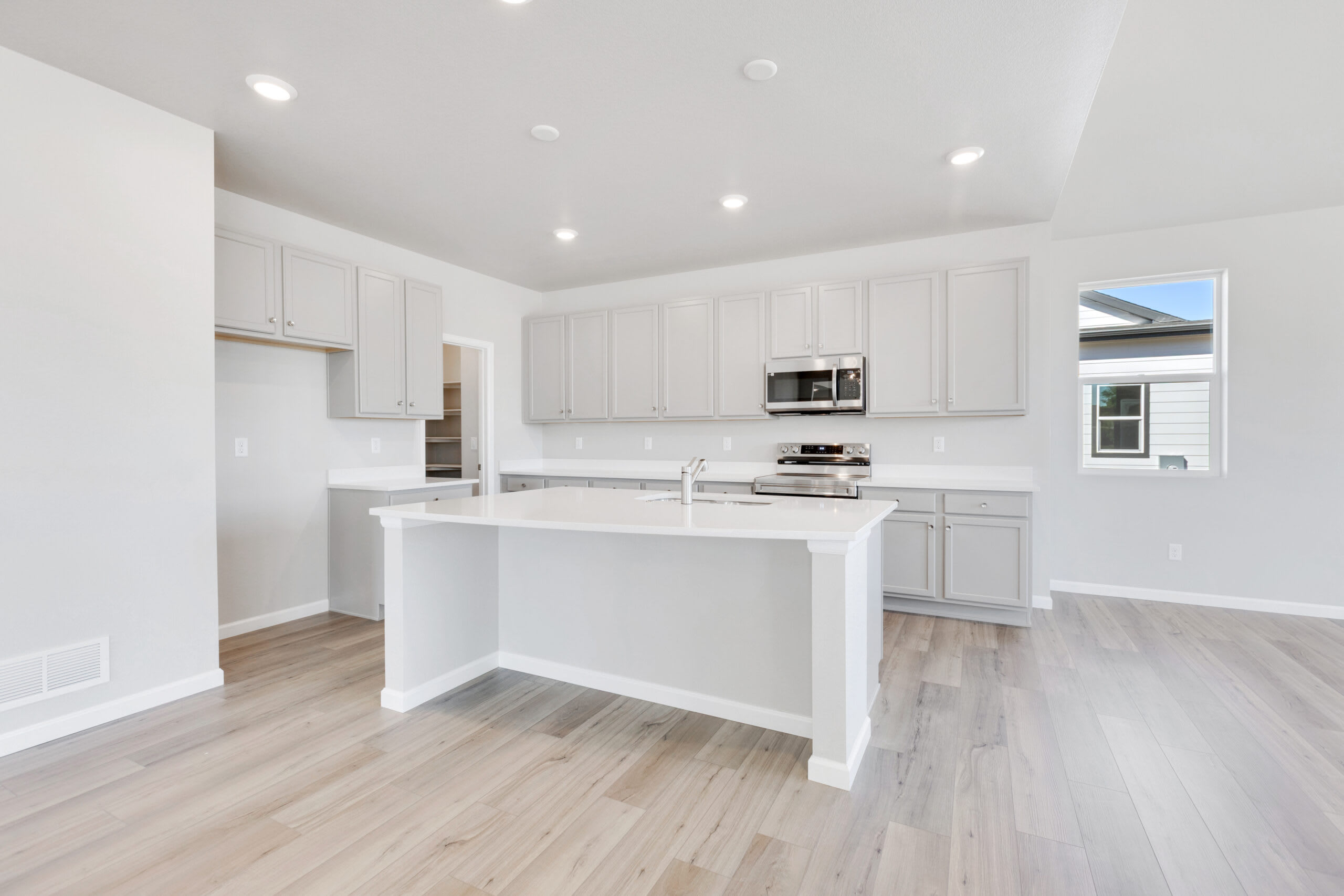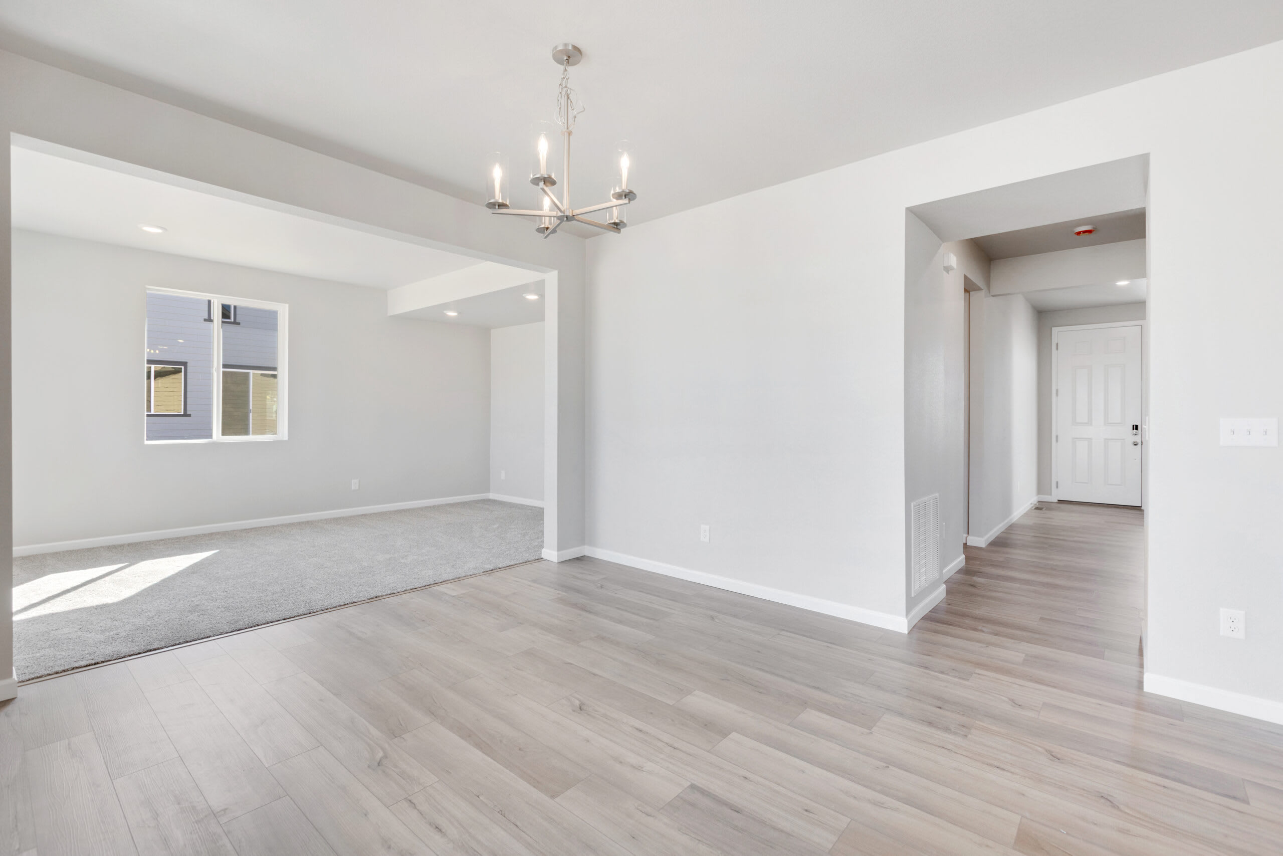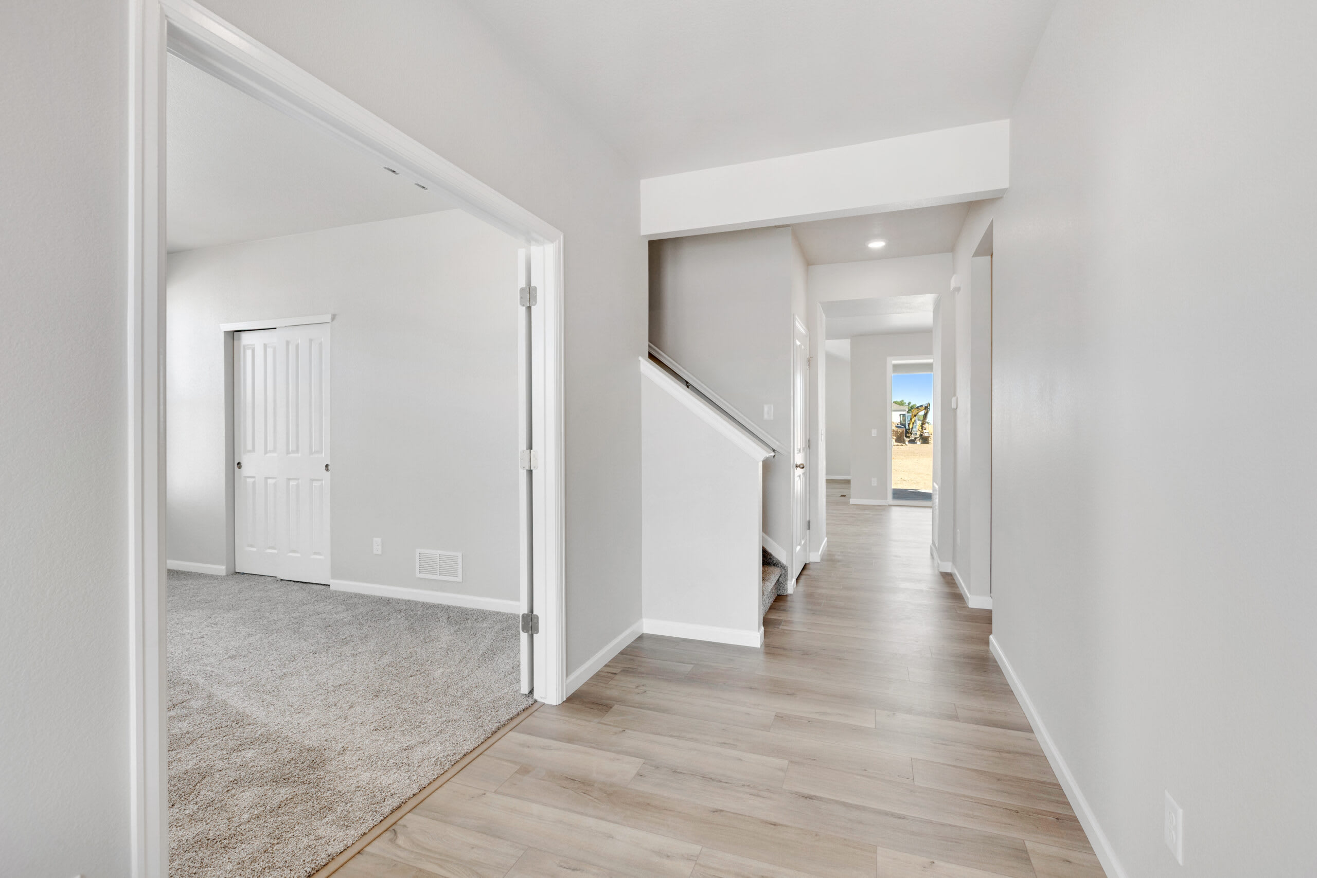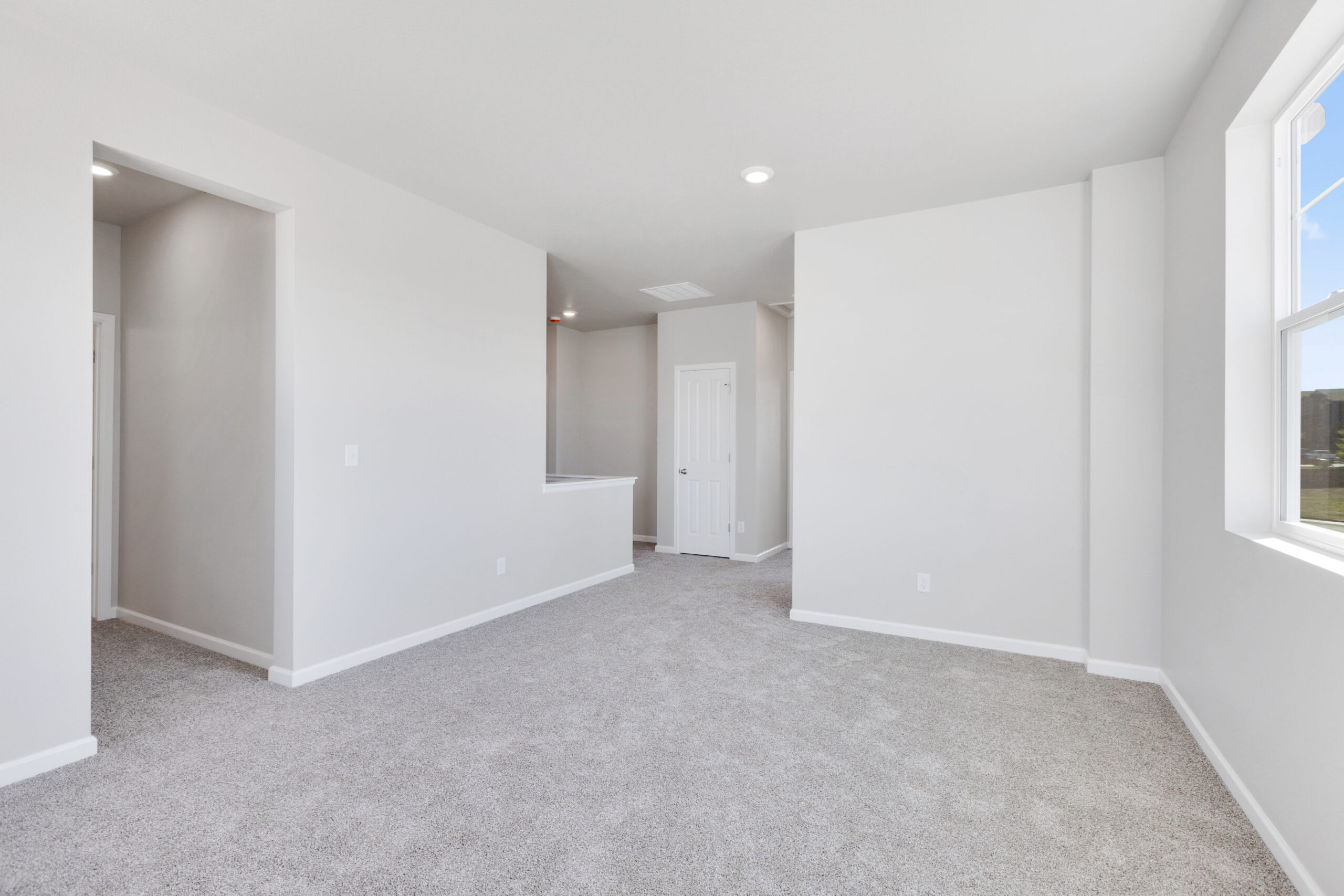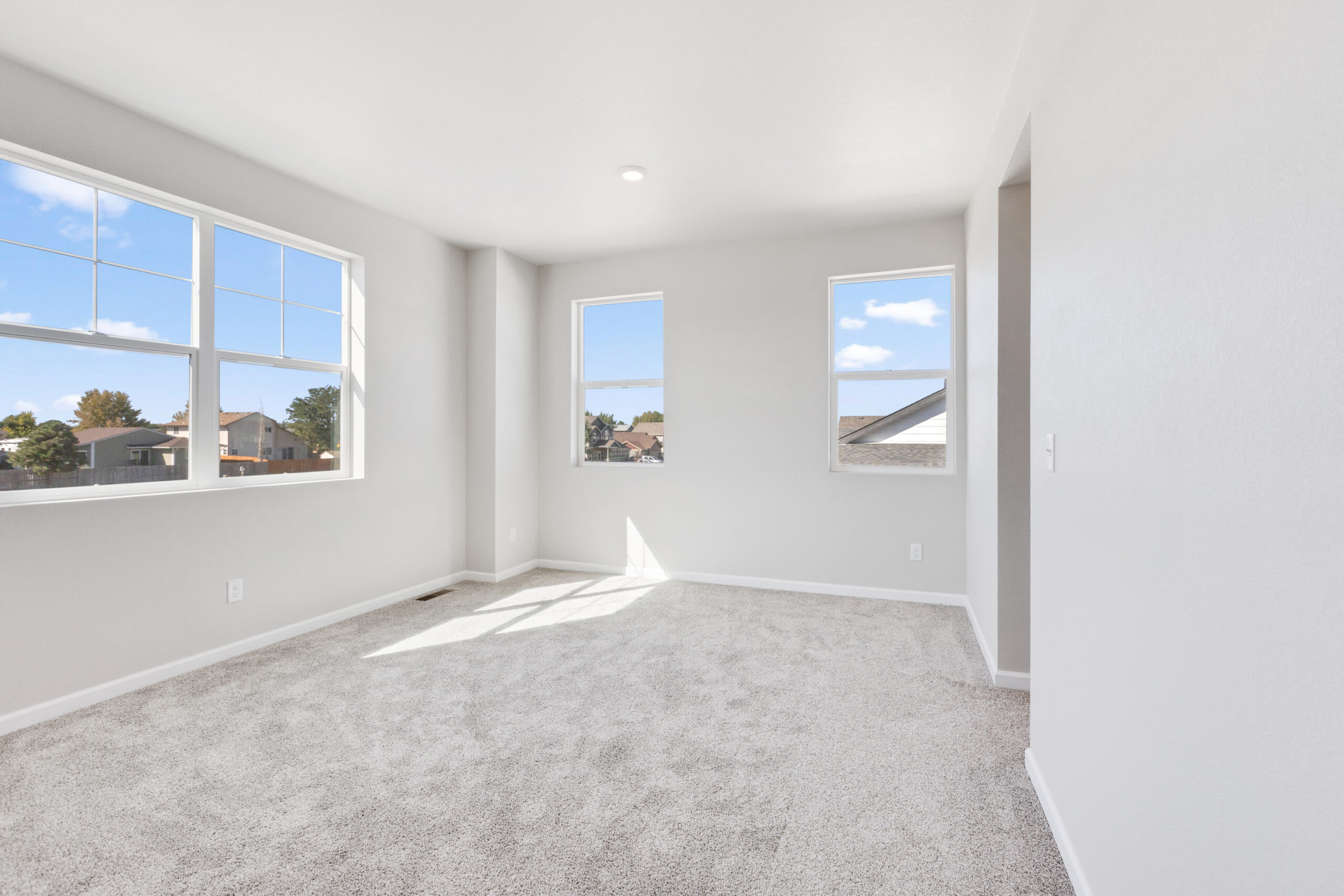 As you walk up the front porch and into the entryway of the home, you’ll have the study to your right and mudroom to your left with a powder bathroom and access into the 3-car garage. At the end of the hallway from the entryway, you’ll be greeted by the open-concept main level where the kitchen, great room, and nook/dining area flow effortlessly between one another. The kitchen features and eat-at center island, a tiled backsplash, and a walk-in pantry. Just beside the nook/dining area, you’ll have a sliding glass door that takes you to the rear covered patio. This would be the ideal space to sip your morning coffee, read a book, entertain guests, or soak in the Colorado sunshine. You’ll have an additional room beside the nook to utilize as flex space. Turn this space into a fitness studio, play room or craft room for the kids, a zen den or place to relax, or a theater room. The ideas are endless!