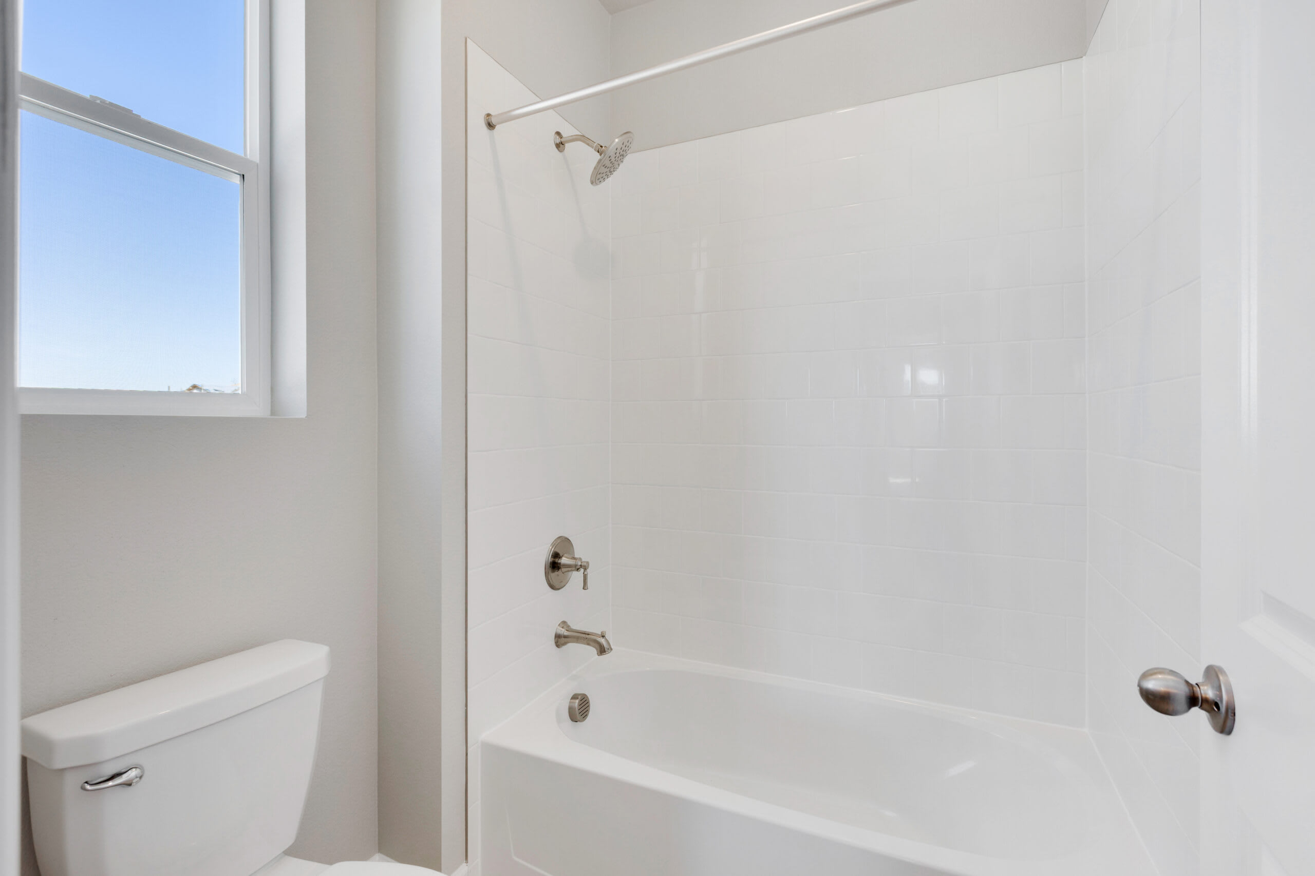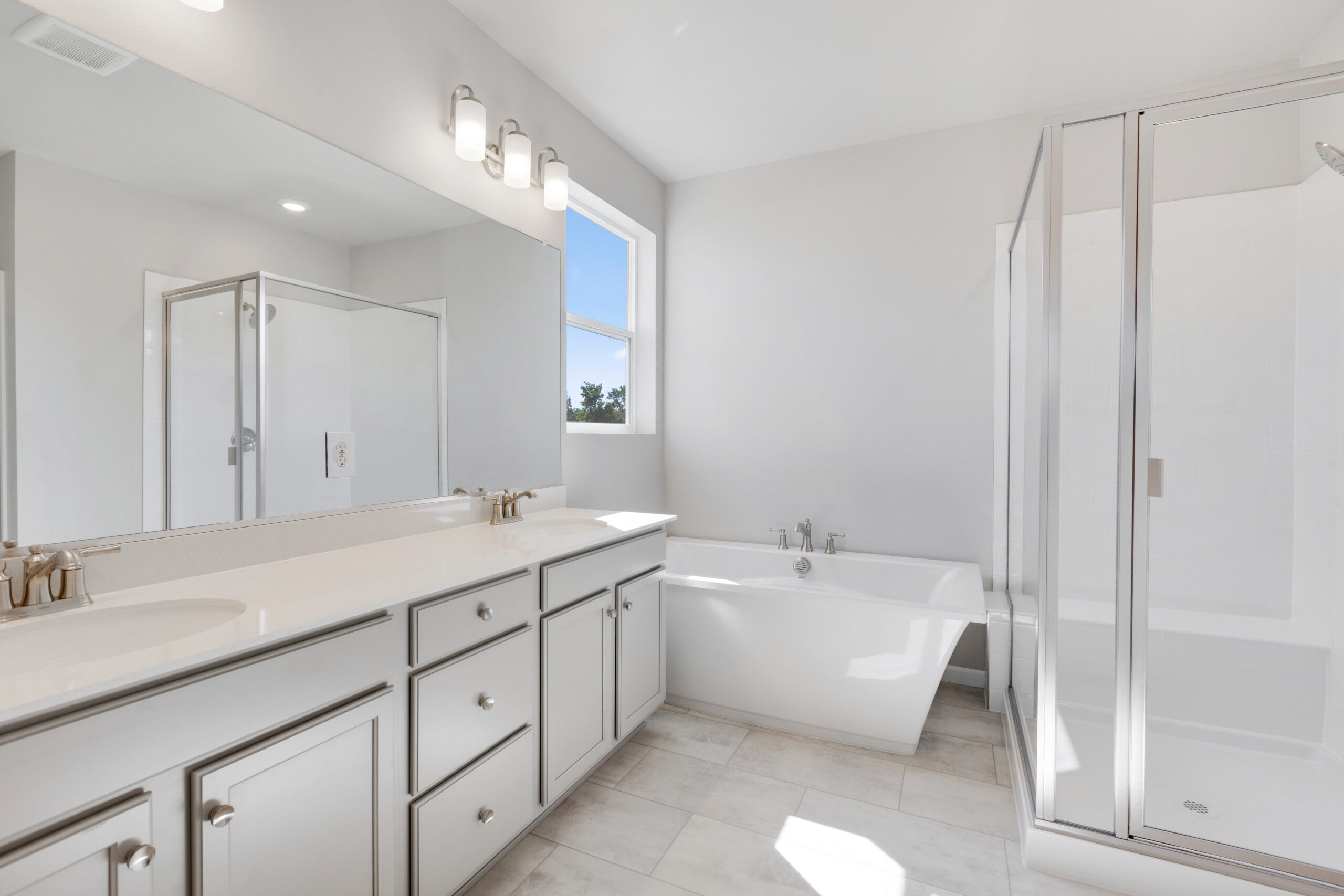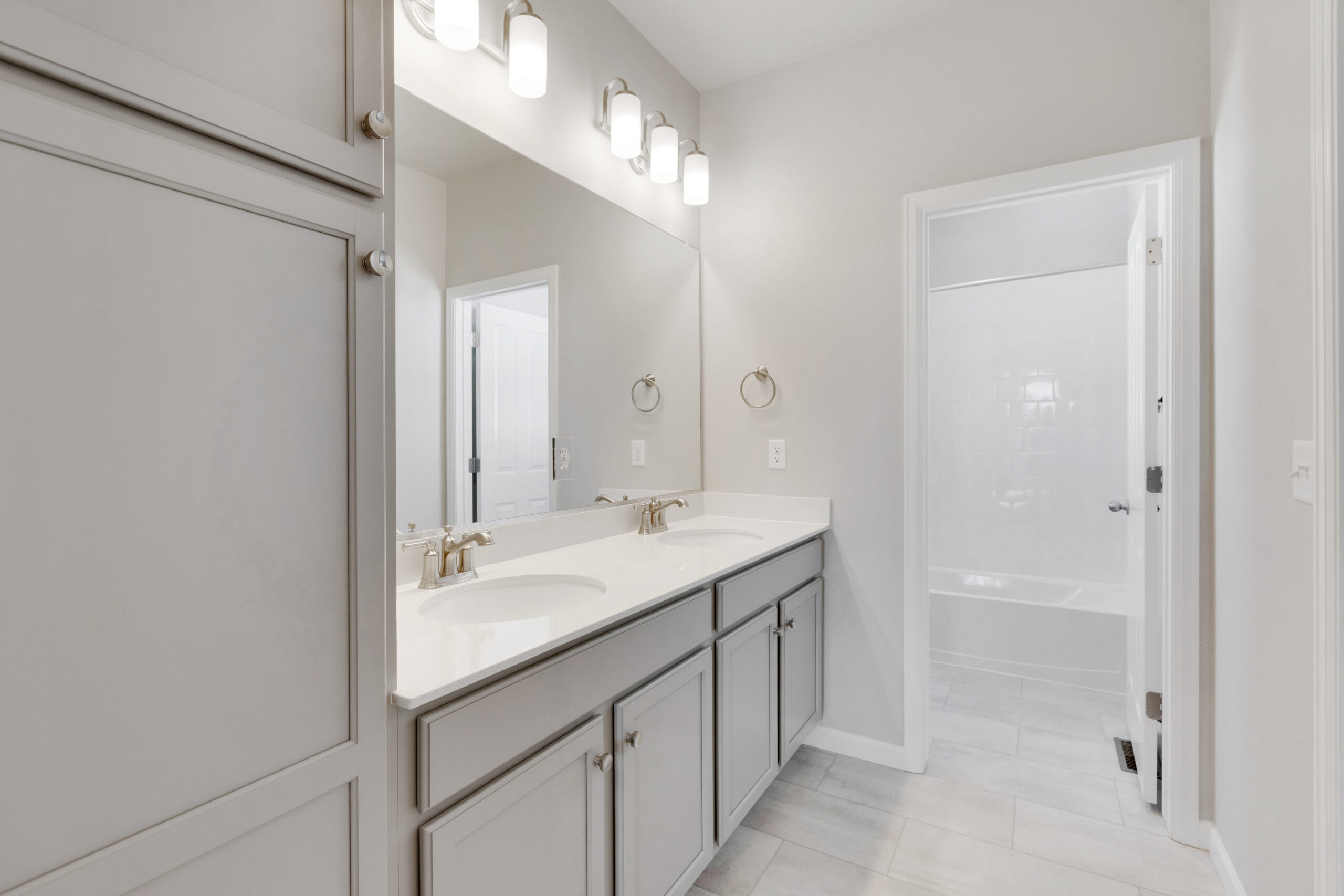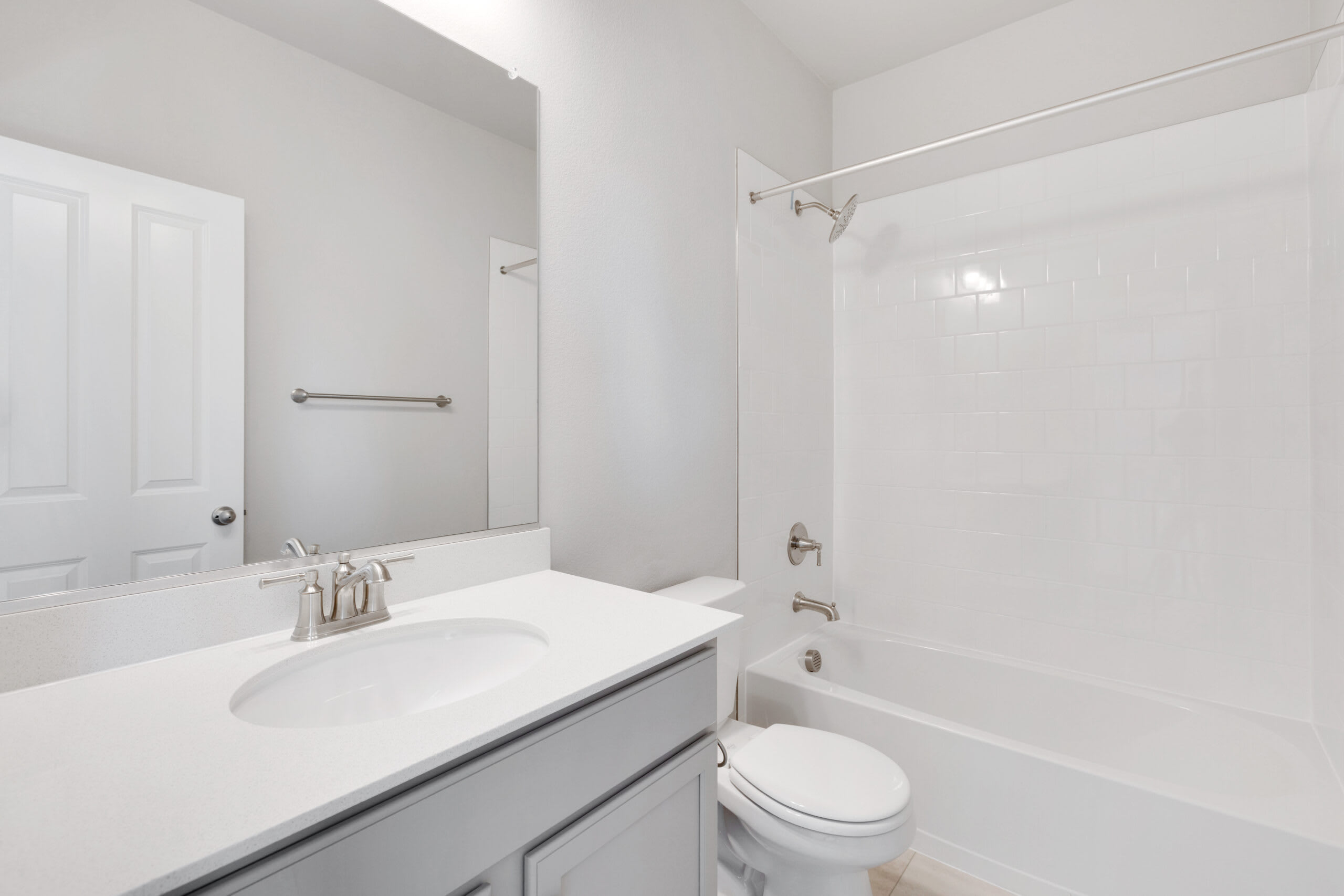 Heading up the U-shaped staircase to the second level, you’ll have a loft positioned at the front of the home along with the laundry room and third bedroom which has a private full bathroom, and walk-in closet. The primary bedroom is positioned at the back of the home with a large walk-in closet and a private bathroom featuring a dual sink vanity, tiled shower, freestanding bath tub, and a water closet. The second bedroom is also positioned at the back of the home with a bathroom connecting the second bedroom to the loft.