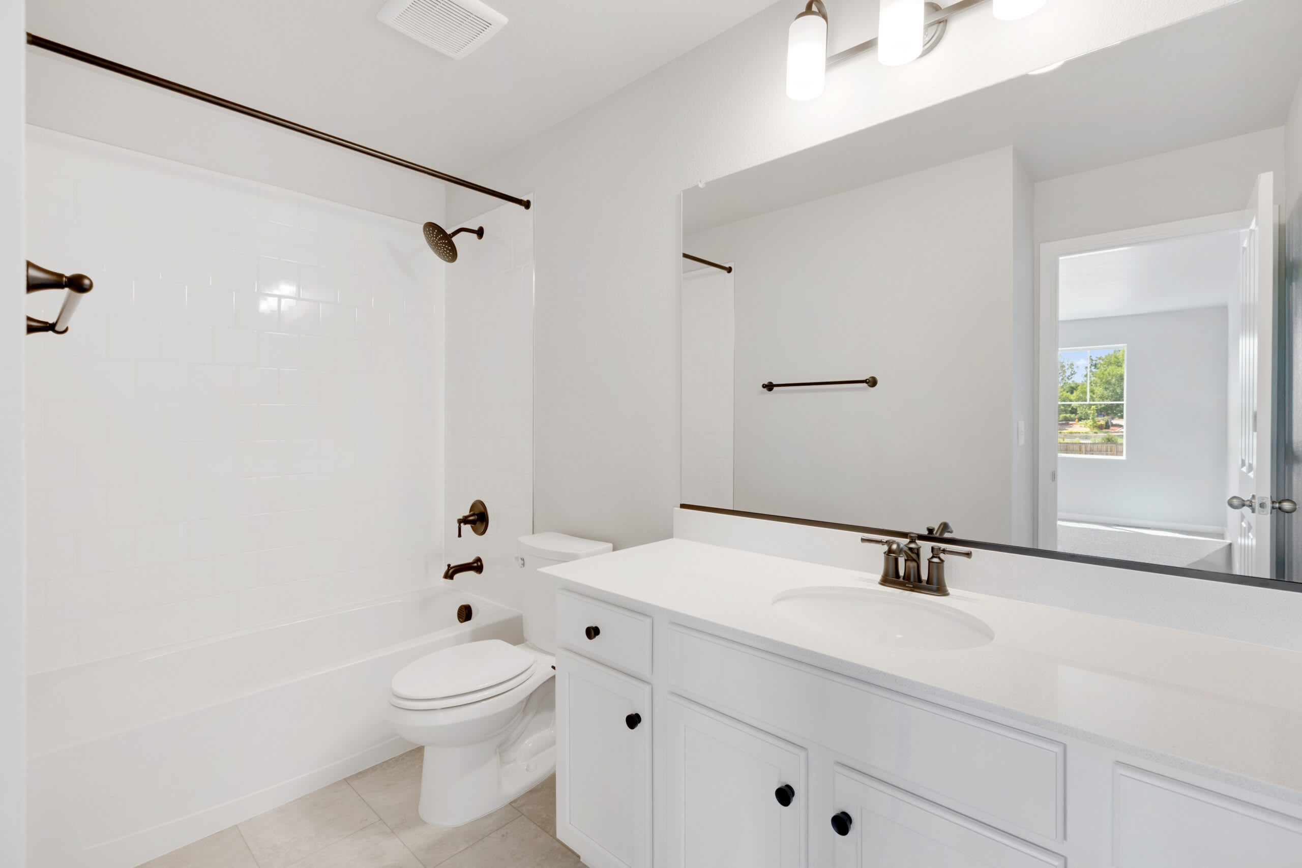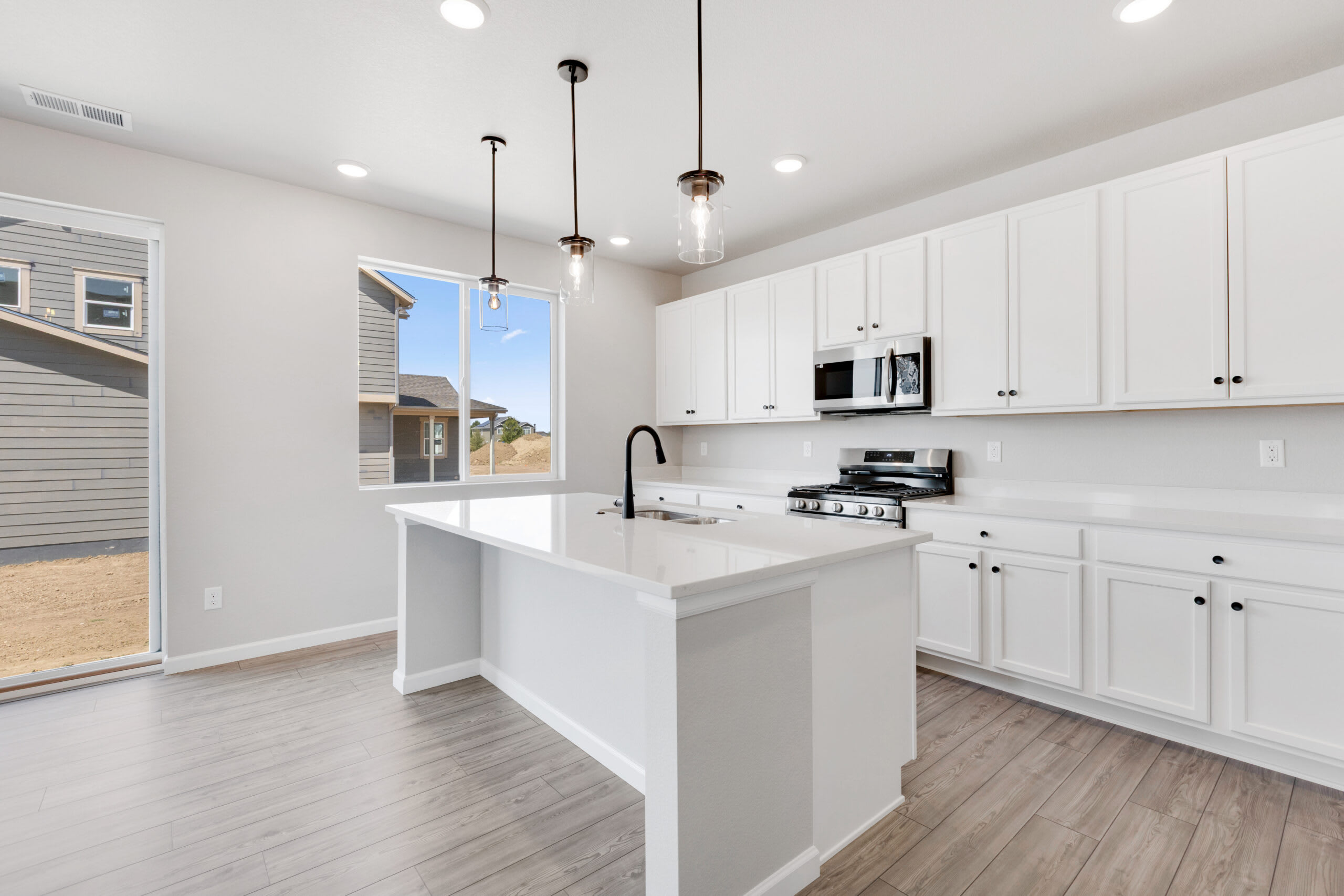 As you walk up to the front porch and into the front door, you’ll find a bedroom to your right at the front of the home with a full bathroom right outside the door. If you aren’t needing a 4th bedroom, this space would be perfect for a home office, homework space for the kids, a kids play room or craft room, or any additional space you need. Further down the hallway under the U-shaped staircase, you’ll have a coat closet with access to the crawl space. At the end of the hallway from the entryway, you’re greeted by the open-concept main level where the kitchen, dining area, and great room flow effortlessly between one another. The kitchen features an eat-at center island, quartz countertops, a tiled backsplash, and a large walk-in pantry. There will be a mudroom beside the kitchen with access into the 2-car garage. Beside the dining area, there will be a sliding glass door that takes you to the backyard. Heading back into the home and up the stairs to the second level, you’ll have a loft to utilize as an additional flex space. The primary bedroom is positioned at the back of the home with a private bathroom which features a dual sink vanity, water closet, tiled shower, and a walk-in closet. Further down the hallway from the stairs, you’ll have the second and third bedrooms with a full bathroom right outside the two along with a laundry room and storage closet conveniently centralized to the upper level.