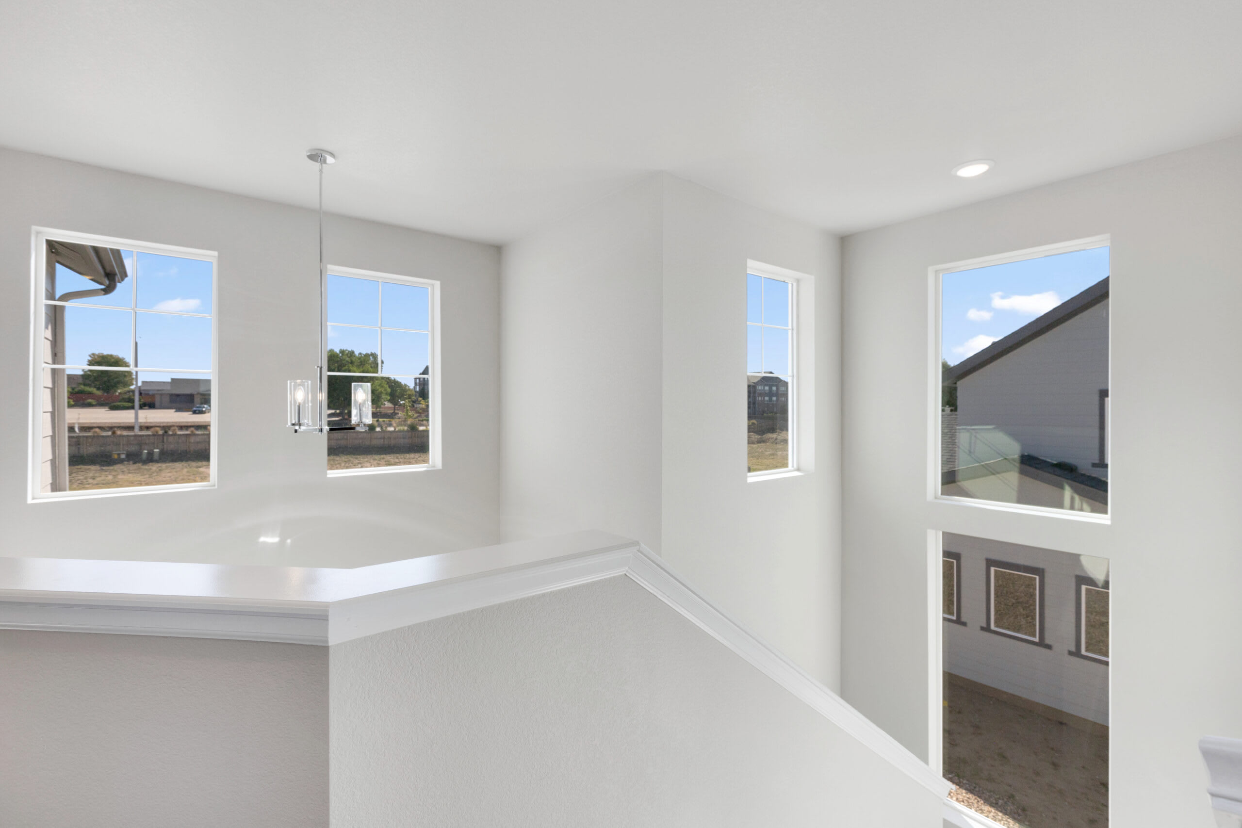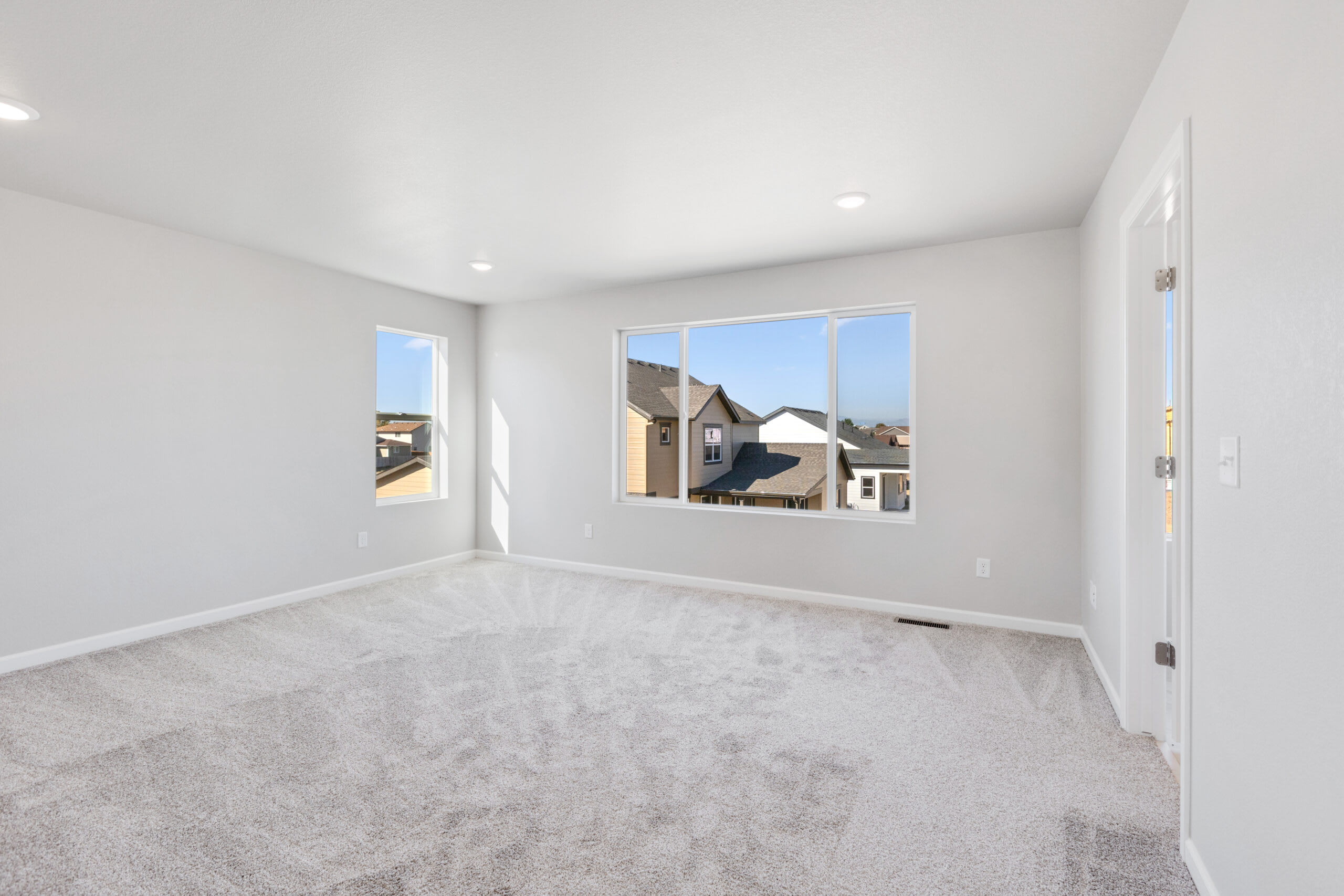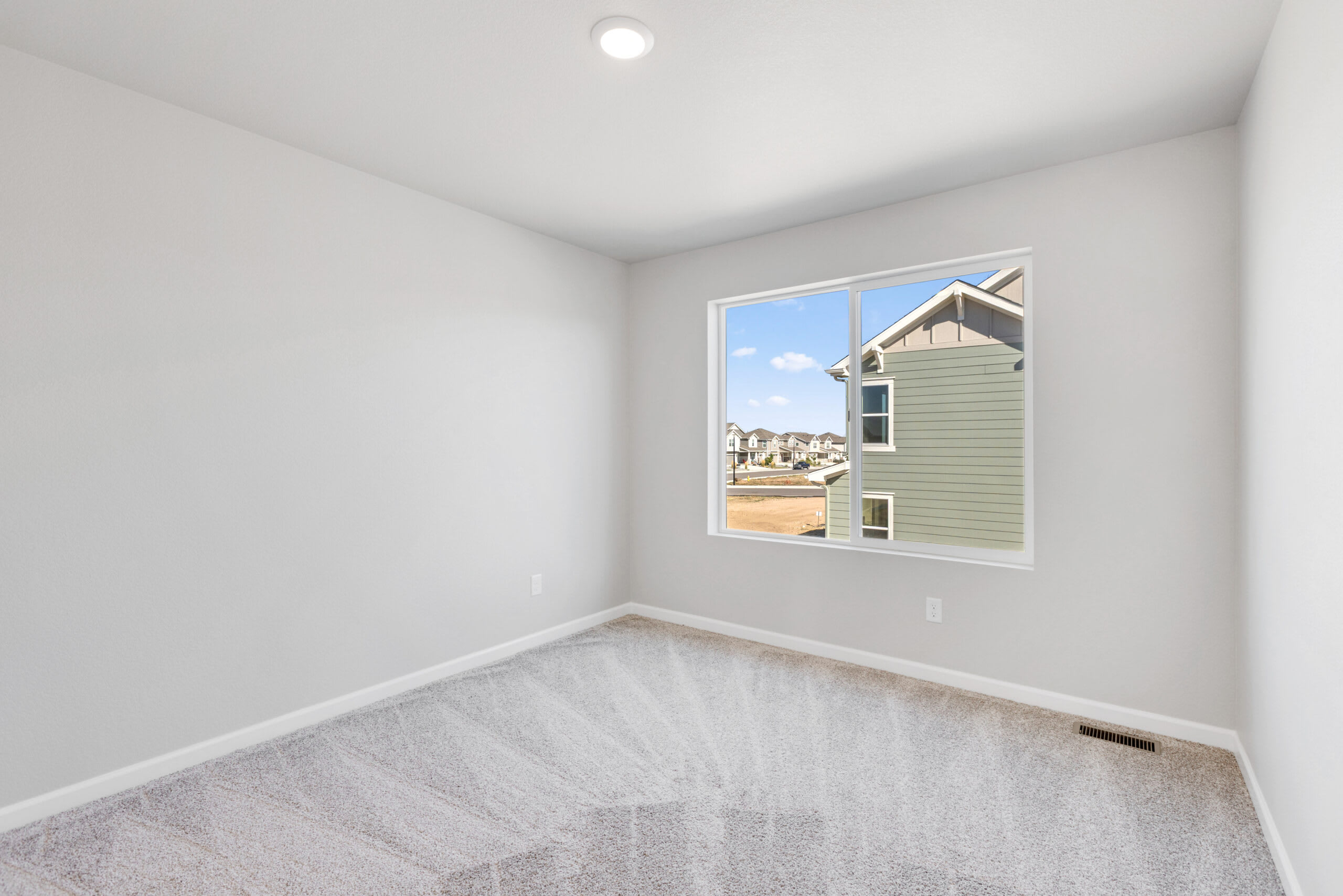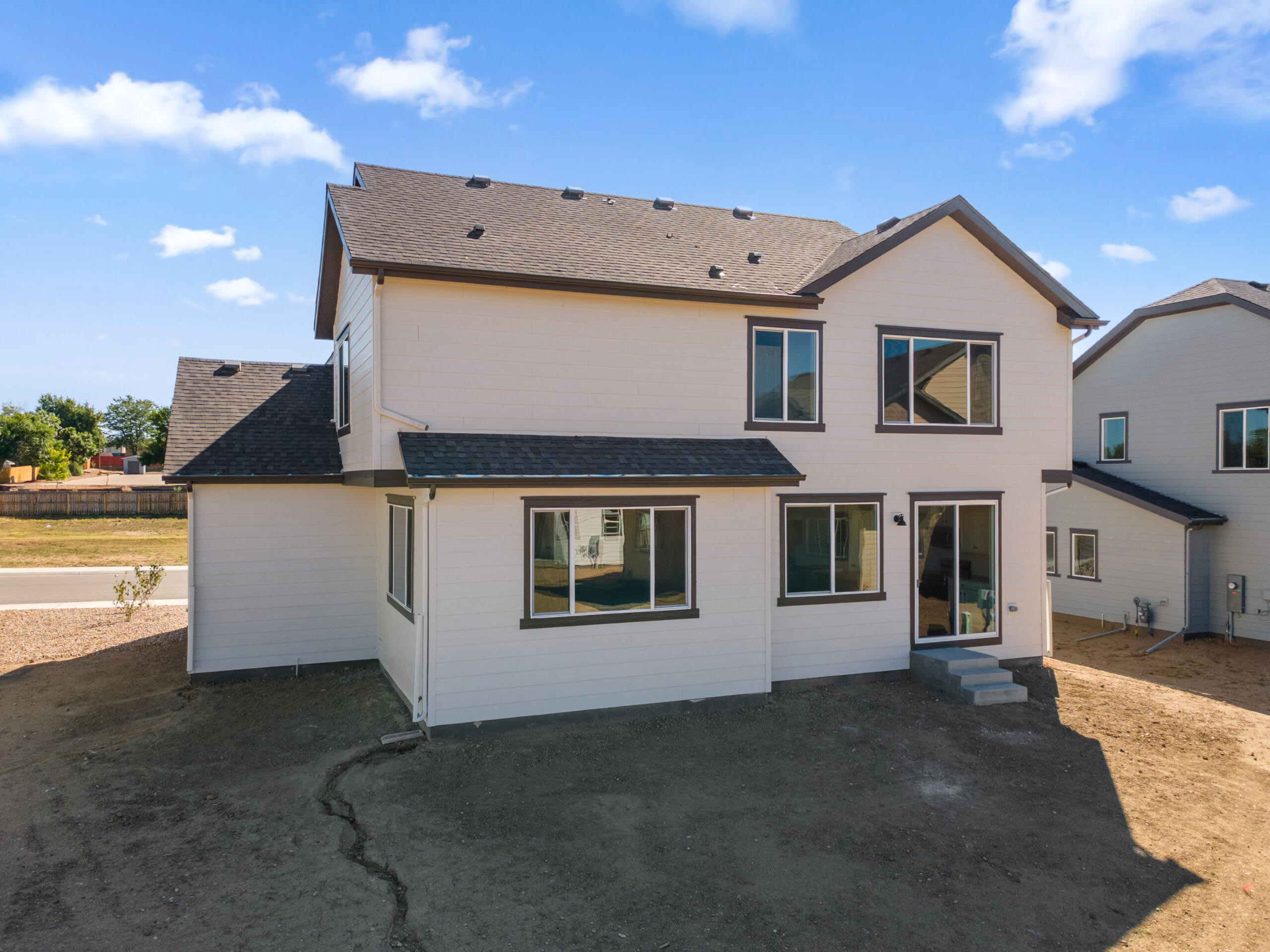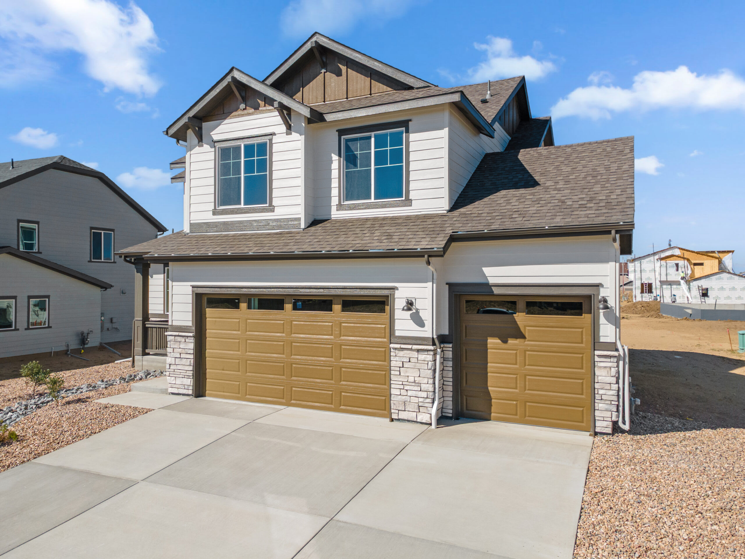 As you walk up the front porch and through the front door into the entryway, you’ll have a powder bathroom to your right, a U-shaped staircase to the second level, and a mudroom to your left with access to the 3-car garage. At the end of the hallway you’re greeted by the open-concept main living area where the kitchen, dining area, and great room flow effortlessly between one another. The kitchen features an eat-at center island, pantry, and tiled backsplash. Just beside the kitchen, you’ll have a sliding glass door that takes you to the backyard with the option to include a patio or covered patio which would be the perfect spot to sip your morning coffee, entertain guests, let the dogs out in the backyard, or soak in the Colorado sunshine. Heading back inside the house and up the stairs to the upper level, you’ll be greeted by a loft which could be utilized as a kid’s play area or homework space, home office, movie room, or any additional space you need. The primary bedroom is positioned at the back of the home with a private bathroom which features a dual sink vanity, tiled shower, water closet, and large walk-in closet. Further down the upper-level hallway, there are two additional bedrooms with a laundry room between the two and a full bathroom.