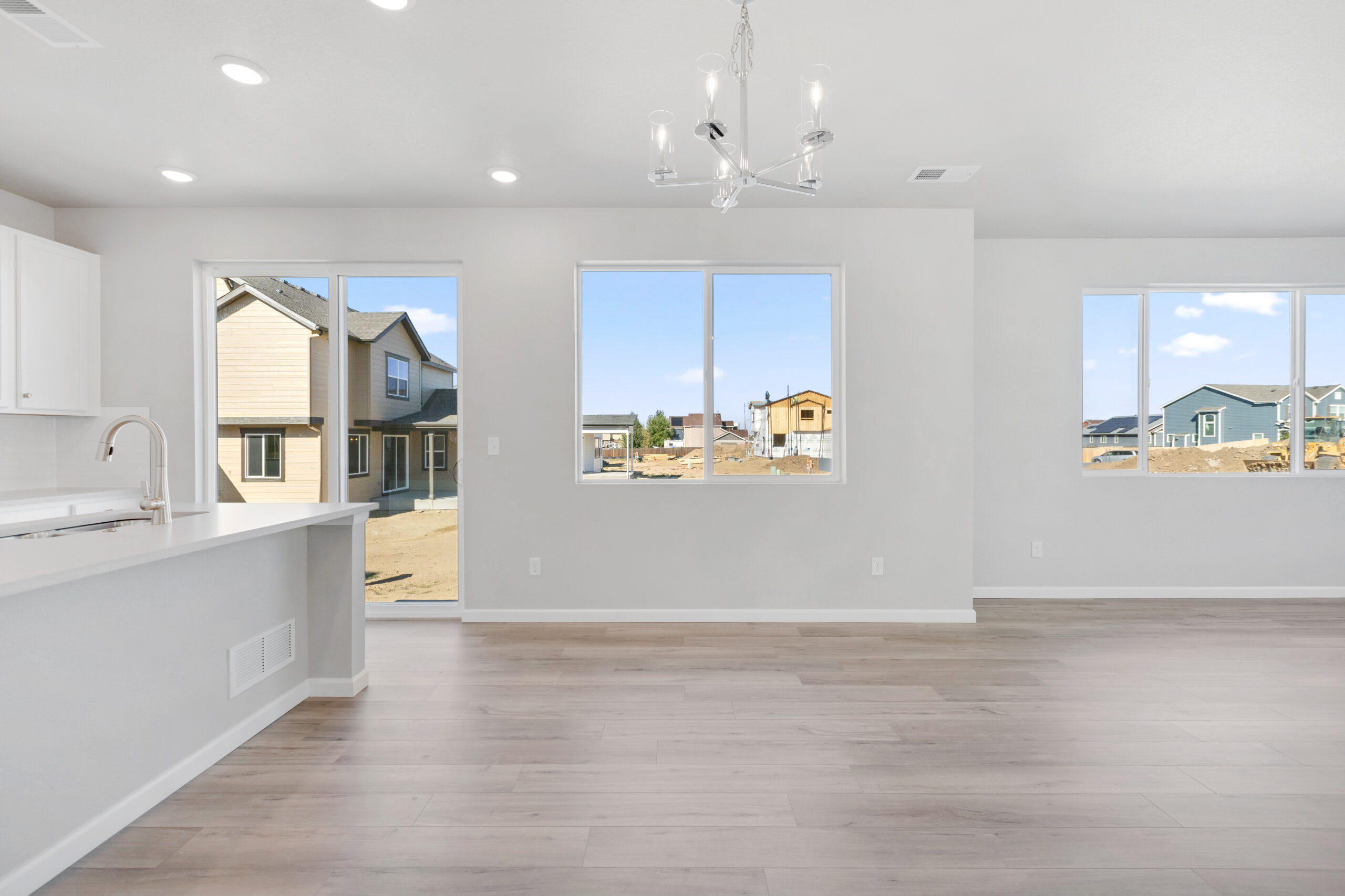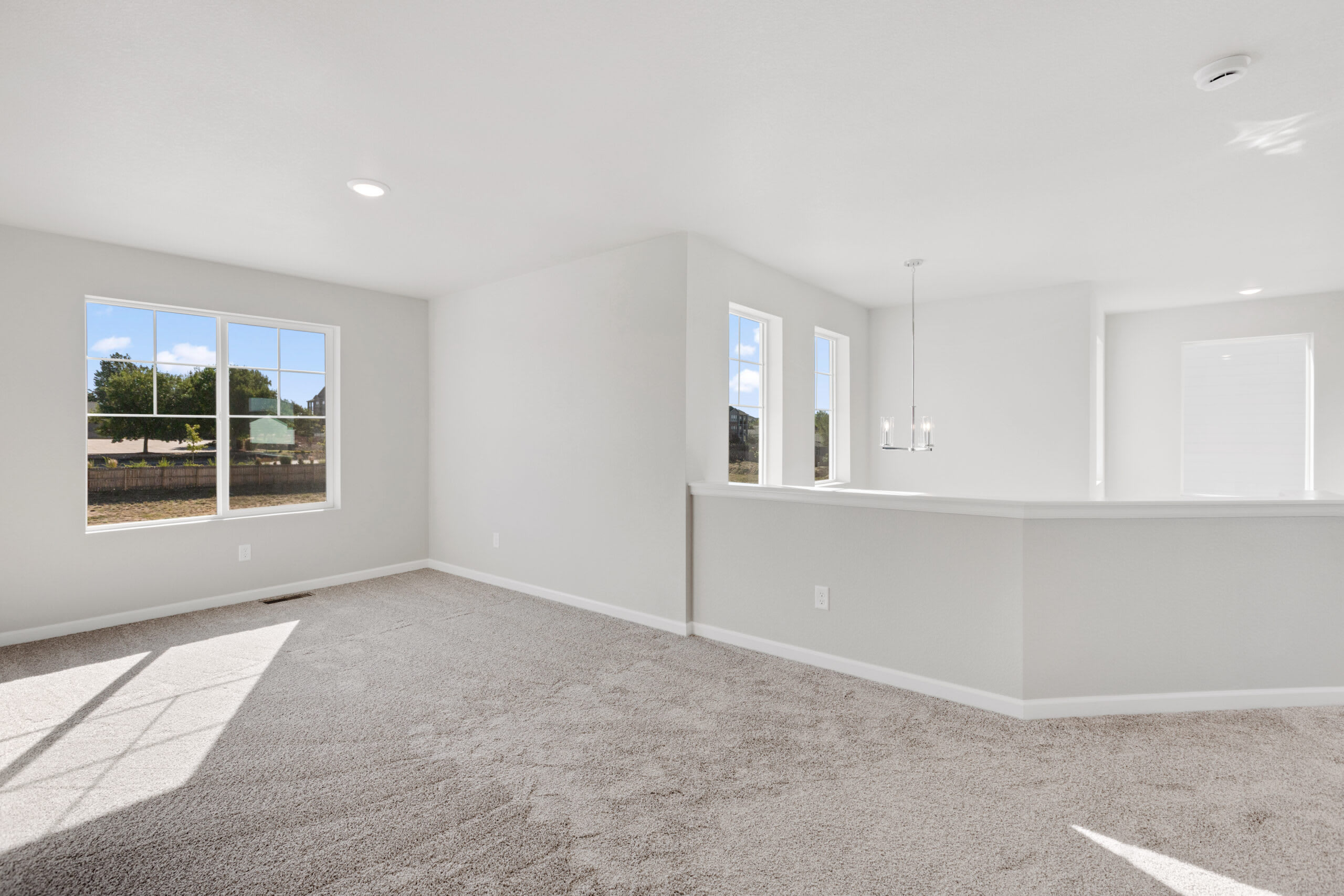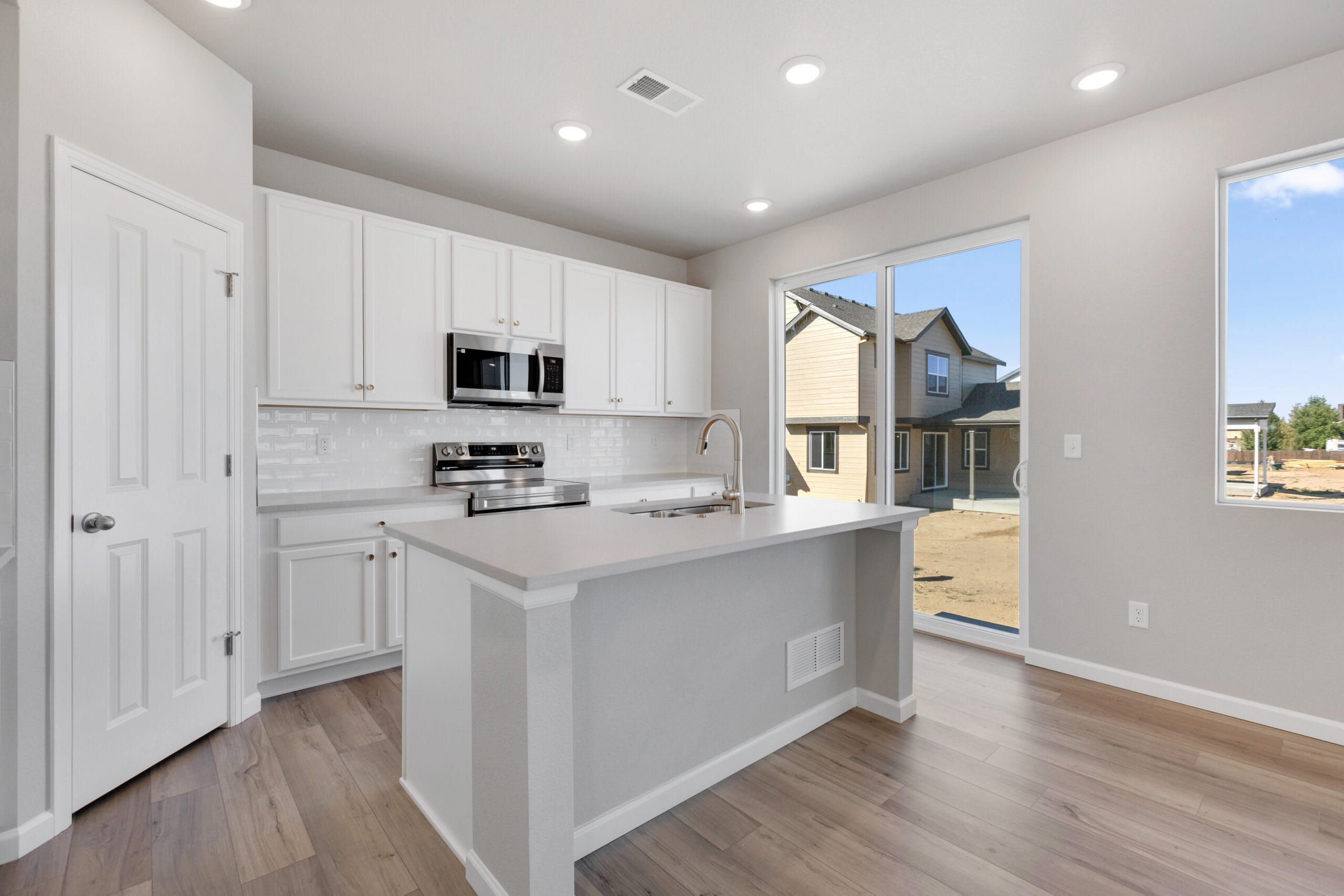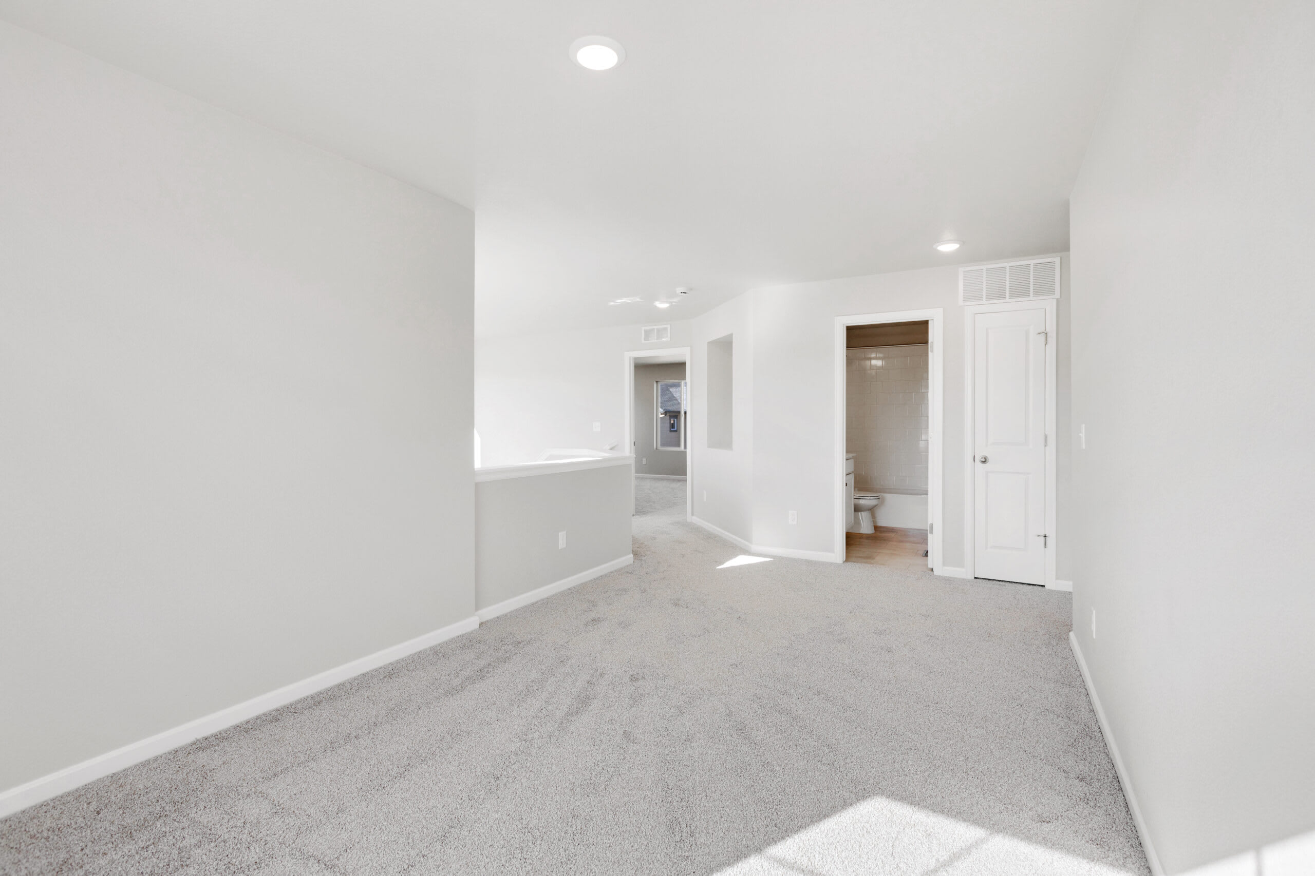 As you walk up the front porch and through the front door into the entryway, you’ll have a powder bathroom to your right, a U-shaped staircase to the second level, and a mudroom to your left with access to the 3-car garage. At the end of the hallway you’re greeted by the open-concept main living area where the kitchen, dining area, and great room flow effortlessly between one another. The kitchen features an eat-at center island, pantry, and tiled backsplash. Just beside the kitchen, you’ll have a sliding glass door that takes you to the backyard with the option to include a patio or covered patio which would be the perfect spot to sip your morning coffee, entertain guests, let the dogs out in the backyard, or soak in the Colorado sunshine. Heading back inside the house and up the stairs to the upper level, you’ll be greeted by a loft which could be utilized as a kid’s play area or homework space, home office, movie room, or any additional space you need. The primary bedroom is positioned at the back of the home with a private bathroom which features a dual sink vanity, tiled shower, water closet, and large walk-in closet. Further down the upper-level hallway, there are two additional bedrooms with a laundry room between the two and a full bathroom.