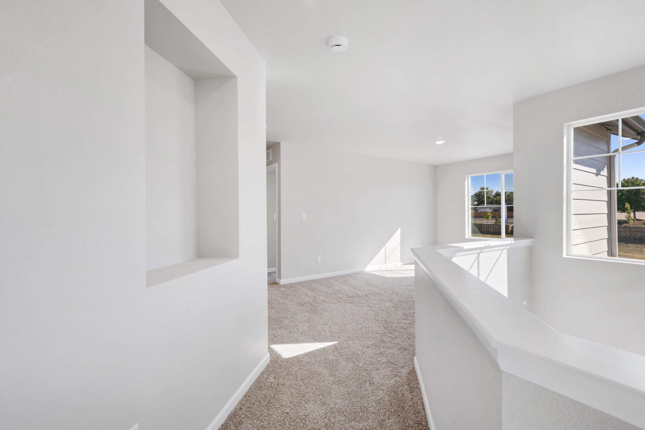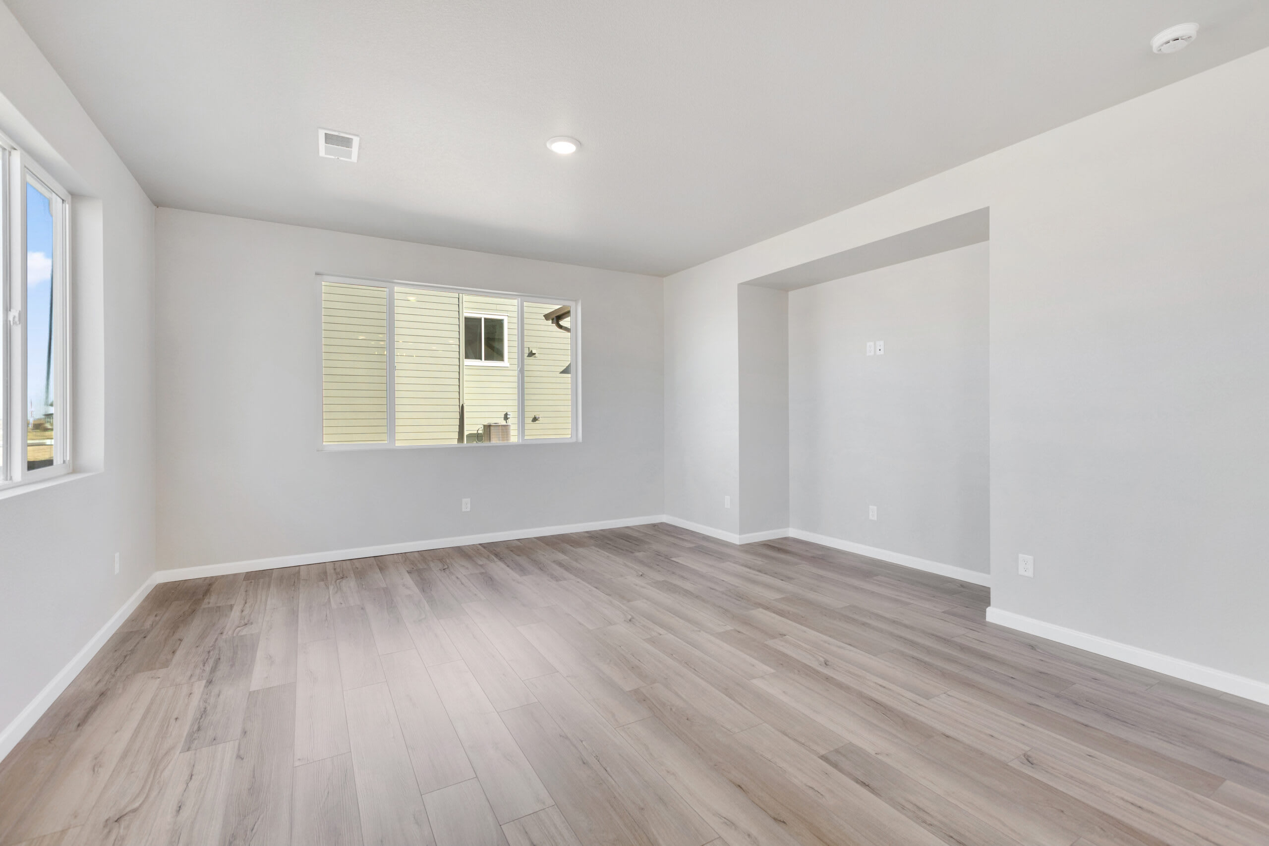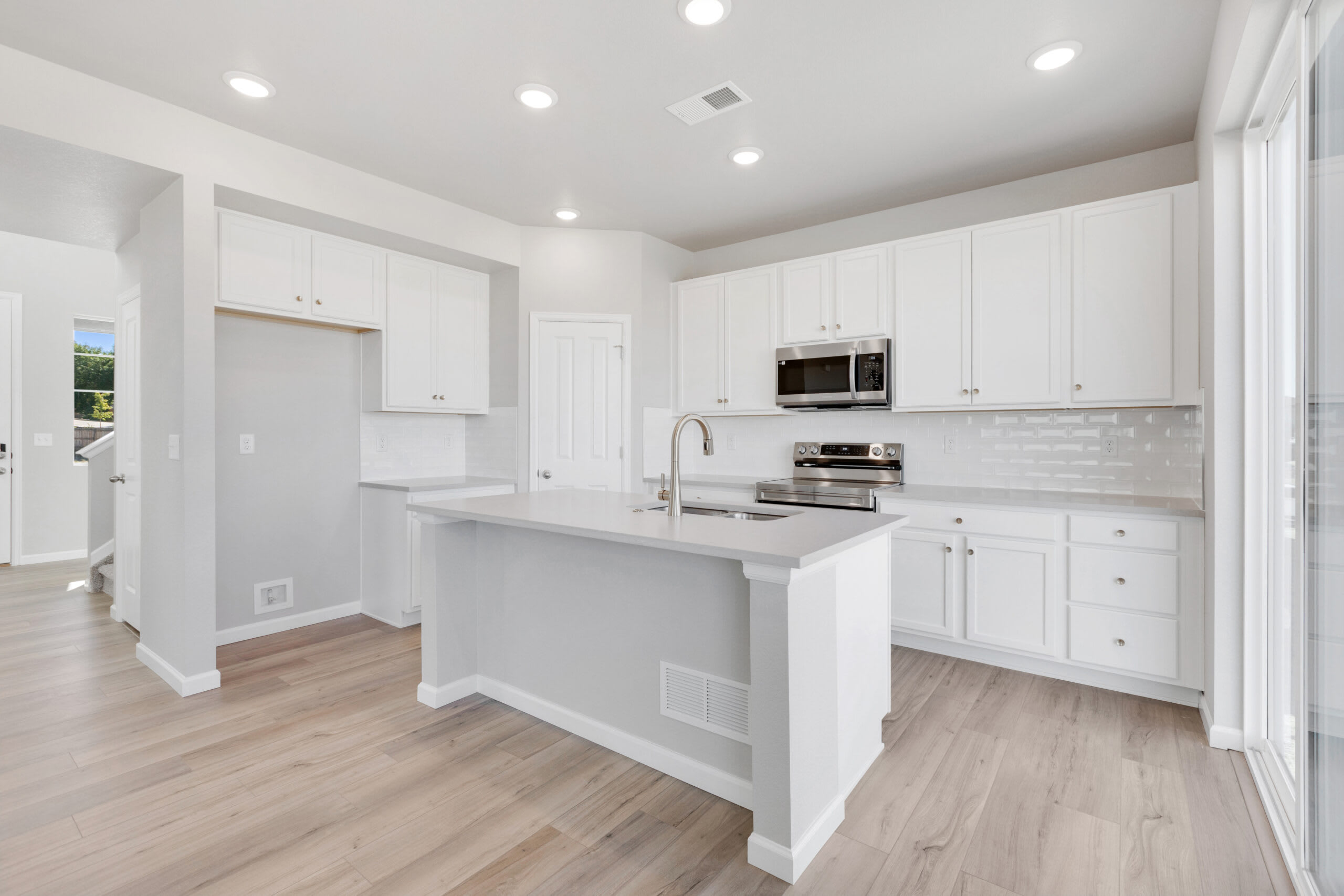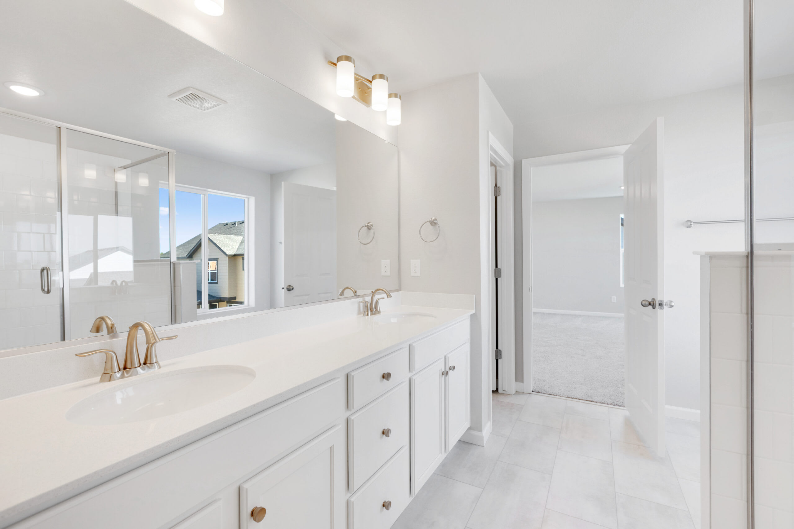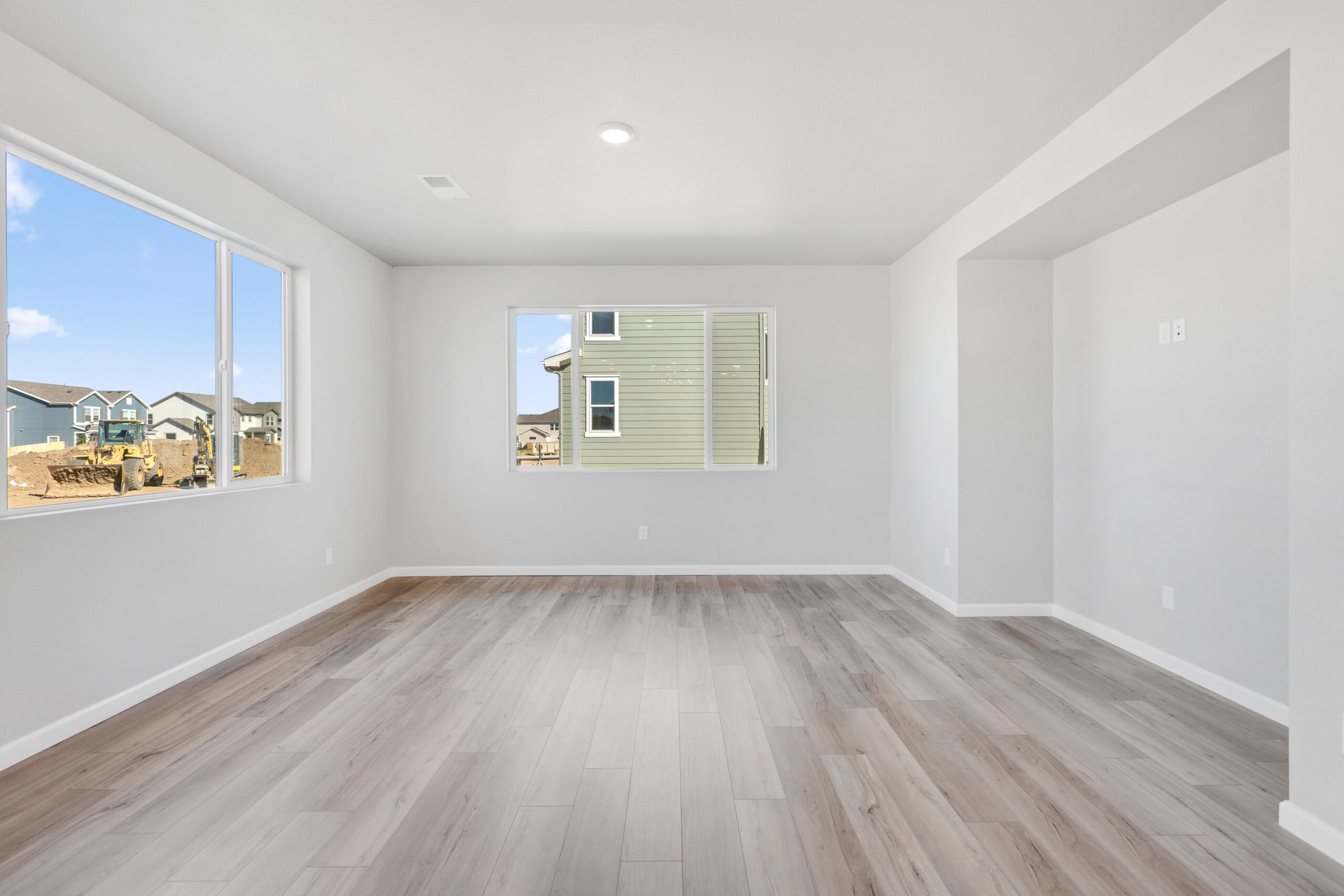 As you walk up the front porch and through the front door into the entryway, you’ll have a powder bathroom to your right, a U-shaped staircase to the second level, and a mudroom to your left with access to the 3-car garage. At the end of the hallway you’re greeted by the open-concept main living area where the kitchen, dining area, and great room flow effortlessly between one another. The kitchen features an eat-at center island, pantry, and tiled backsplash. Just beside the kitchen, you’ll have a sliding glass door that takes you to the backyard with the option to include a patio or covered patio which would be the perfect spot to sip your morning coffee, entertain guests, let the dogs out in the backyard, or soak in the Colorado sunshine. Heading back inside the house and up the stairs to the upper level, you’ll be greeted by a loft which could be utilized as a kid’s play area or homework space, home office, movie room, or any additional space you need. The primary bedroom is positioned at the back of the home with a private bathroom which features a dual sink vanity, tiled shower, water closet, and large walk-in closet. Further down the upper-level hallway, there are two additional bedrooms with a laundry room between the two and a full bathroom.