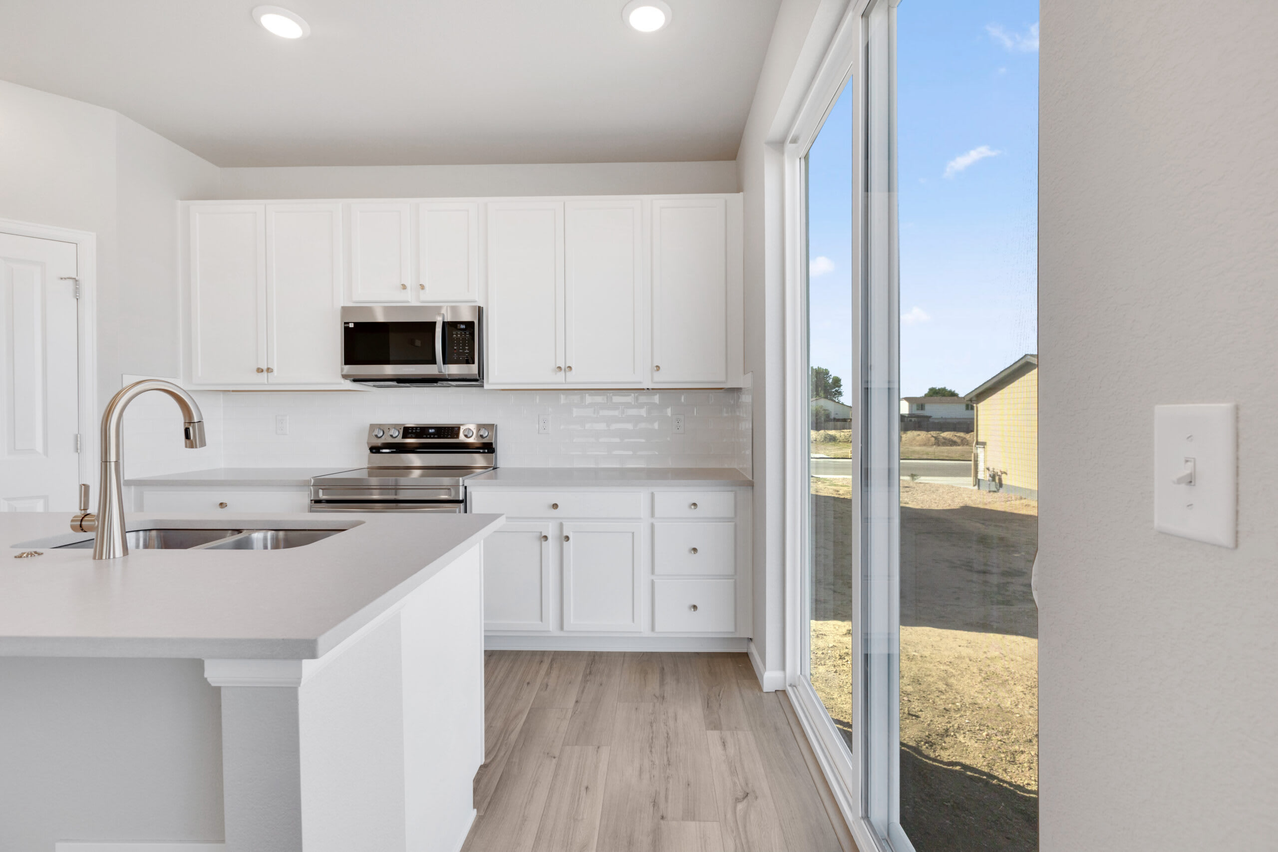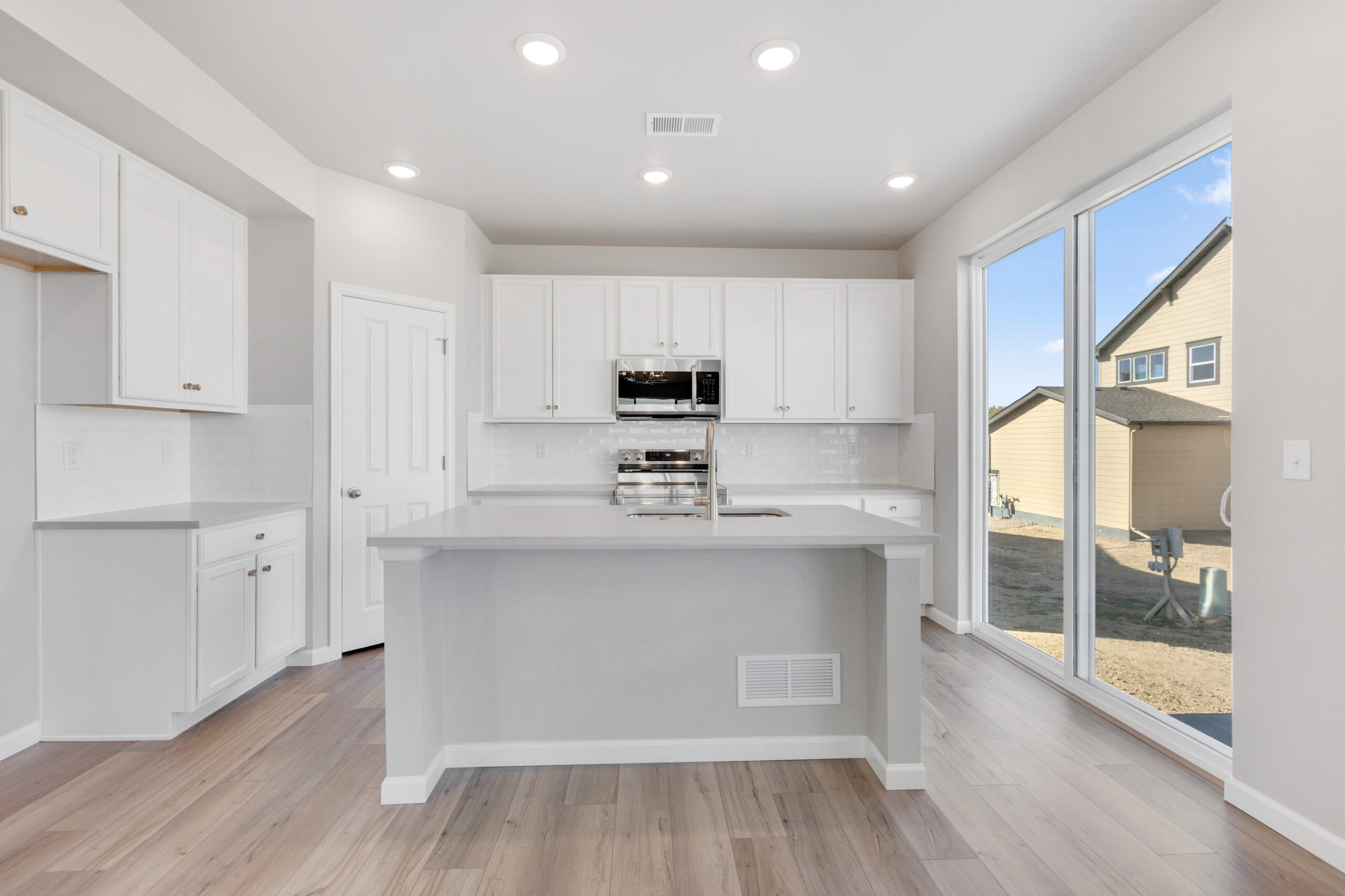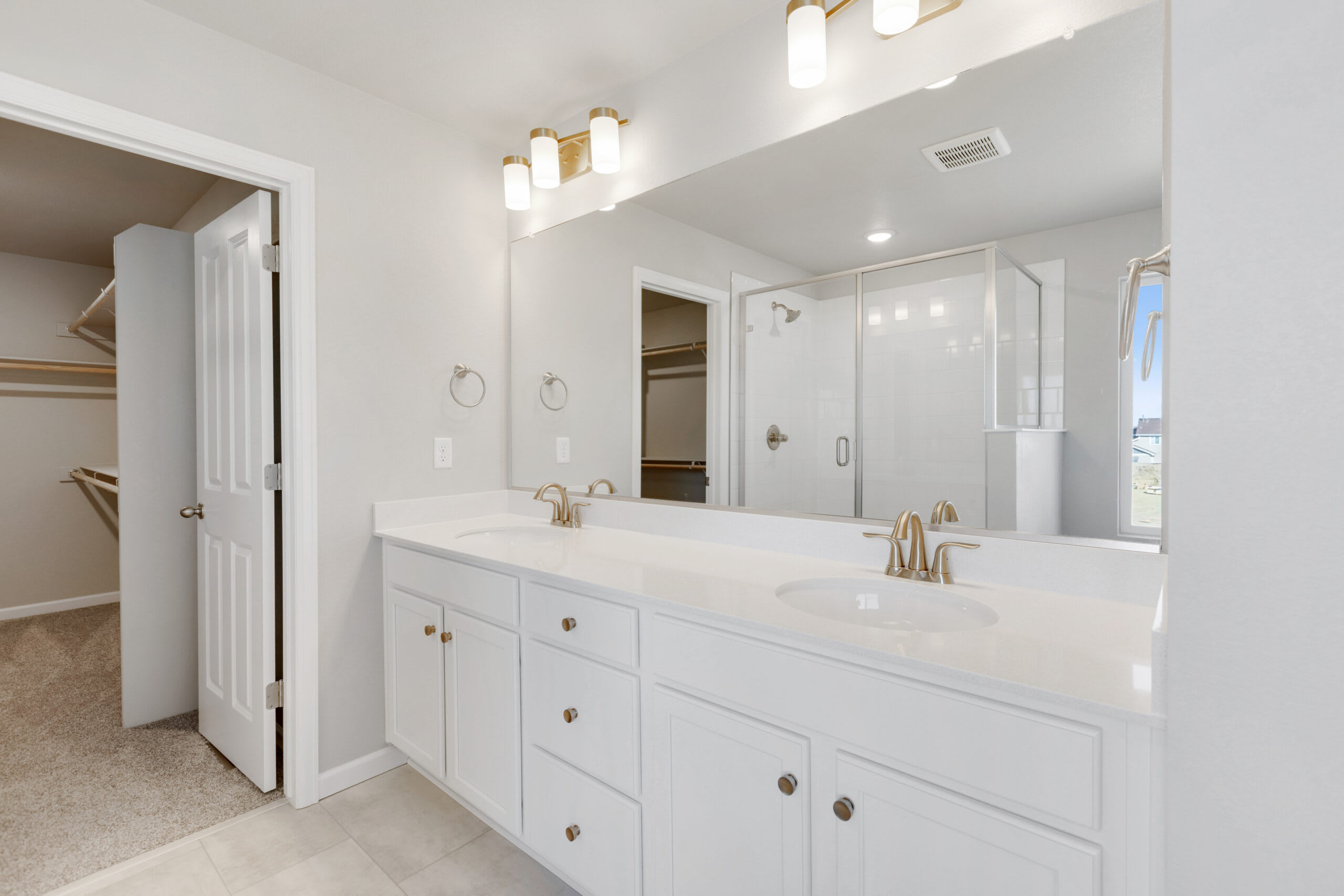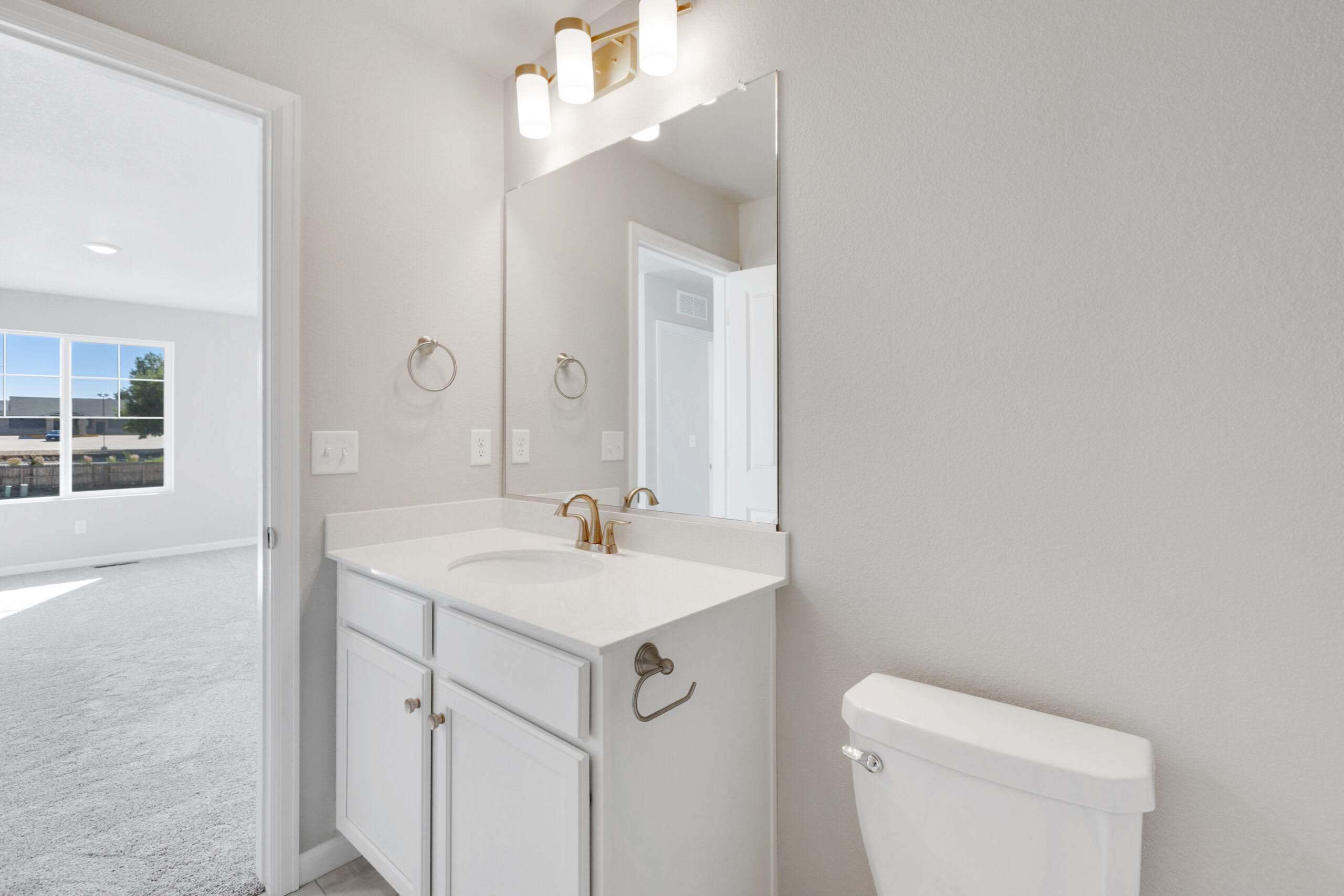 As you walk up the front porch and through the front door into the entryway, you’ll have a powder bathroom to your right, a U-shaped staircase to the second level, and a mudroom to your left with access to the 3-car garage. At the end of the hallway you’re greeted by the open-concept main living area where the kitchen, dining area, and great room flow effortlessly between one another. The kitchen features an eat-at center island, pantry, and tiled backsplash. Just beside the kitchen, you’ll have a sliding glass door that takes you to the backyard with the option to include a patio or covered patio which would be the perfect spot to sip your morning coffee, entertain guests, let the dogs out in the backyard, or soak in the Colorado sunshine. Heading back inside the house and up the stairs to the upper level, you’ll be greeted by a loft which could be utilized as a kid’s play area or homework space, home office, movie room, or any additional space you need. The primary bedroom is positioned at the back of the home with a private bathroom which features a dual sink vanity, tiled shower, water closet, and large walk-in closet. Further down the upper-level hallway, there are two additional bedrooms with a laundry room between the two and a full bathroom.