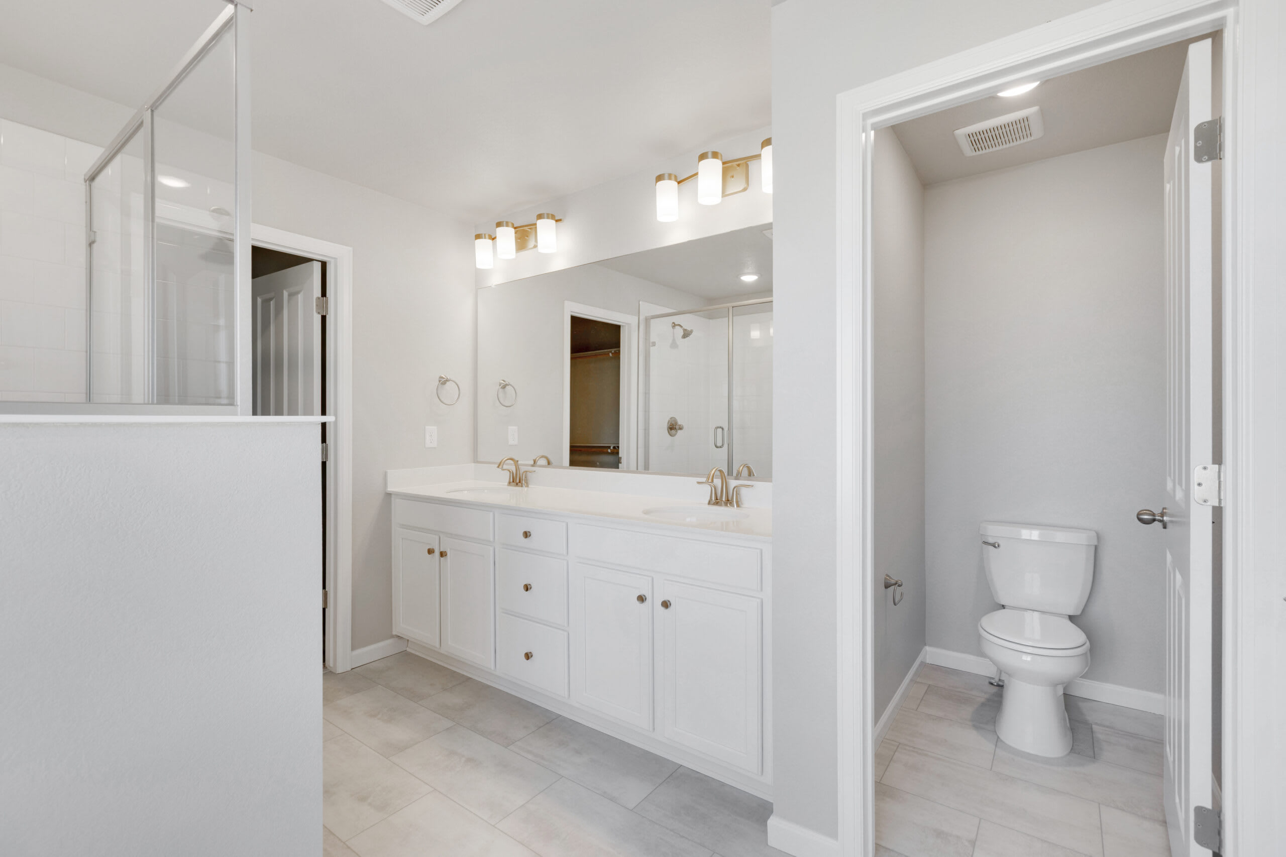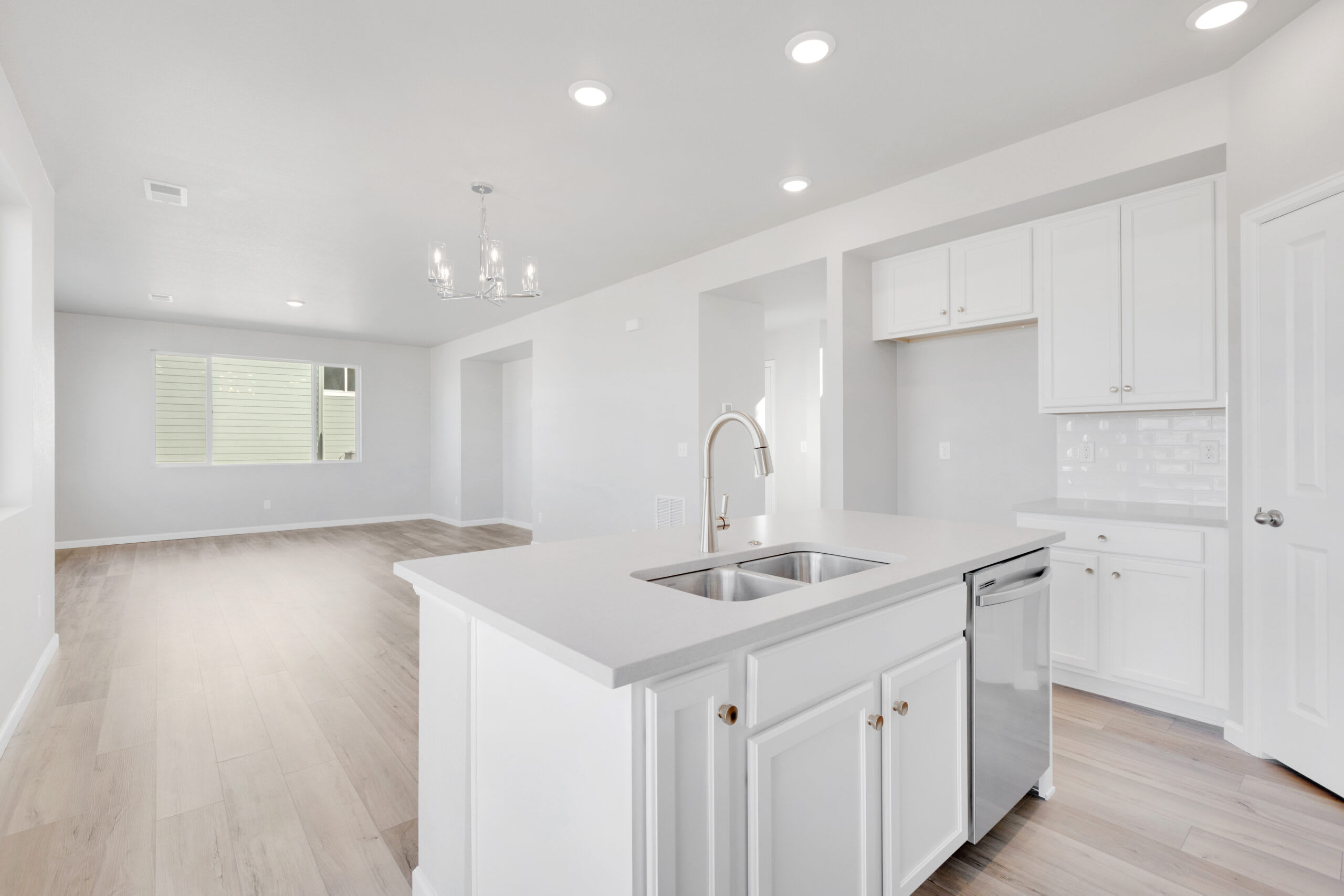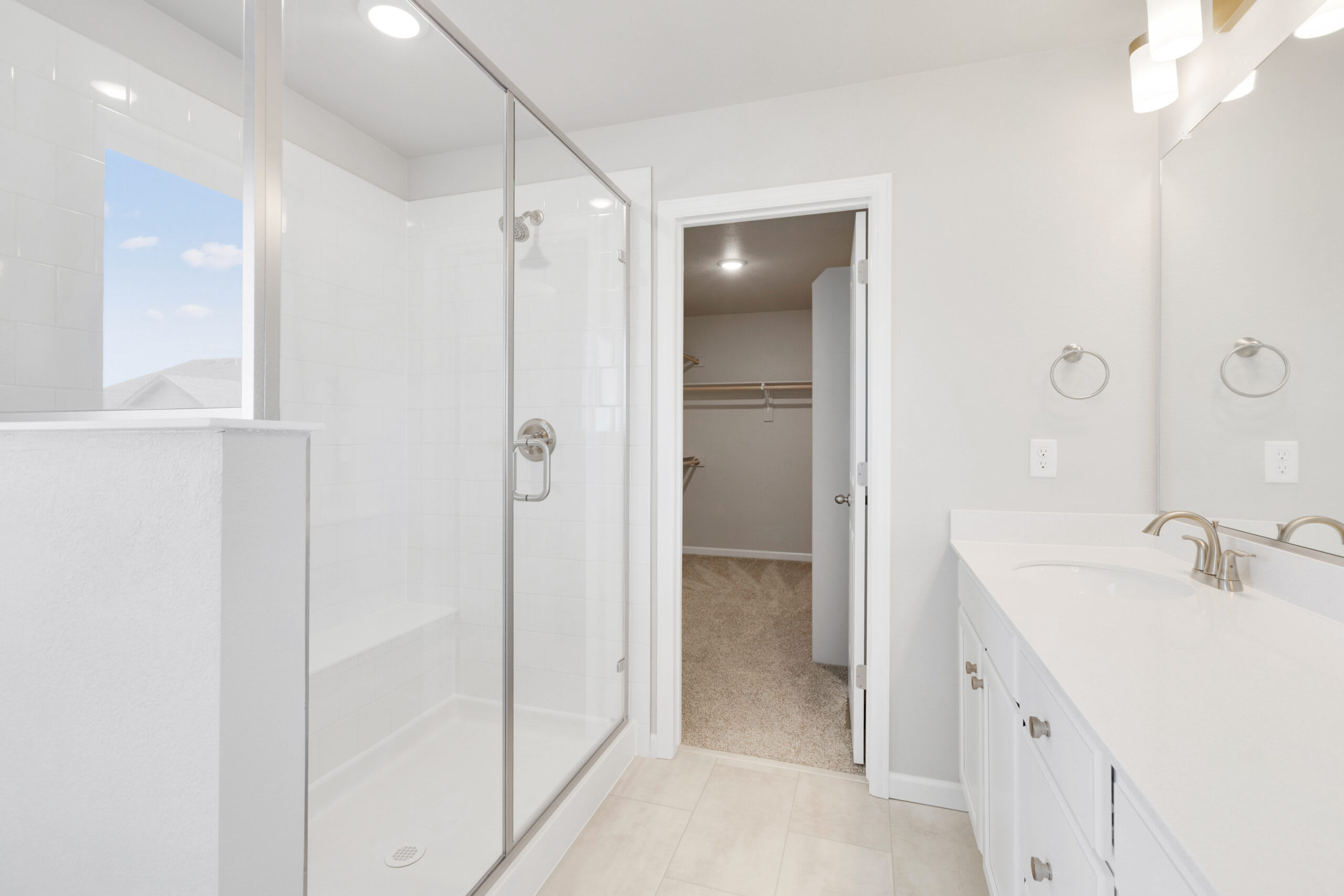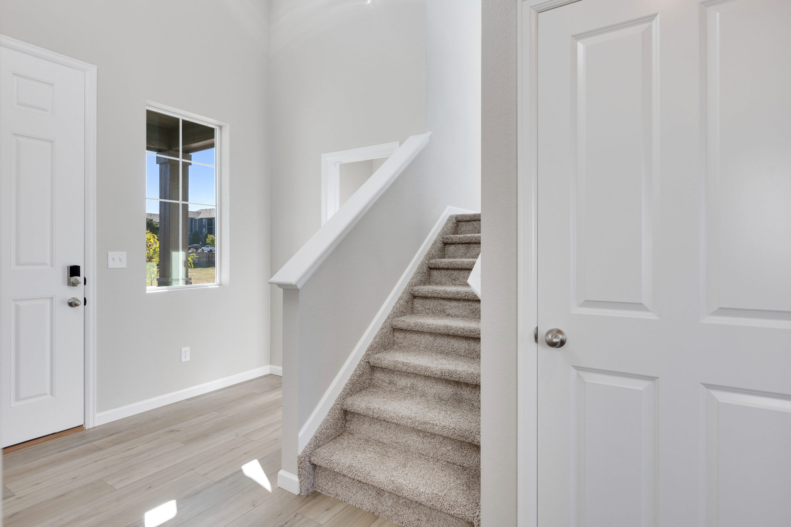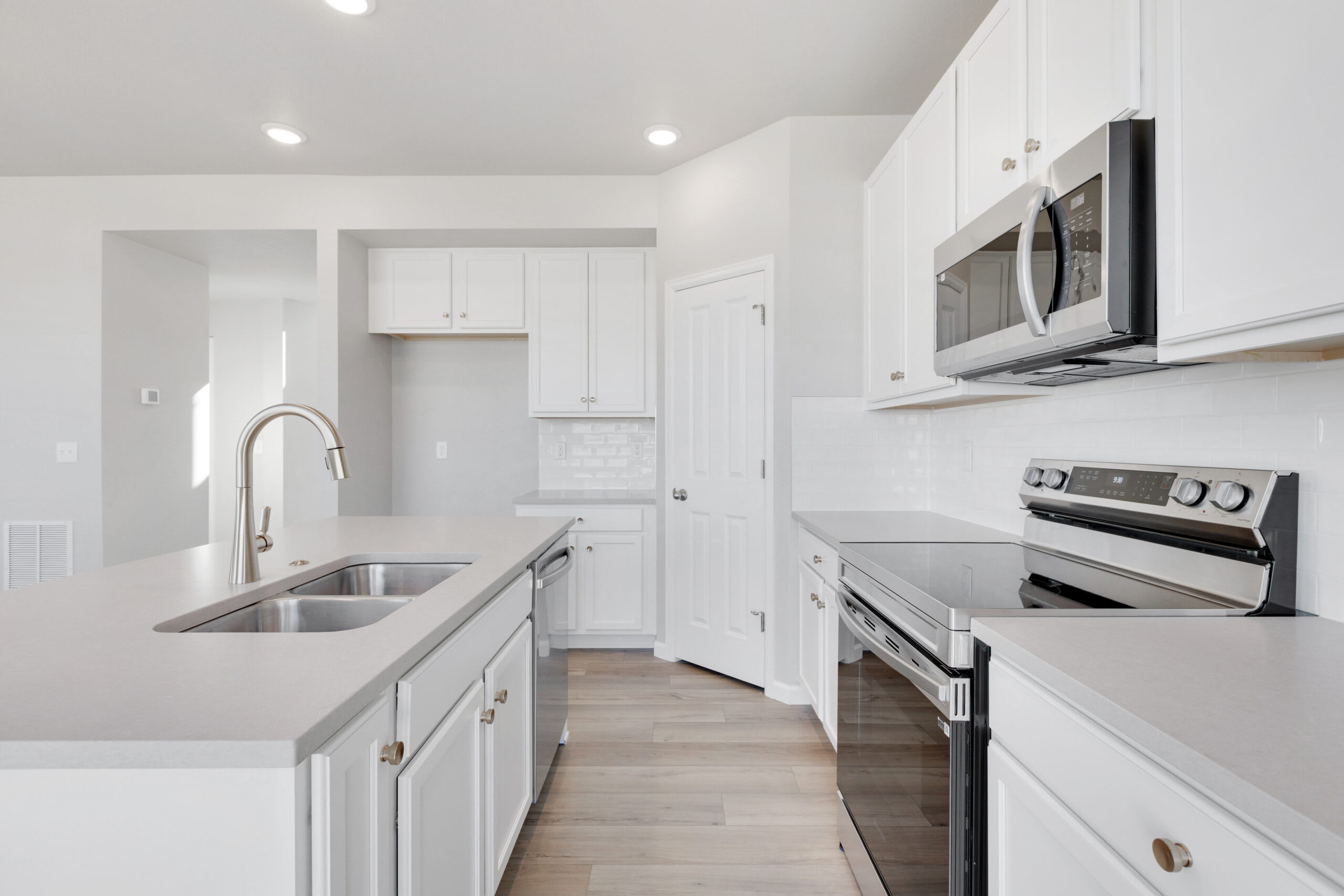 As you walk up the front porch and through the front door into the entryway, you’ll have a powder bathroom to your right, a U-shaped staircase to the second level, and a mudroom to your left with access to the 3-car garage. At the end of the hallway you’re greeted by the open-concept main living area where the kitchen, dining area, and great room flow effortlessly between one another. The kitchen features an eat-at center island, pantry, and tiled backsplash. Just beside the kitchen, you’ll have a sliding glass door that takes you to the backyard with the option to include a patio or covered patio which would be the perfect spot to sip your morning coffee, entertain guests, let the dogs out in the backyard, or soak in the Colorado sunshine. Heading back inside the house and up the stairs to the upper level, you’ll be greeted by a loft which could be utilized as a kid’s play area or homework space, home office, movie room, or any additional space you need. The primary bedroom is positioned at the back of the home with a private bathroom which features a dual sink vanity, tiled shower, water closet, and large walk-in closet. Further down the upper-level hallway, there are two additional bedrooms with a laundry room between the two and a full bathroom.