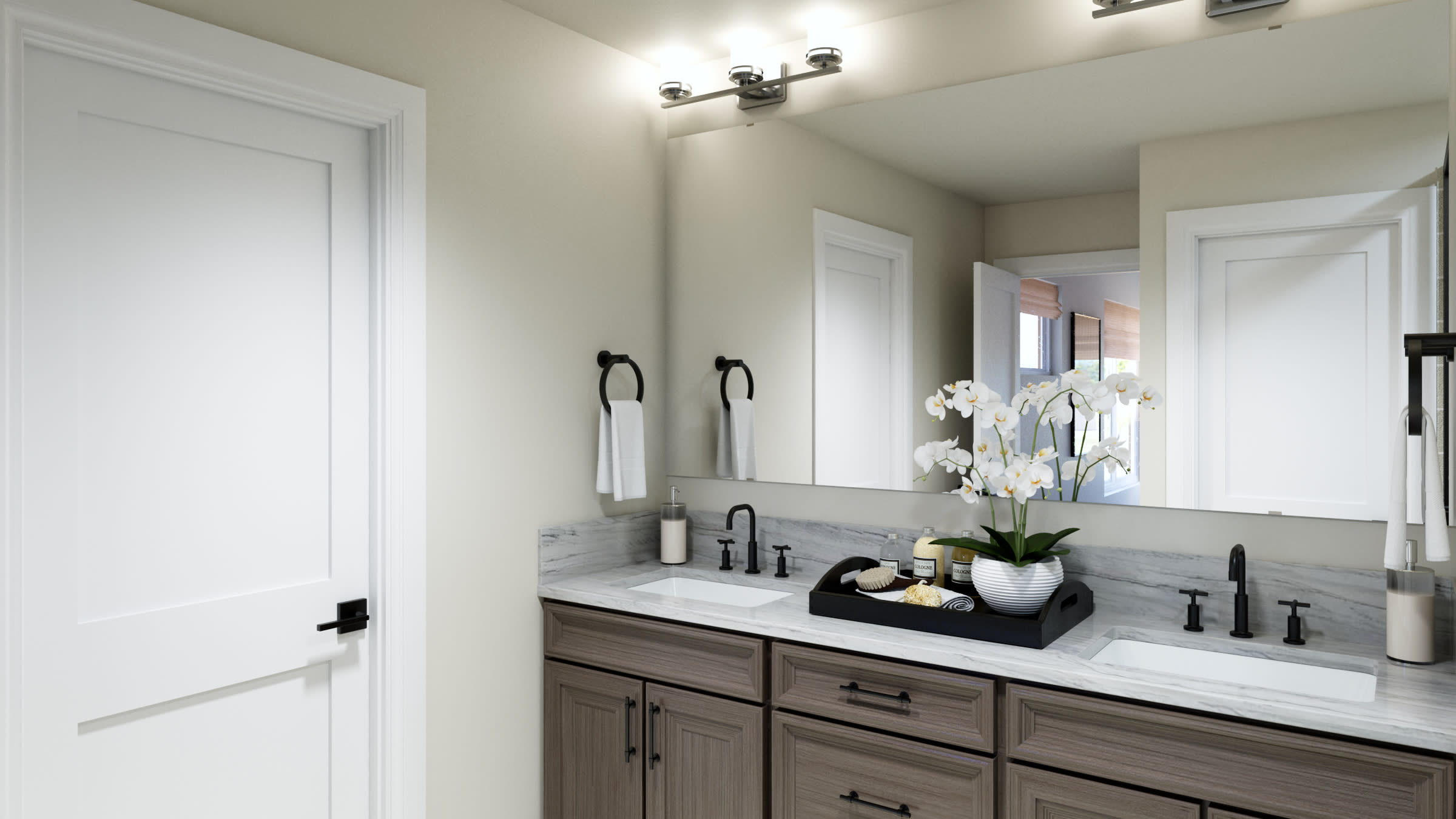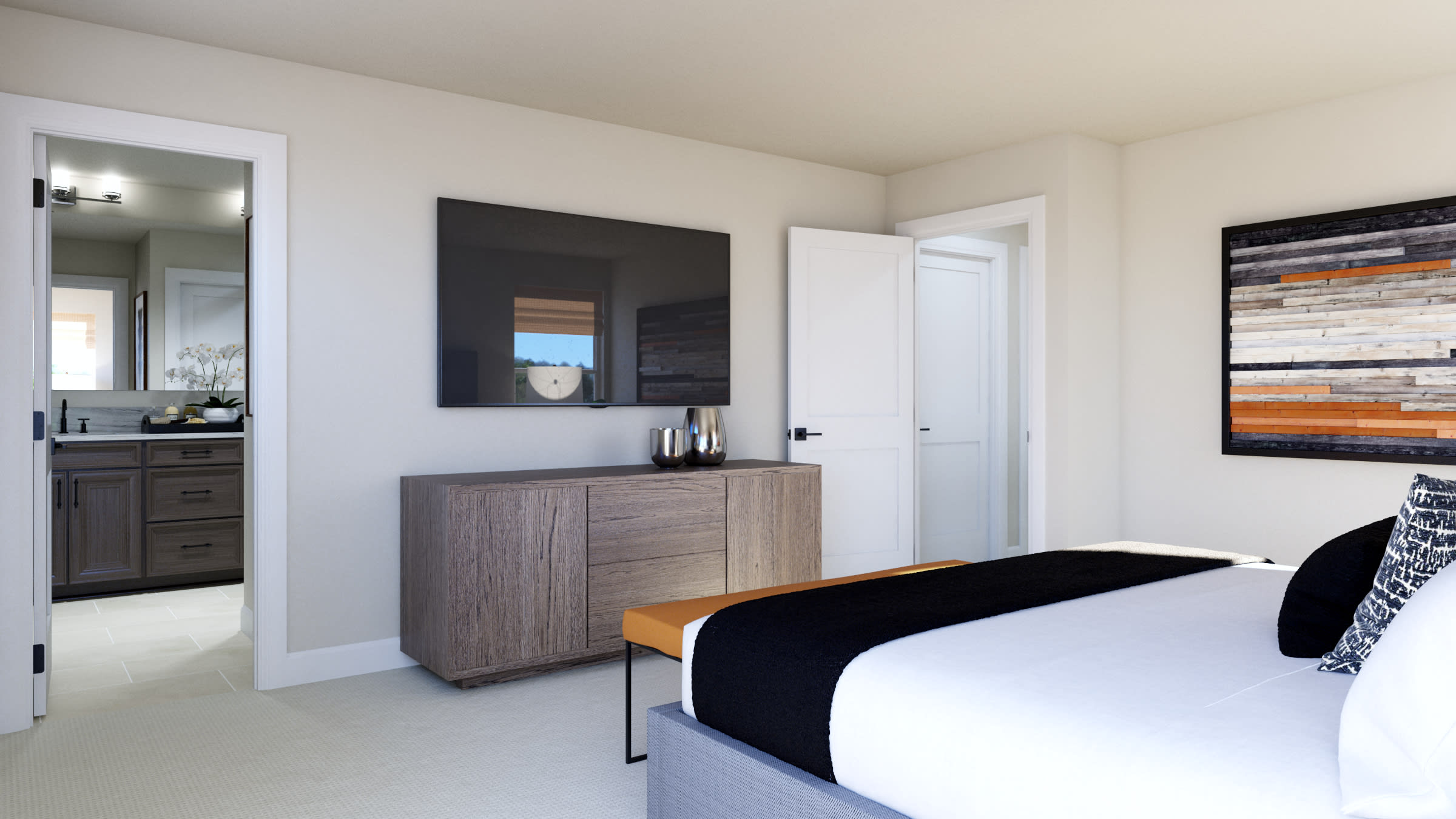 Heading up the stairs to the second level, you’ll find the second and third bedroom to your right both with walk-in closets. If you don’t need three bedrooms, utilize one of the bedrooms as a home office, yoga studio, kid’s play room, outdoor gear room or any additional space you need. Just outside the two bedrooms, you’ll have a full bathroom and the convenience of having a laundry room centralized to the upper level. Positioned at the front of the home, you’ll find the primary bedroom with its own private bathroom which features a double sink vanity, tiled shower, water closet, and a large walk-in closet.
