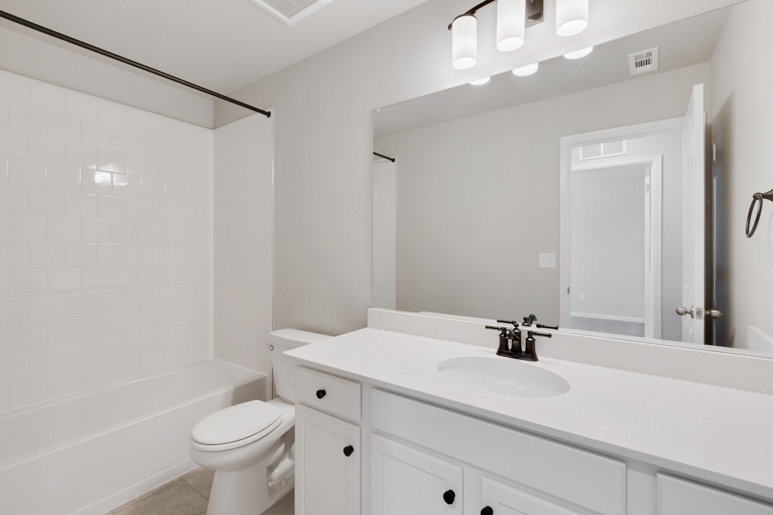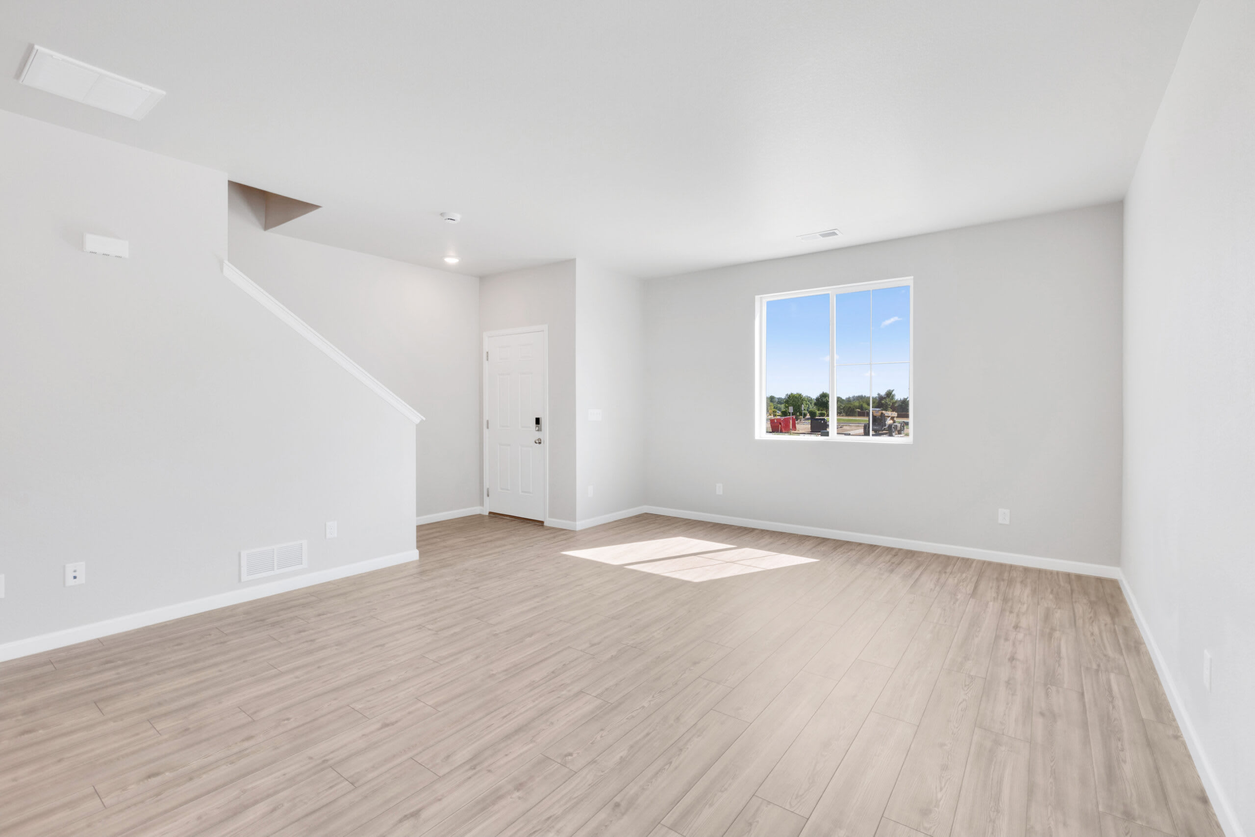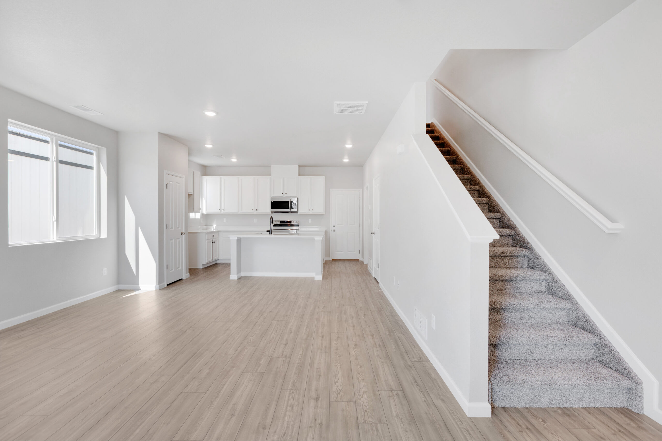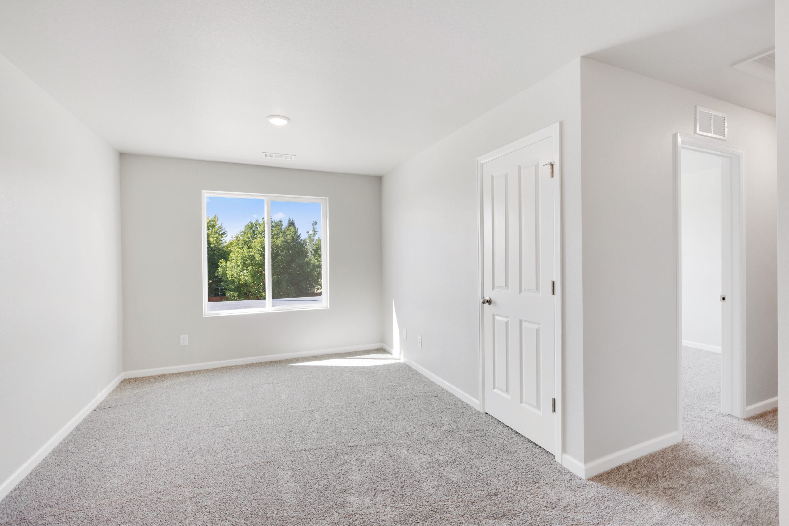 As you head up the stairs to the upper level, you’re greeted with a loft to use as any additional space you need. Get creative and turn the loft into a home office, yoga studio, homework or play area for your kids, craft area, home theater, the ideas are endless. The primary bedroom is positioned at the front of the home with a walk-in closet and a private bathroom with a double sink vanity and tiled shower. At the other end of the upper-level hallway, you’ll find a laundry room, a second full bathroom, and the second and third bedroom.