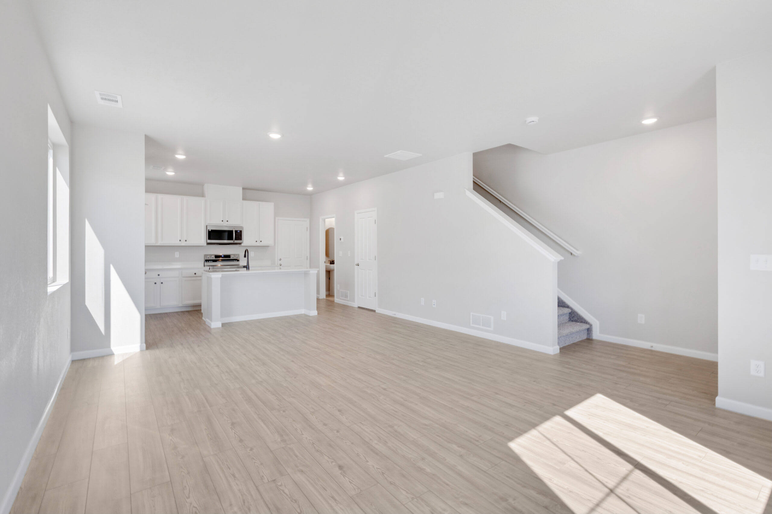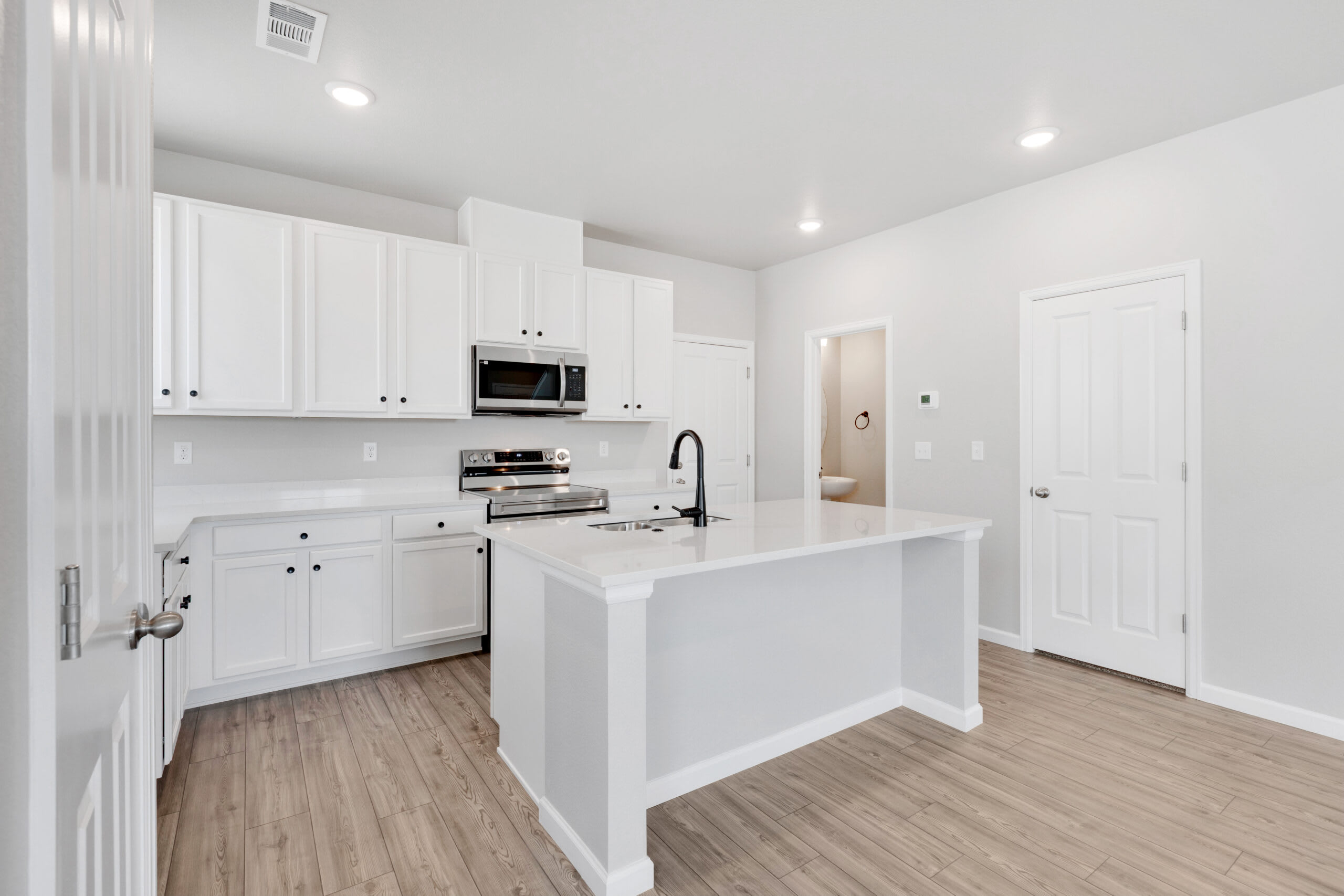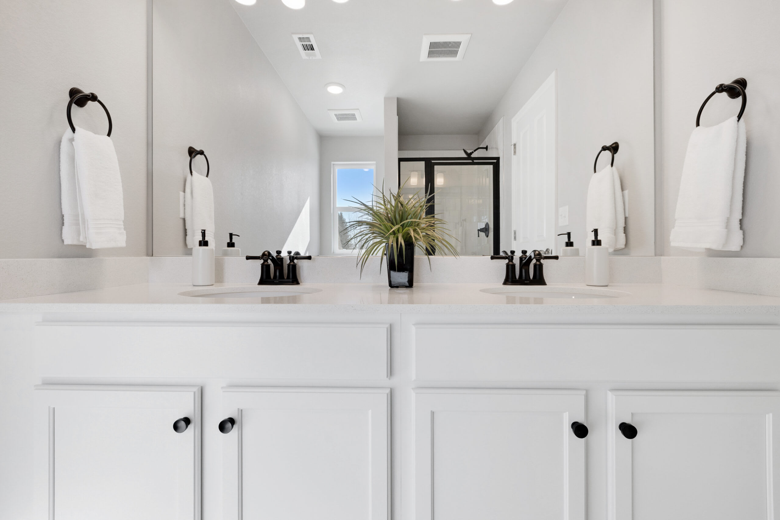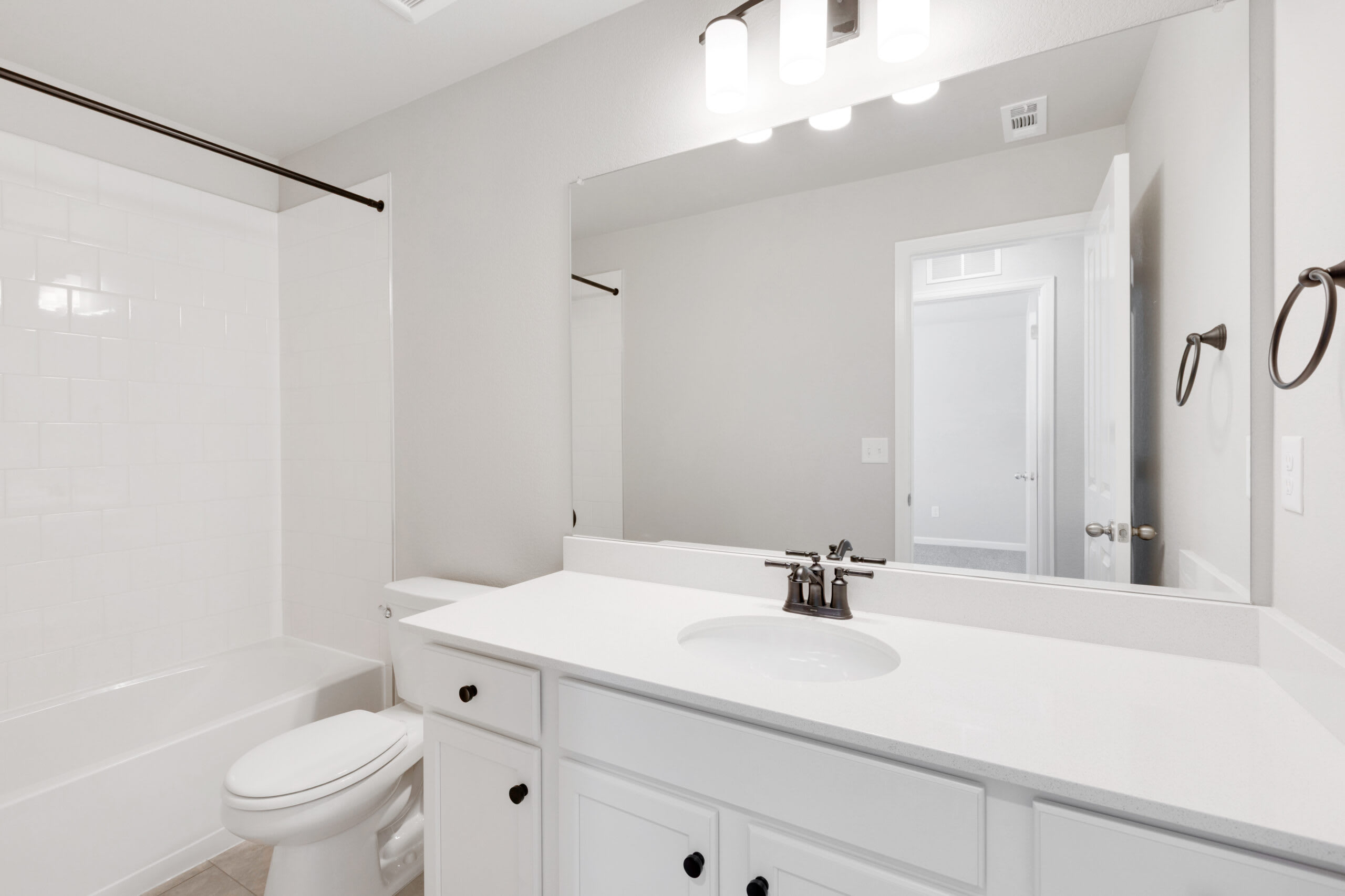 As you head up the stairs to the upper level, you’re greeted with a loft to use as any additional space you need. Get creative and turn the loft into a home office, yoga studio, homework or play area for your kids, craft area, home theater, the ideas are endless. The primary bedroom is positioned at the front of the home with a walk-in closet and a private bathroom with a double sink vanity and tiled shower. At the other end of the upper-level hallway, you’ll find a laundry room, a second full bathroom, and the second and third bedroom.