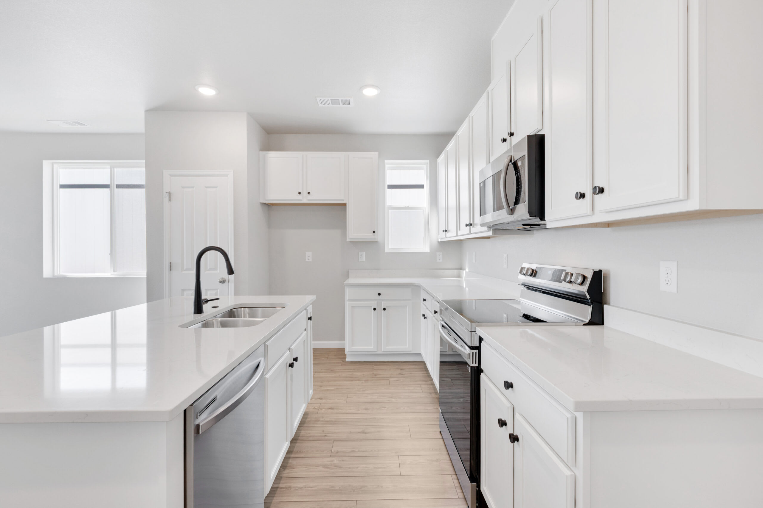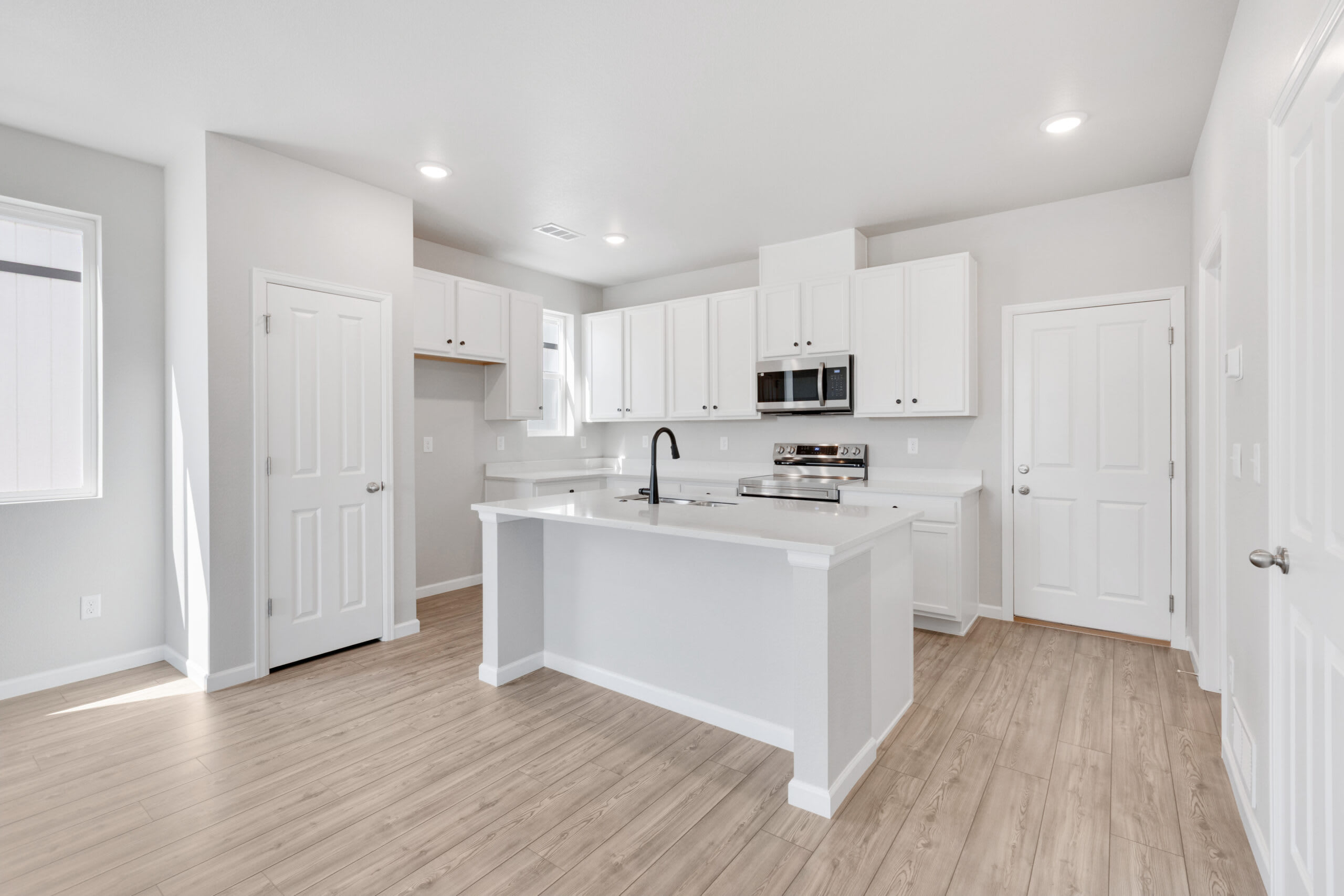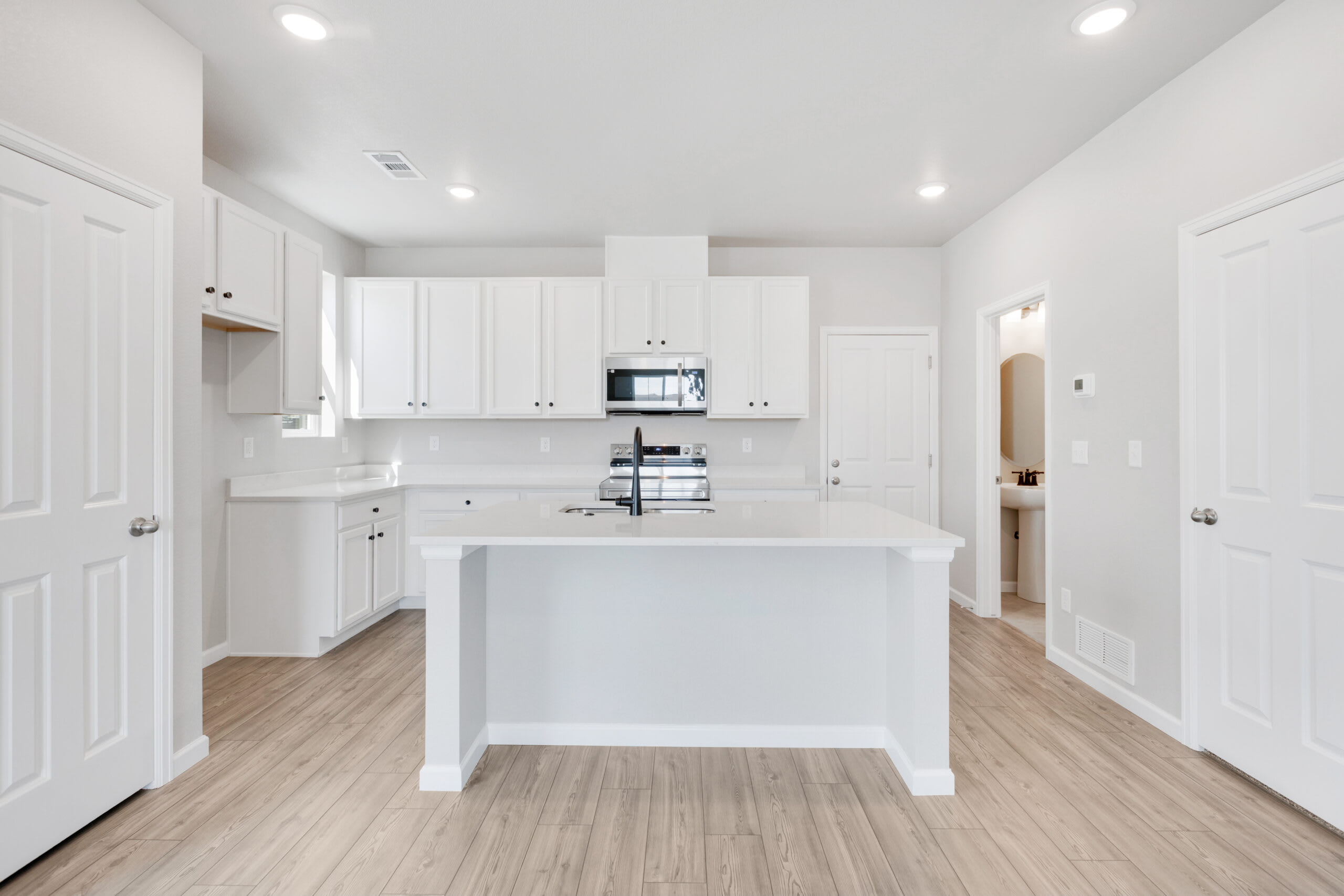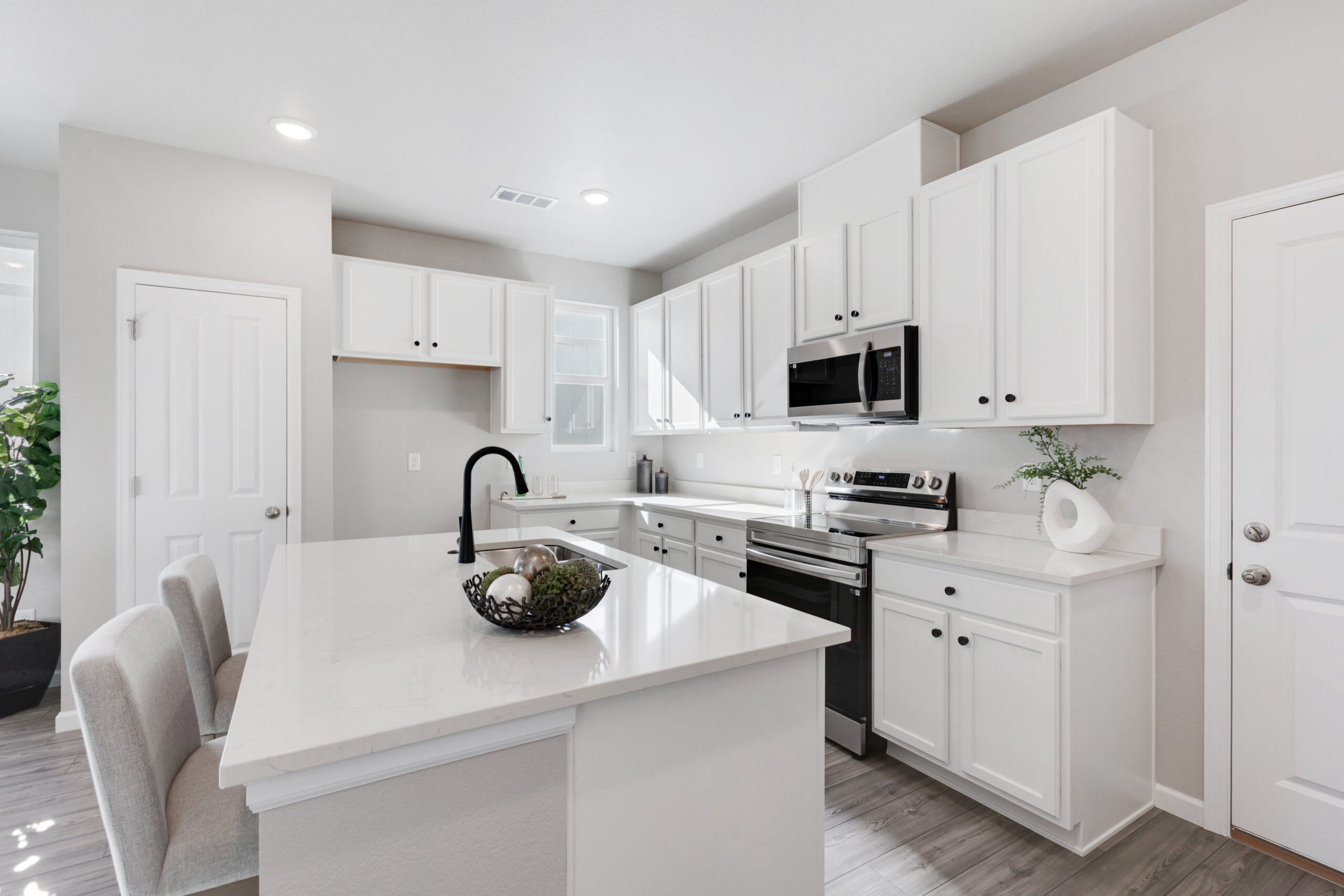 As you head up the stairs to the upper level, you’re greeted with a loft to use as any additional space you need. Get creative and turn the loft into a home office, yoga studio, homework or play area for your kids, craft area, home theater, the ideas are endless. The primary bedroom is positioned at the front of the home with a walk-in closet and a private bathroom with a double sink vanity and tiled shower. At the other end of the upper-level hallway, you’ll find a laundry room, a second full bathroom, and the second and third bedroom.