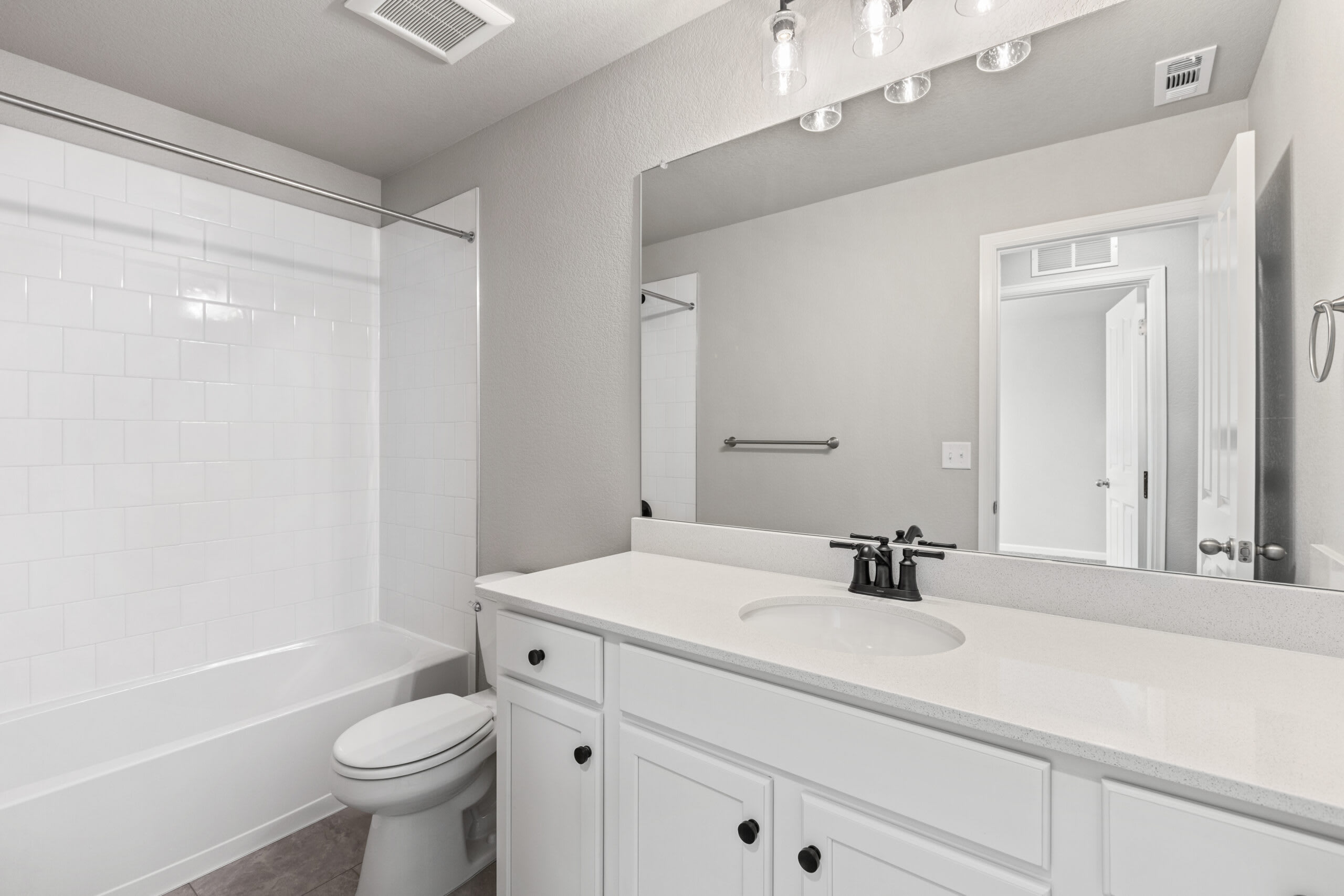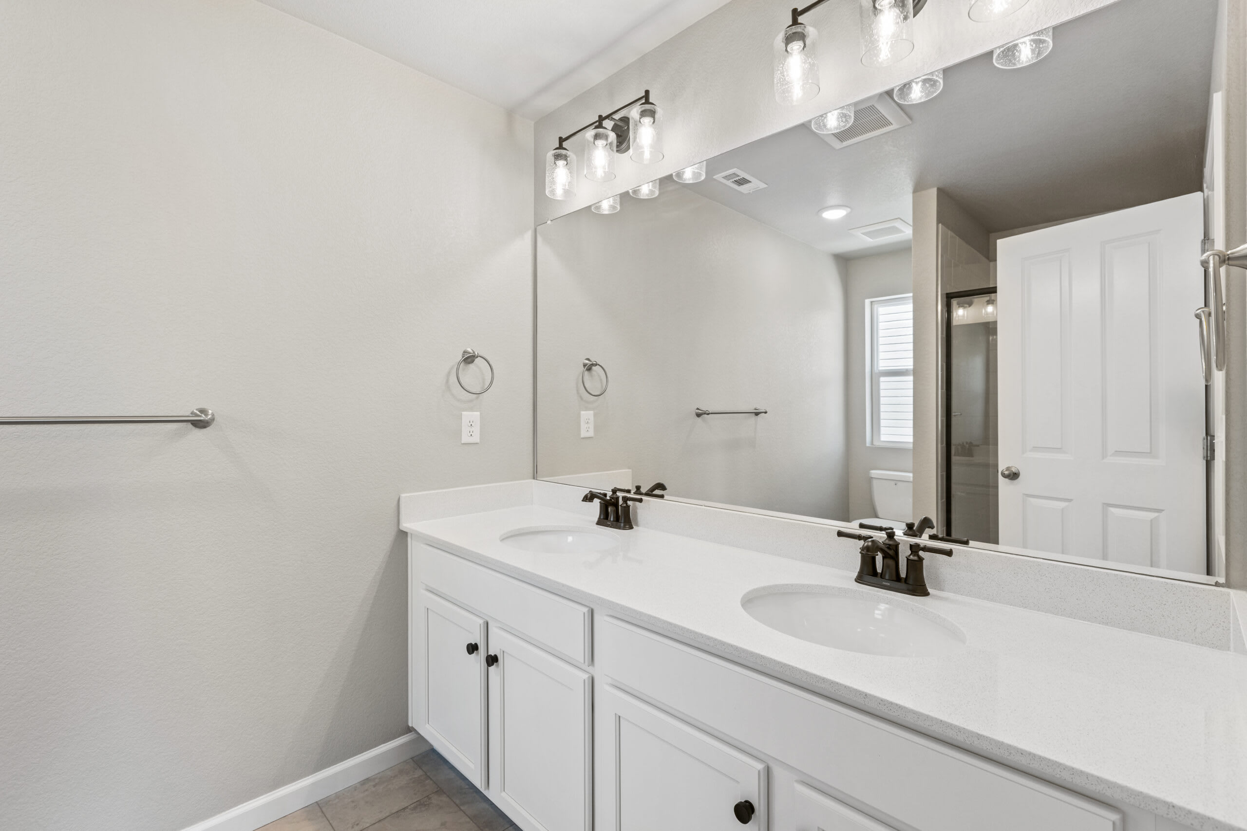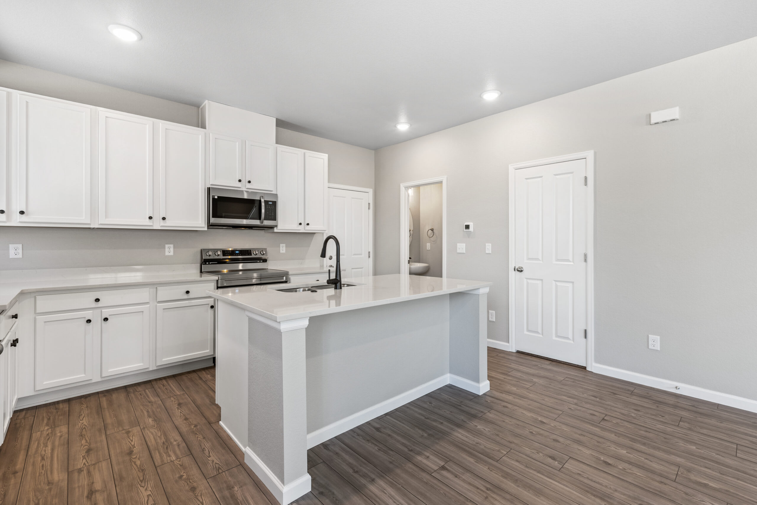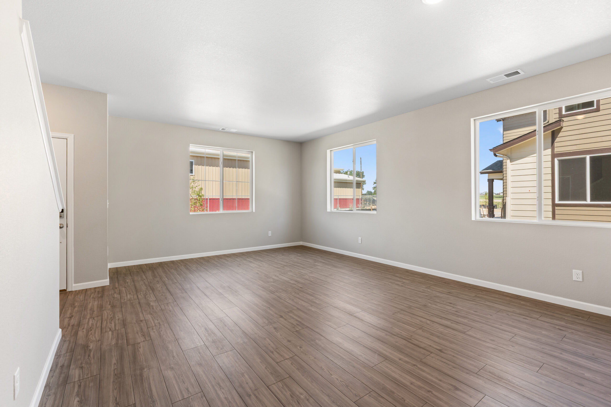 As you head up the stairs to the upper level, you’re greeted with a loft to use as any additional space you need. Get creative and turn the loft into a home office, yoga studio, homework or play area for the kids, craft area, home theater, the ideas are endless. The primary bedroom is positioned at the front of the home with a walk-in closet and a private bathroom with a double sink vanity and tiled shower. At the other end of the upper-level hallway, you’ll find a laundry room, a second full bathroom, and the second and third bedroom.
