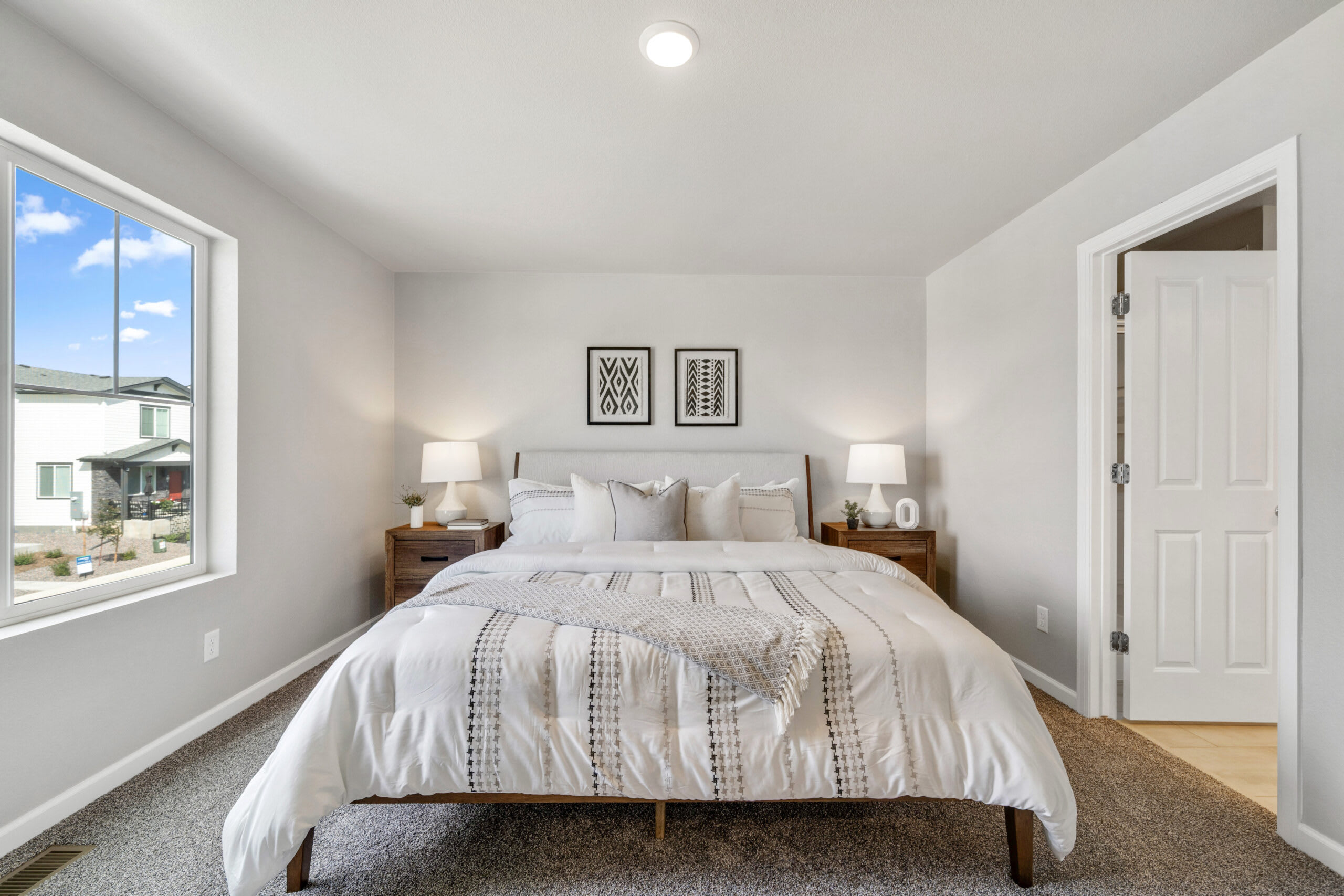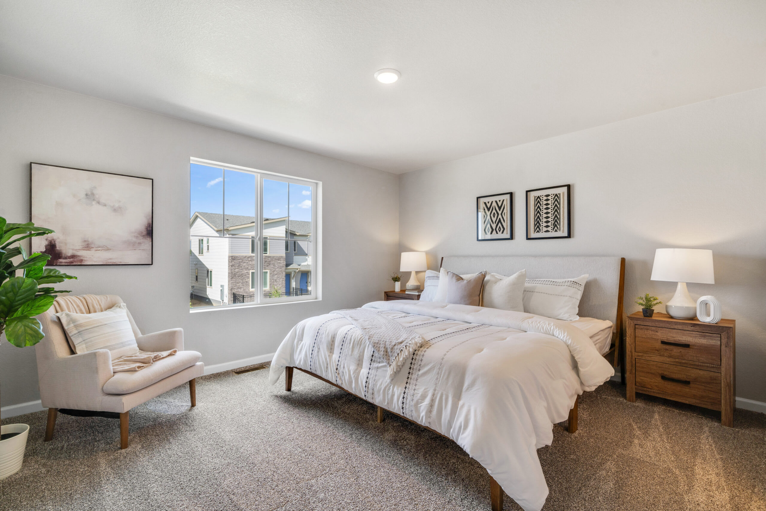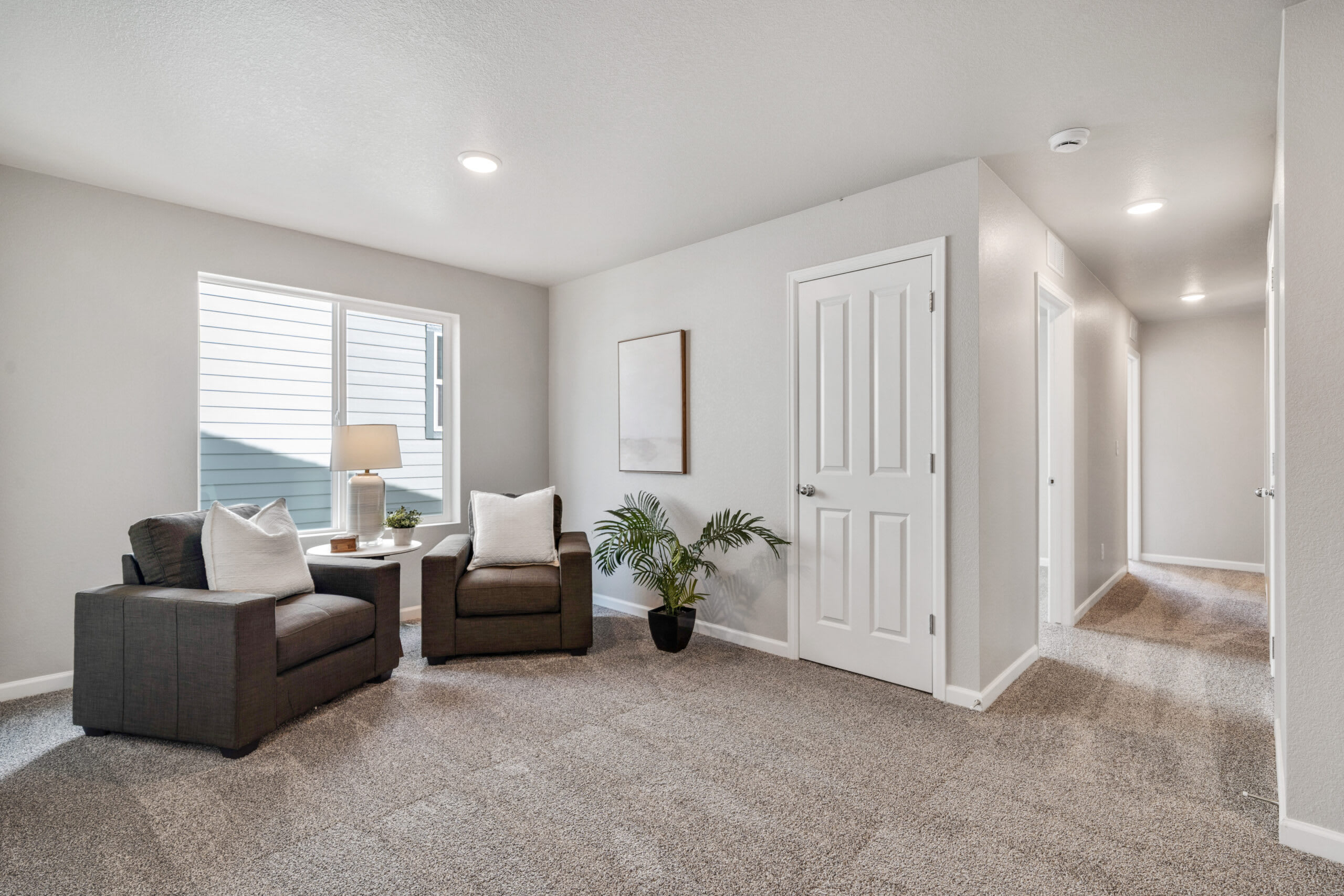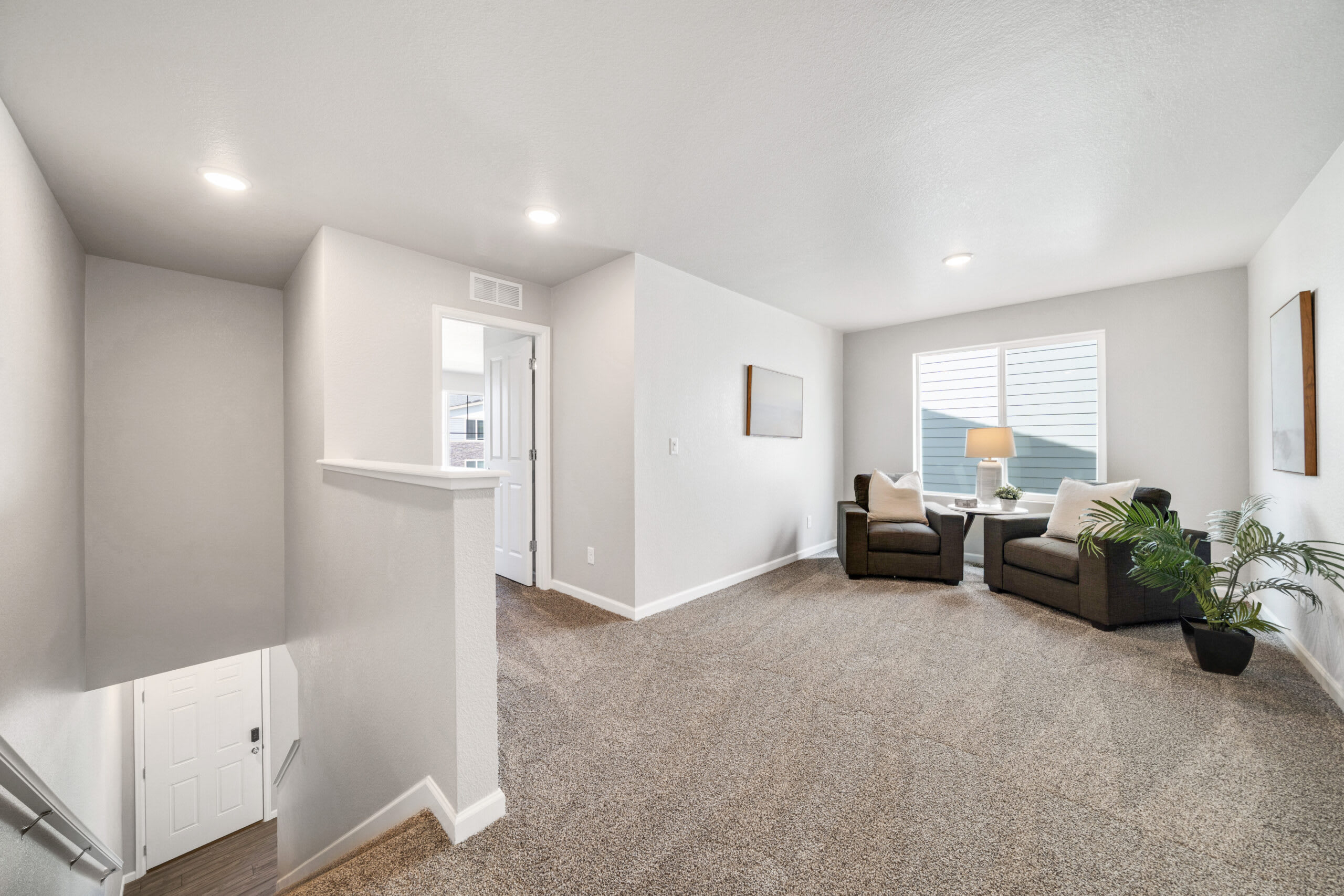 As you head up the stairs to the upper level, you’re greeted with a spacious loft to use as any additional space your family needs. Get creative and turn this space into a home office, yoga studio, homework or play area for your kids, craft area, home theater, the ideas are endless. The primary bedroom is positioned at the front of the home with a walk-in closet and a private bathroom with a double vanity. At the other end of the upper-level hallway, you’ll find a laundry room, a second full bathroom, and the second and third bedroom.