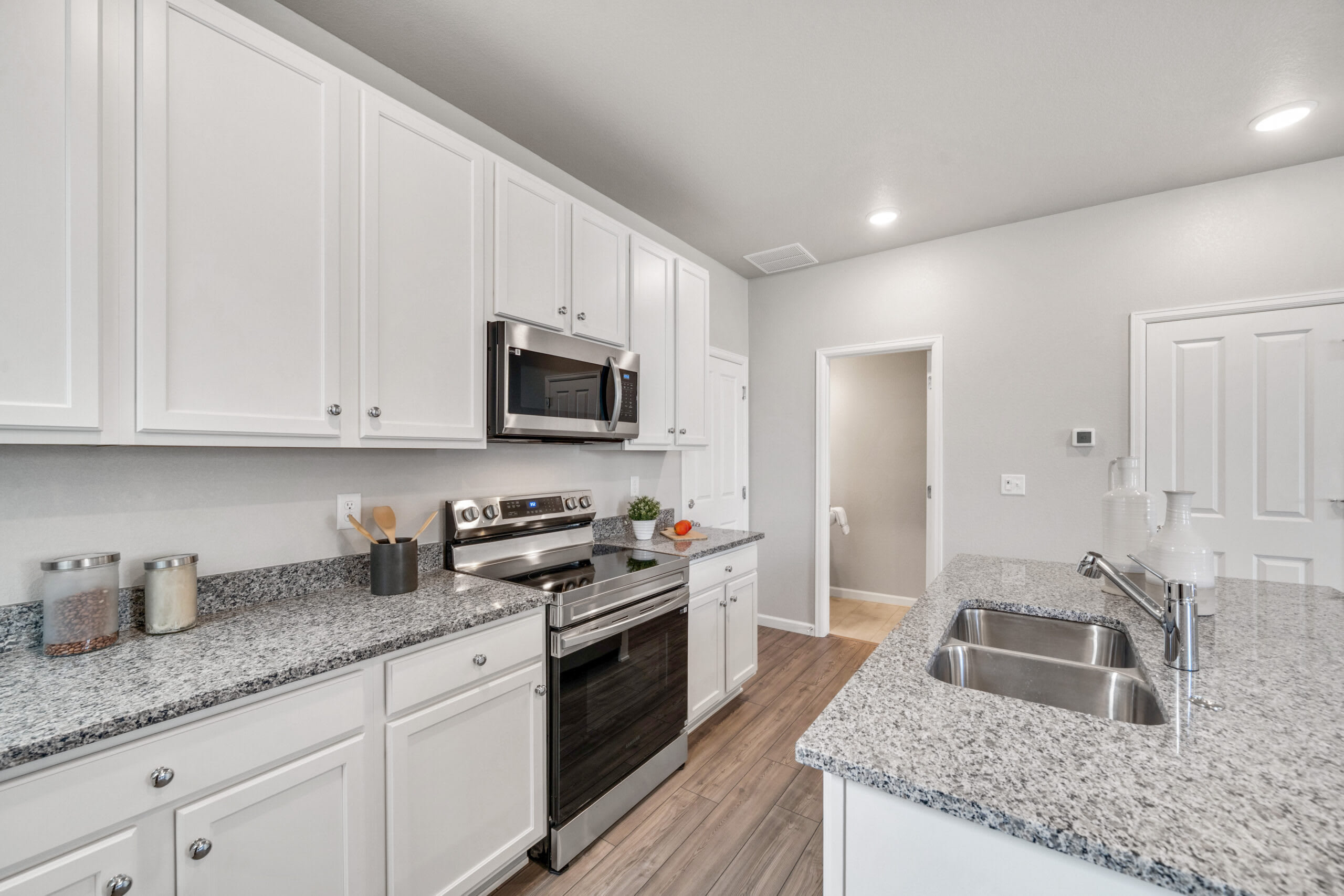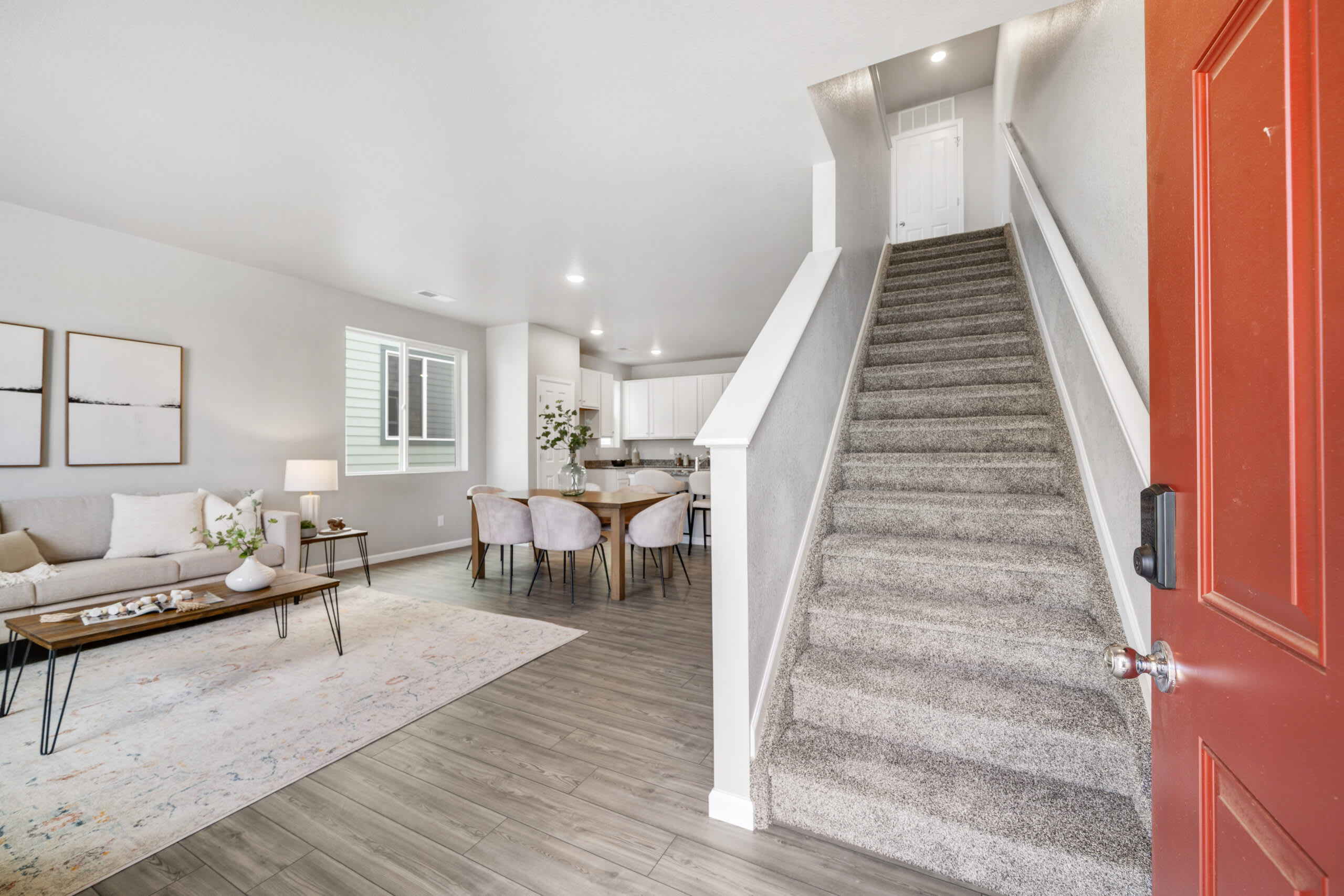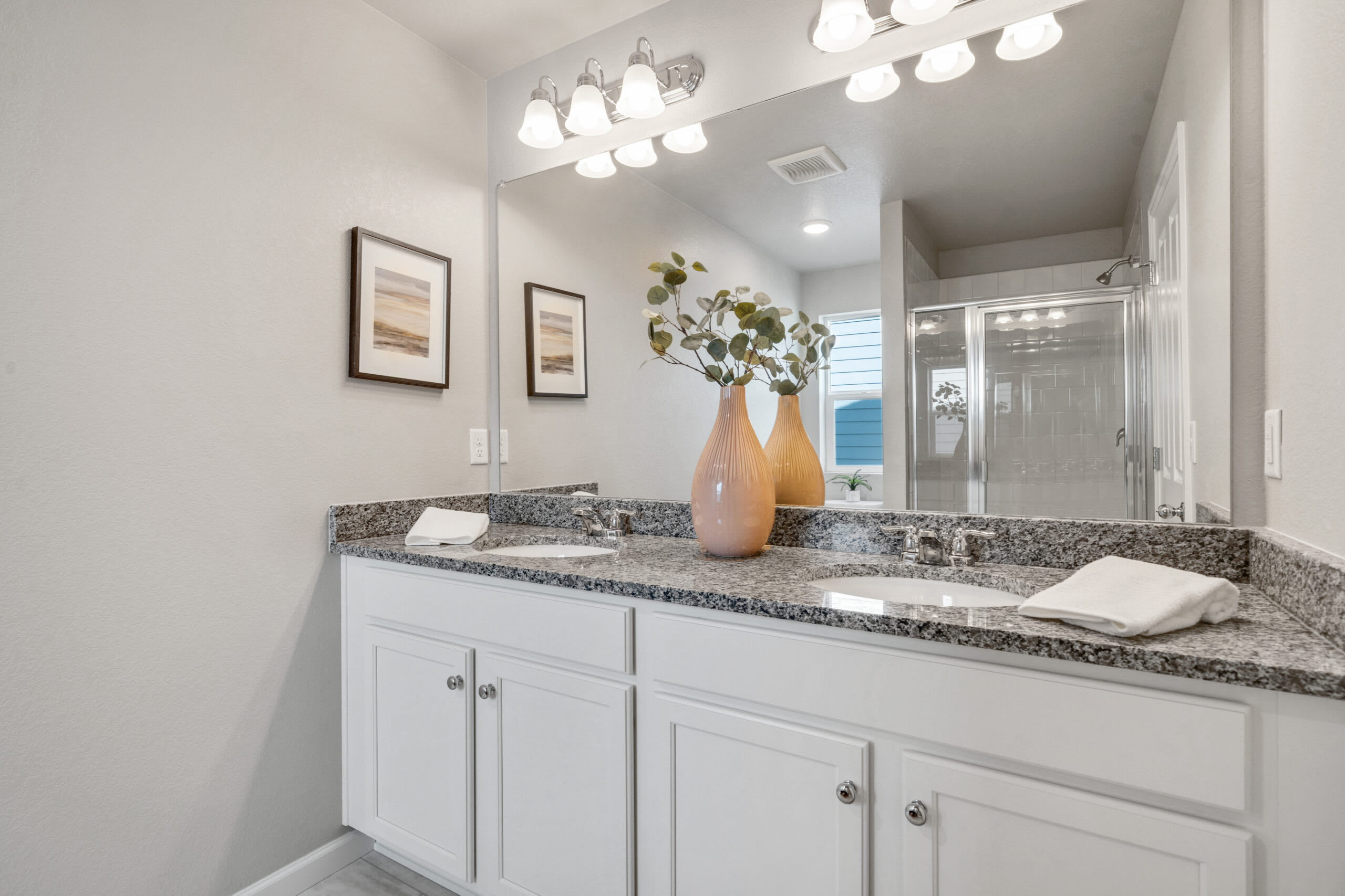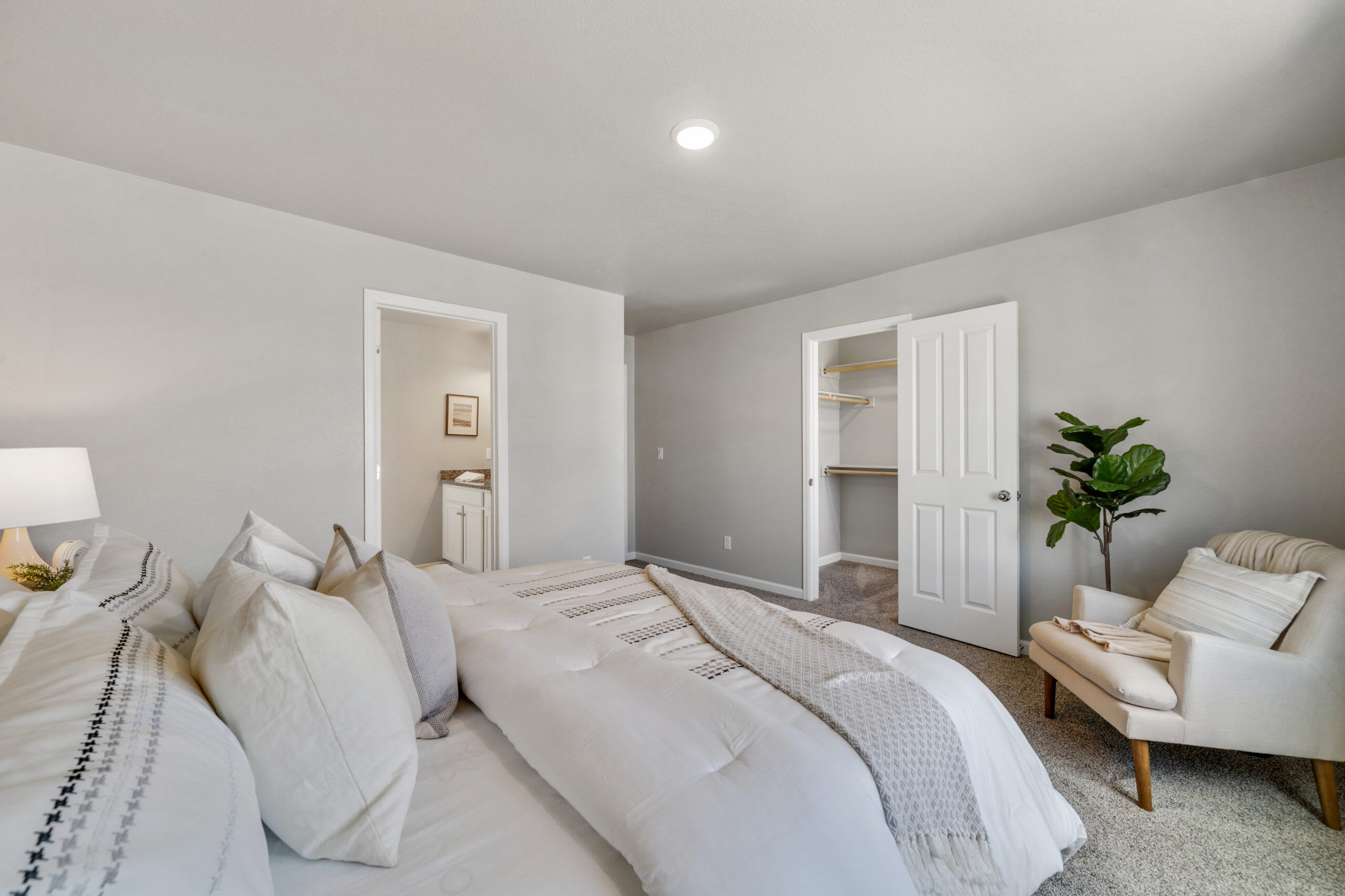 As you head up the stairs to the upper level, you’re greeted with a spacious loft to use as any additional space your family needs. Get creative and turn this space into a home office, yoga studio, homework or play area for your kids, craft area, home theater, the ideas are endless. The primary bedroom is positioned at the front of the home with a walk-in closet and a private bathroom with a double vanity. At the other end of the upper-level hallway, you’ll find a laundry room, a second full bathroom, and the second and third bedroom.