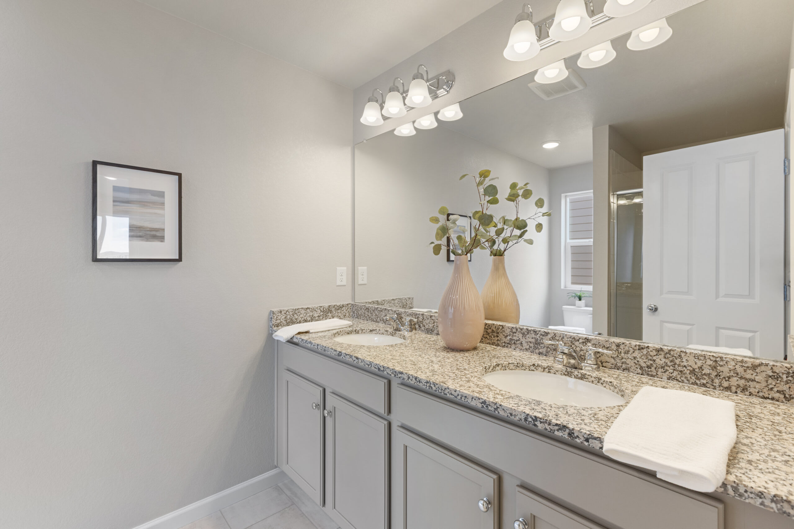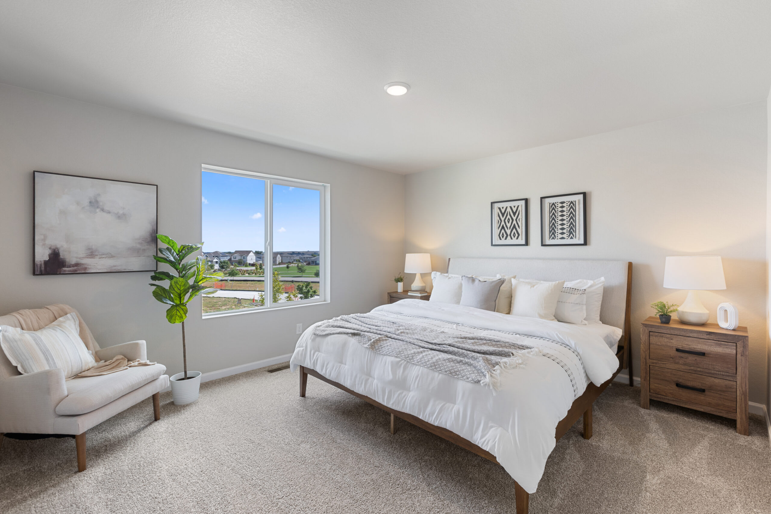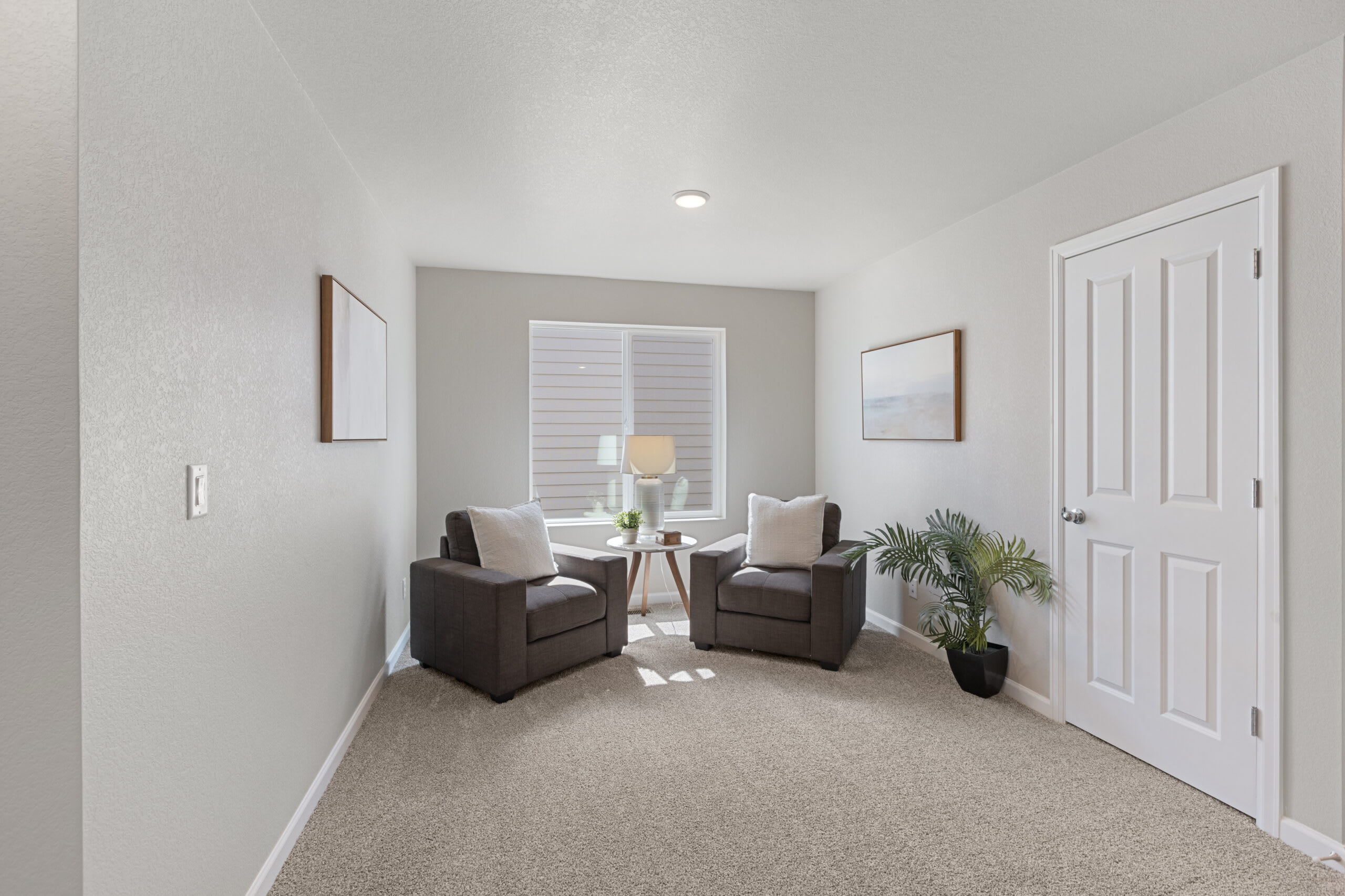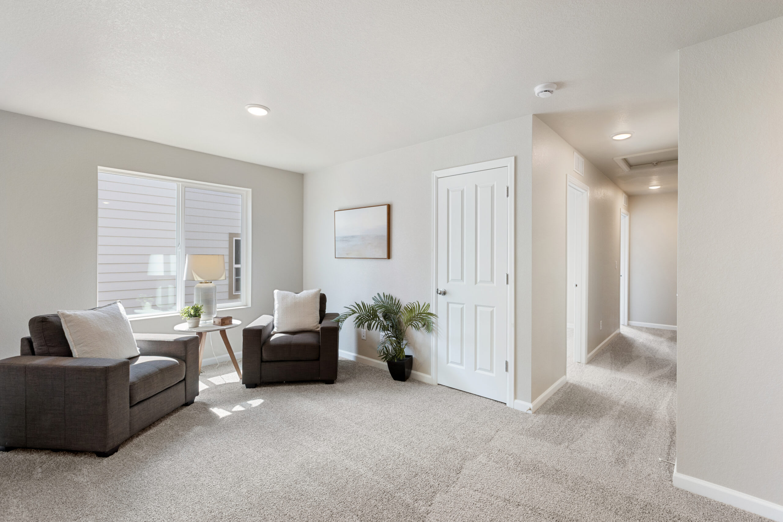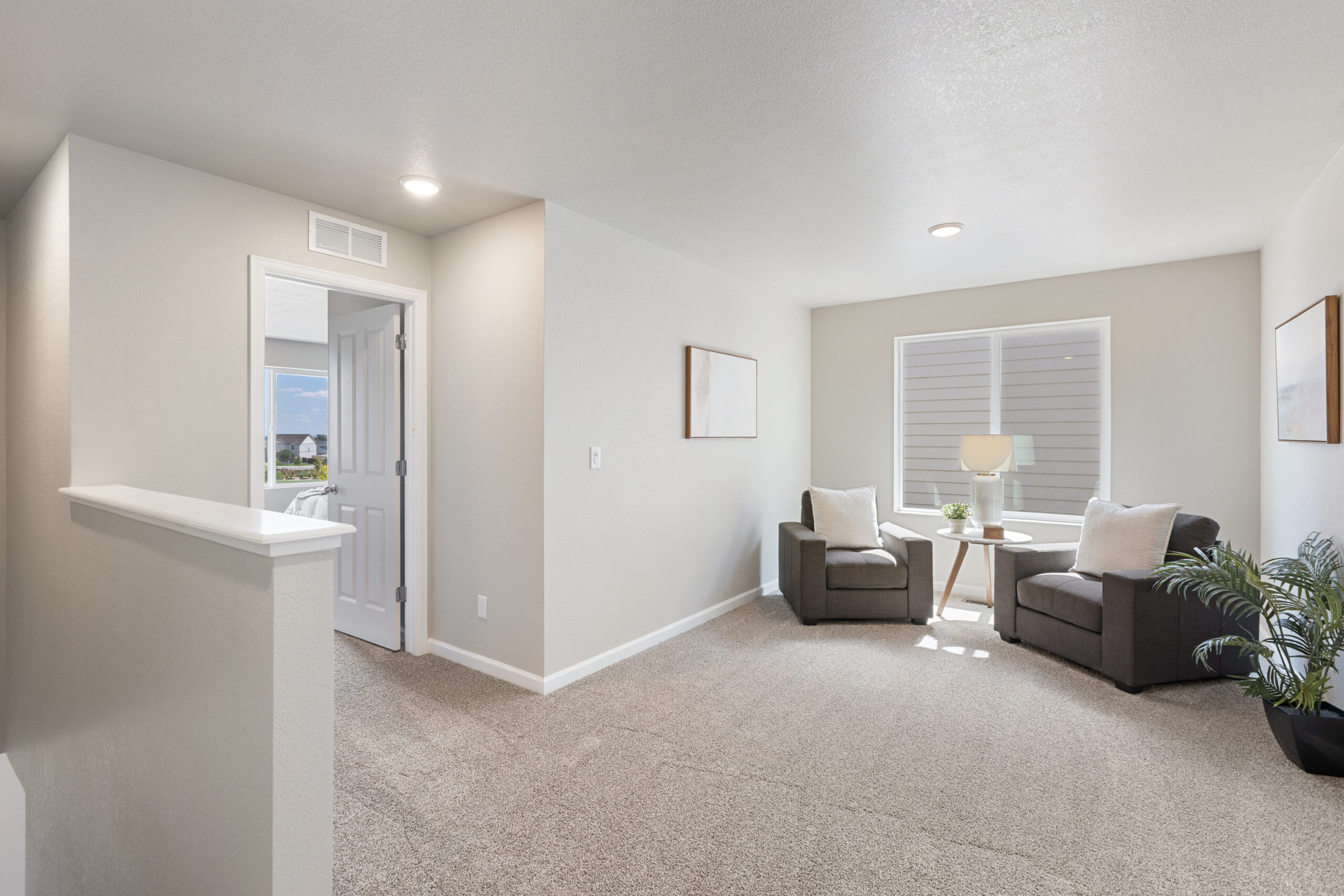 As you head up the stairs to the upper level, you’re greeted with a spacious loft to use as any additional space your family needs. Get creative and turn this space into a home office, yoga studio, homework or play area for your kids, craft area, home theater, the ideas are endless. The primary bedroom is positioned at the front of the home with a walk-in closet and a private bathroom with a double vanity. At the other end of the upper-level hallway, you’ll find a laundry room, a second full bathroom, and the second and third bedroom.