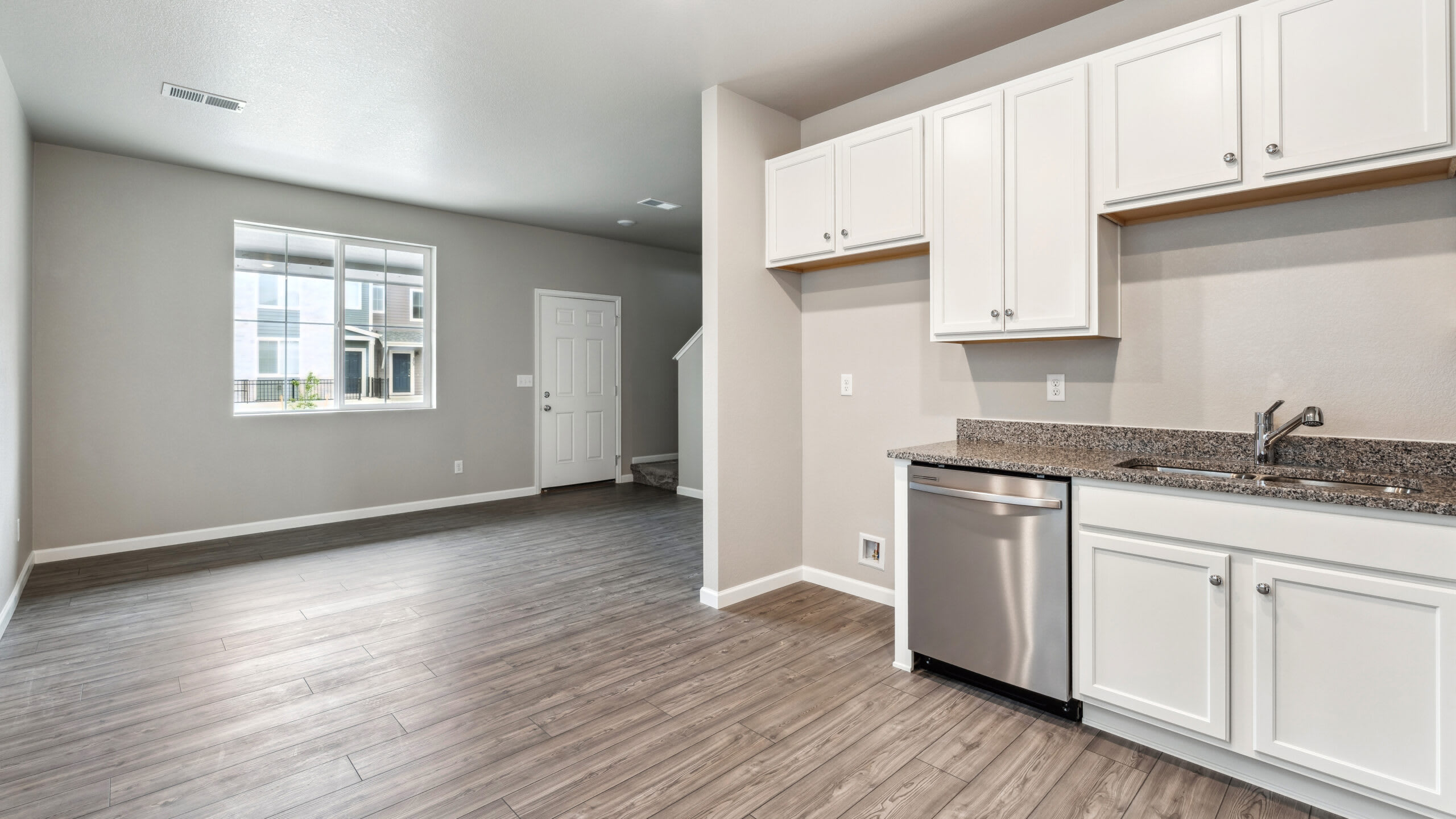 This home is move-in ready! Welcome to the Denali plan! This two-story paired home offers 1,159 square footage of living space, 2 bedrooms, 2.5 bathrooms, a 2-car garage, and a crawl space for extra storage. The front of the home faces a courtyard with grass areas to play with your dog, park benches to sit and soak up the sun, or a grass area for little ones to run around.