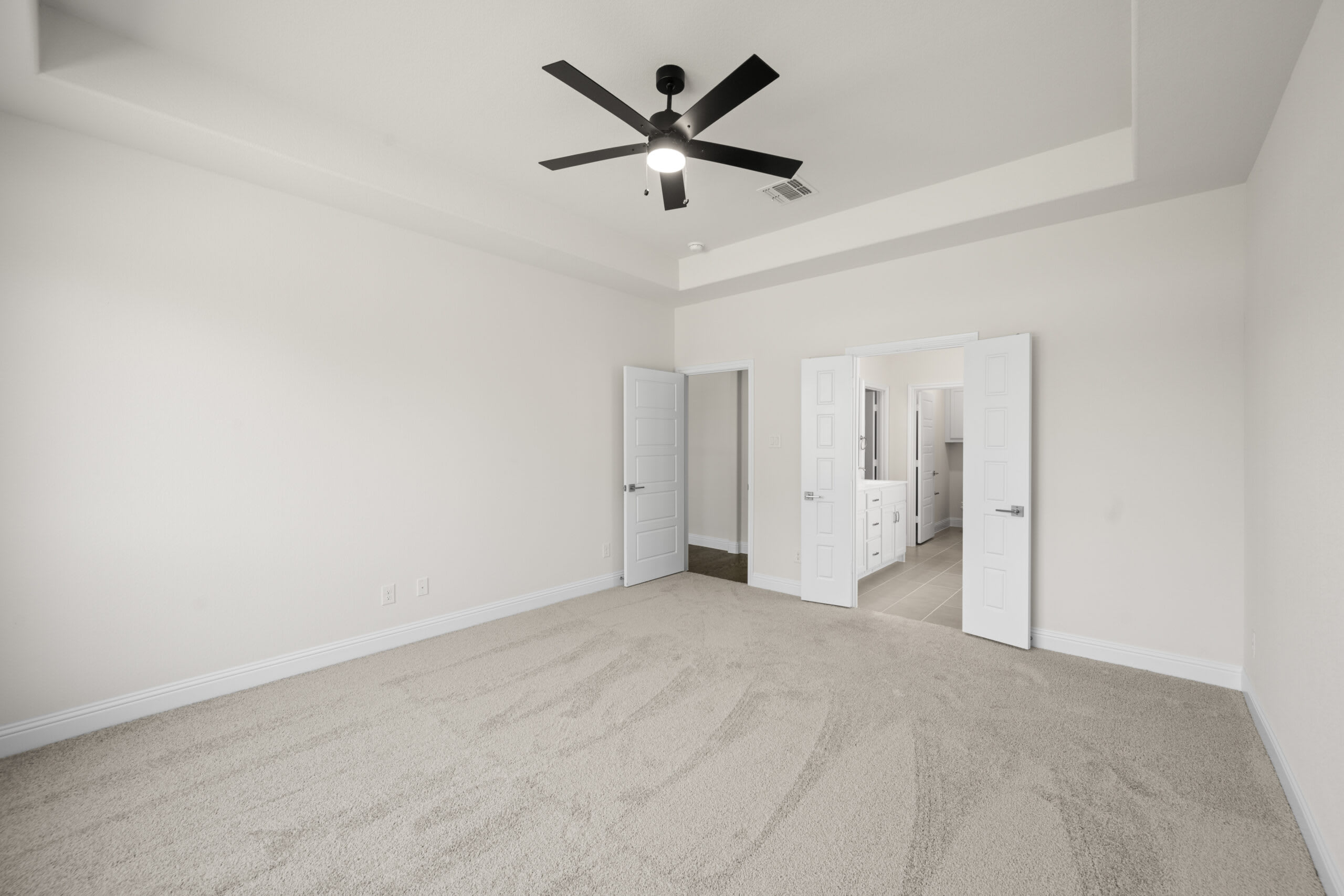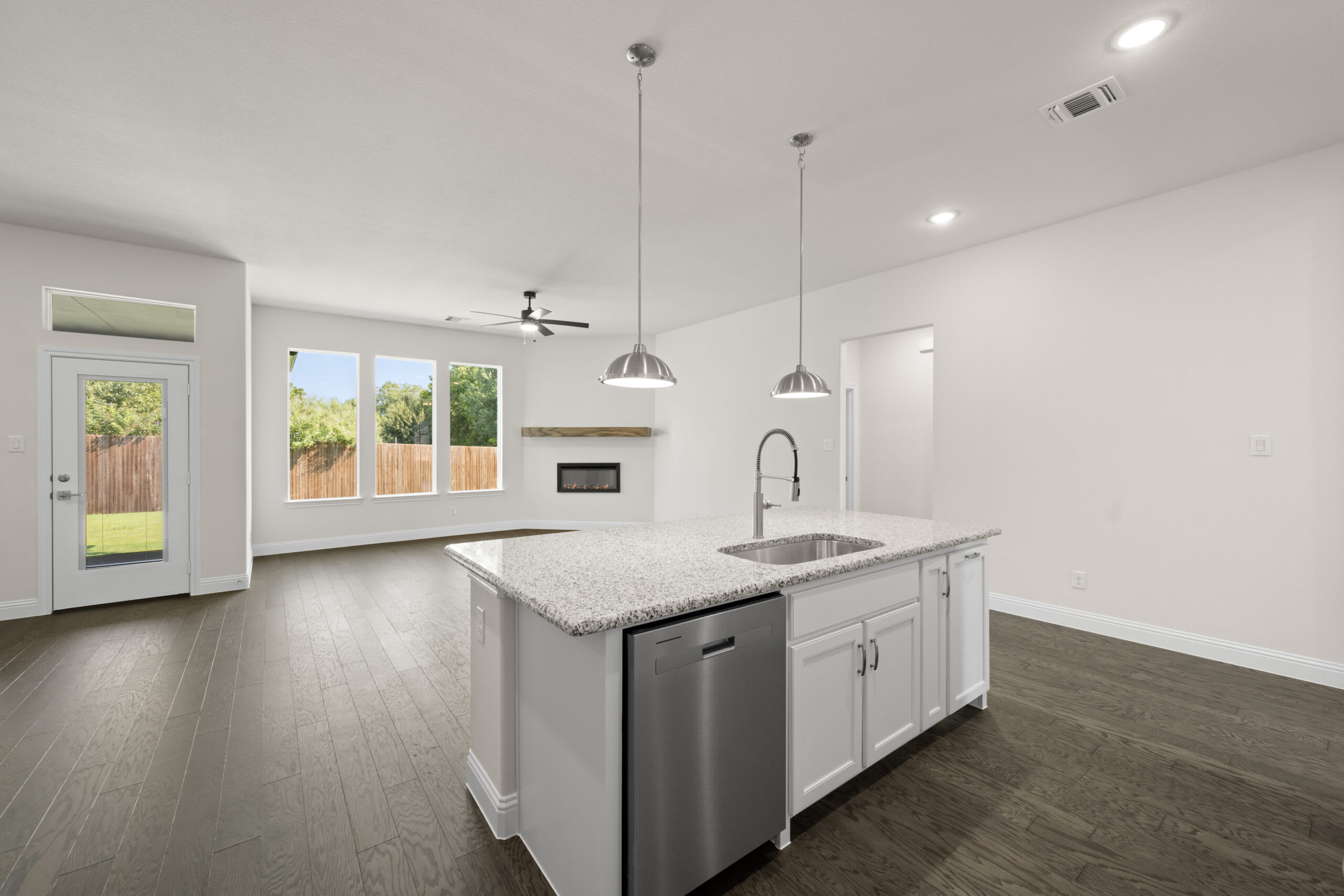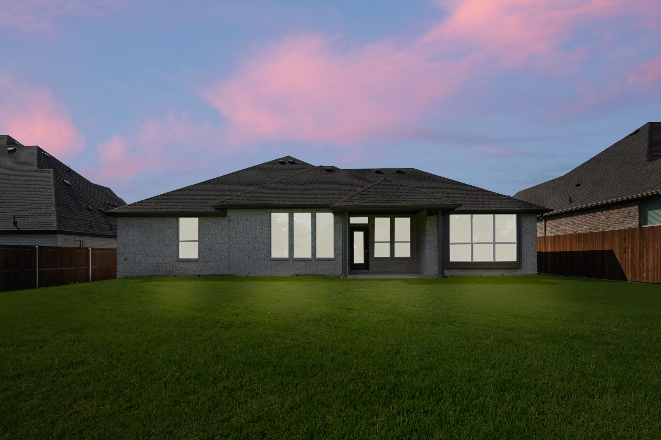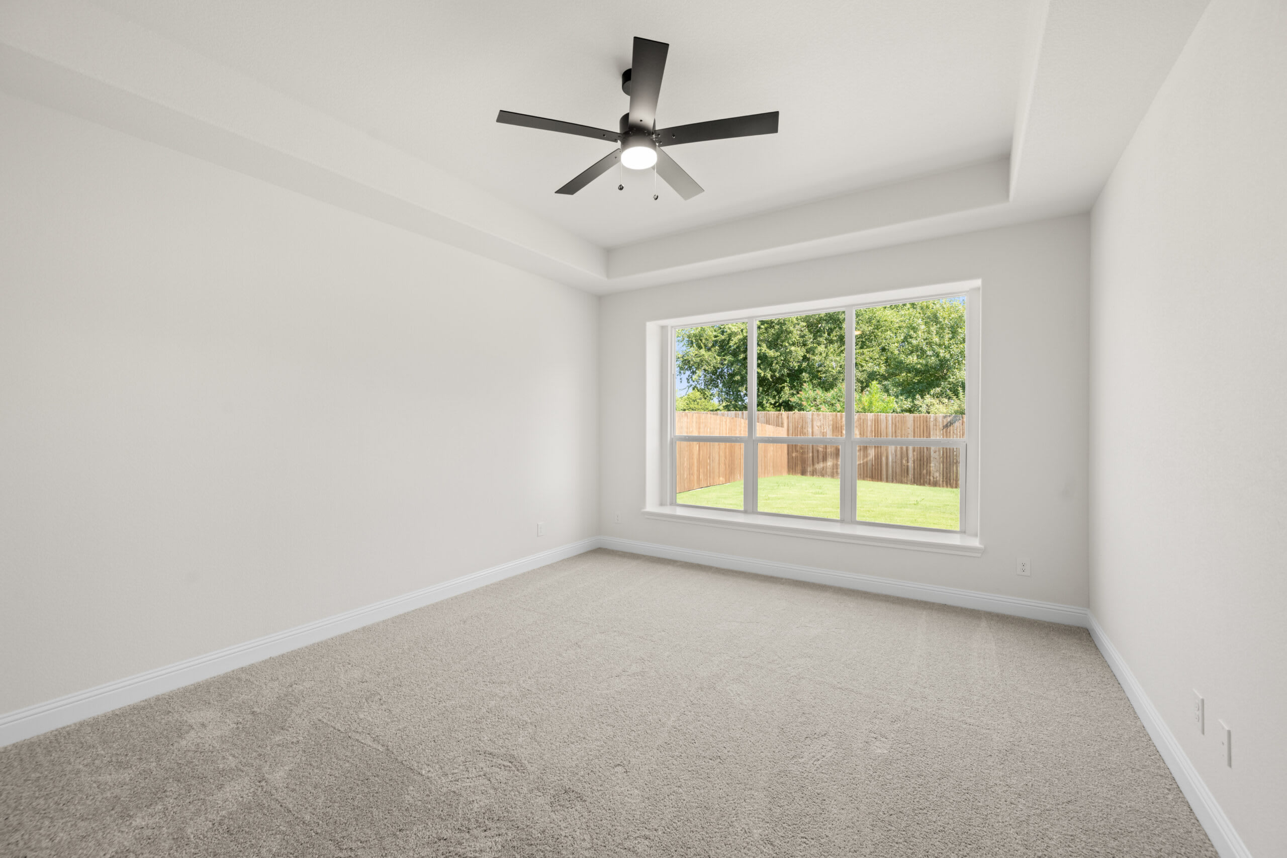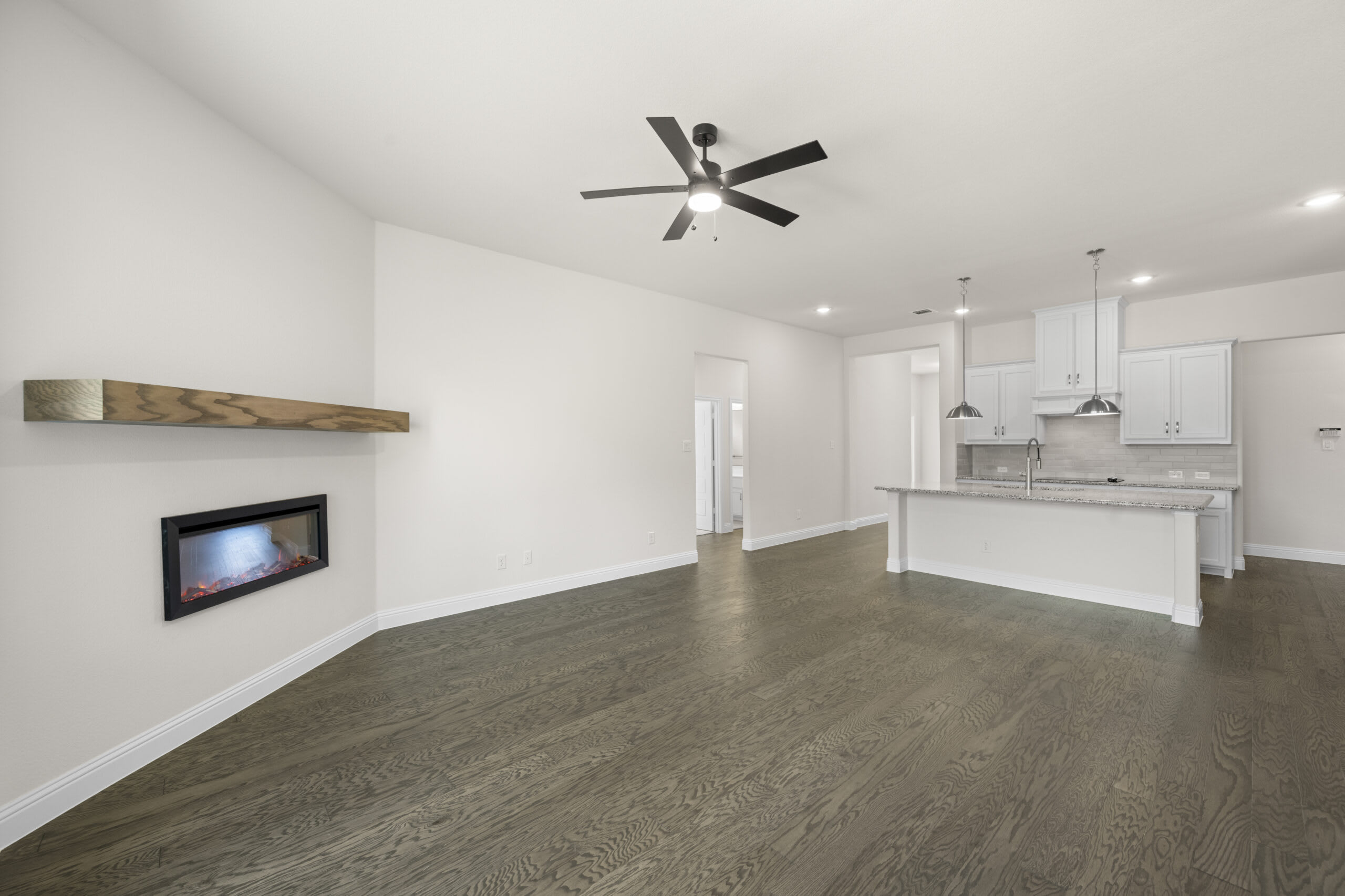This stunning one-story home features 4 spacious bedrooms, 2 full bathrooms, a private study, and a 2-car garage, all thoughtfully arranged to accommodate both comfort and practicality. At the heart of the home is a bright and open kitchen with a large island, walk-in pantry, and seamless flow into the dining nook and expansive family room, where you’ll find an elegant electric fireplace—perfect for cozy evenings. The private primary suite offers a luxurious retreat with a soaking tub, separate shower, dual vanities, and a large walk-in closet. Three secondary bedrooms are tucked away on the opposite side of the home, each with convenient access to a full bath. A dedicated study at the front of the home is ideal for remote work or quiet reading. The utility room is located just off the garage entrance for added functionality. Step outside to enjoy the covered patio, providing the perfect space for outdoor relaxation and entertaining.