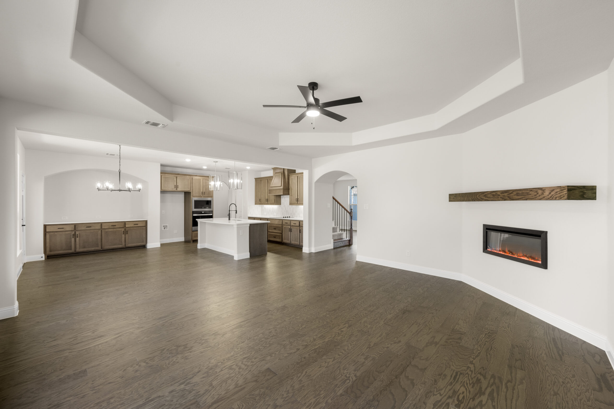 This thoughtfully designed, two-story home blends open-concept living with smart separation of space, making it perfect for everyday comfort and entertaining. The first floor centers around a bright and spacious family room featuring an electric fireplace, which brings a warm ambiance without the maintenance of a traditional hearth. The kitchen offers a large island, ample cabinetry, and flows effortlessly into the nook and family room, ideal for hosting or relaxing. The primary suite is tucked at the back for privacy and includes a luxurious bath with separate sinks, soaking tub, separate shower, and walk-in closet. A private study at the front of the home offers a quiet workspace, while a dining room creates a space for gathering with loved ones. Upstairs, the layout opens to a large game room, flanked by three additional bedrooms and a full bath. With plenty of room to spread out and stylish finishes throughout, this home is designed to fit your lifestyle with ease and elegance.