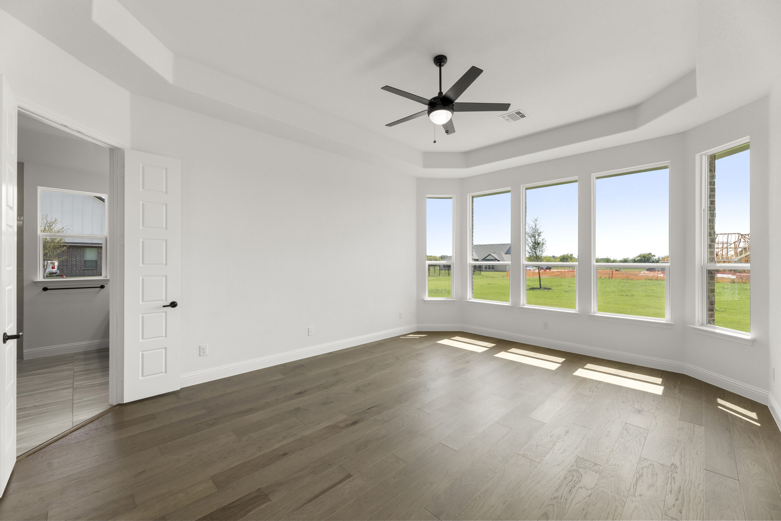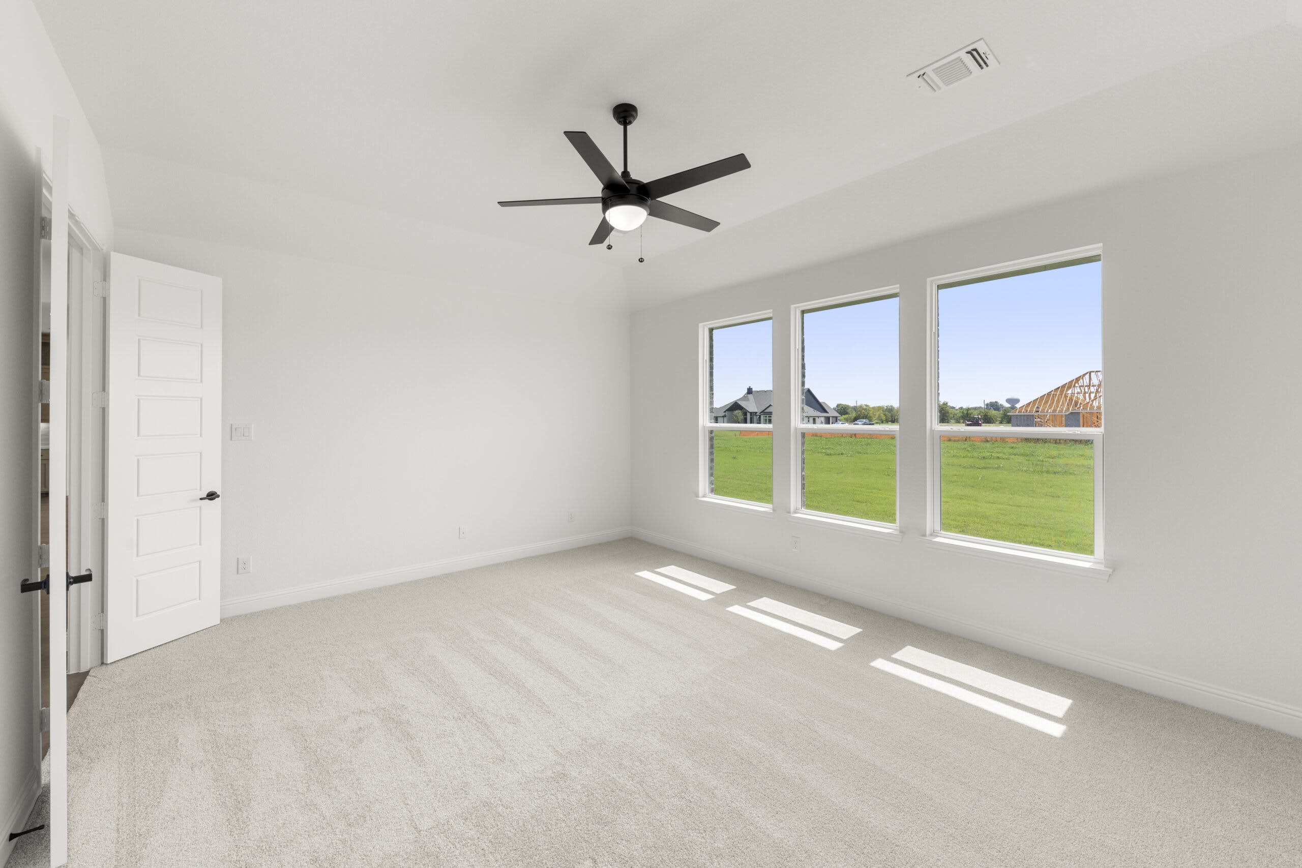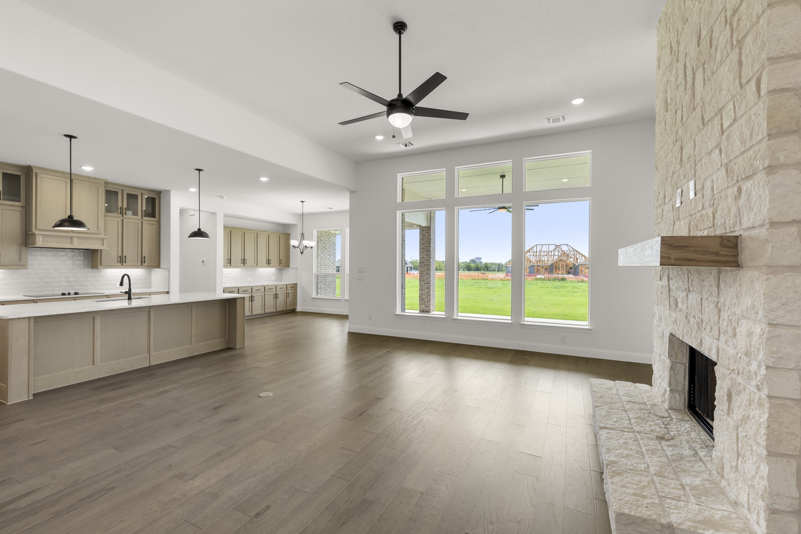 This spacious home features an open-concept layout with four bedrooms, three bathrooms, and a dedicated study. The heart of the home is the expansive family room, highlighted by a stunning floor-to-ceiling stone fireplace that serves as a beautiful focal point. The kitchen boasts a large island, ample cabinetry, and a walk-in pantry, seamlessly connecting to the nook and family room for easy entertaining. The primary suite offers a private retreat with a luxurious en-suite bath and a sizable walk-in closet. Additional bedrooms are well-spaced throughout the home all sharing a full bath in their own wing. A flex room provides extra versatility, perfect for a playroom, media room, or home gym. Outdoor living is enhanced with a covered patio, and the three-car garage offers plenty of storage space. With thoughtful design and high-end finishes, this home balances comfort, style, and functionality.