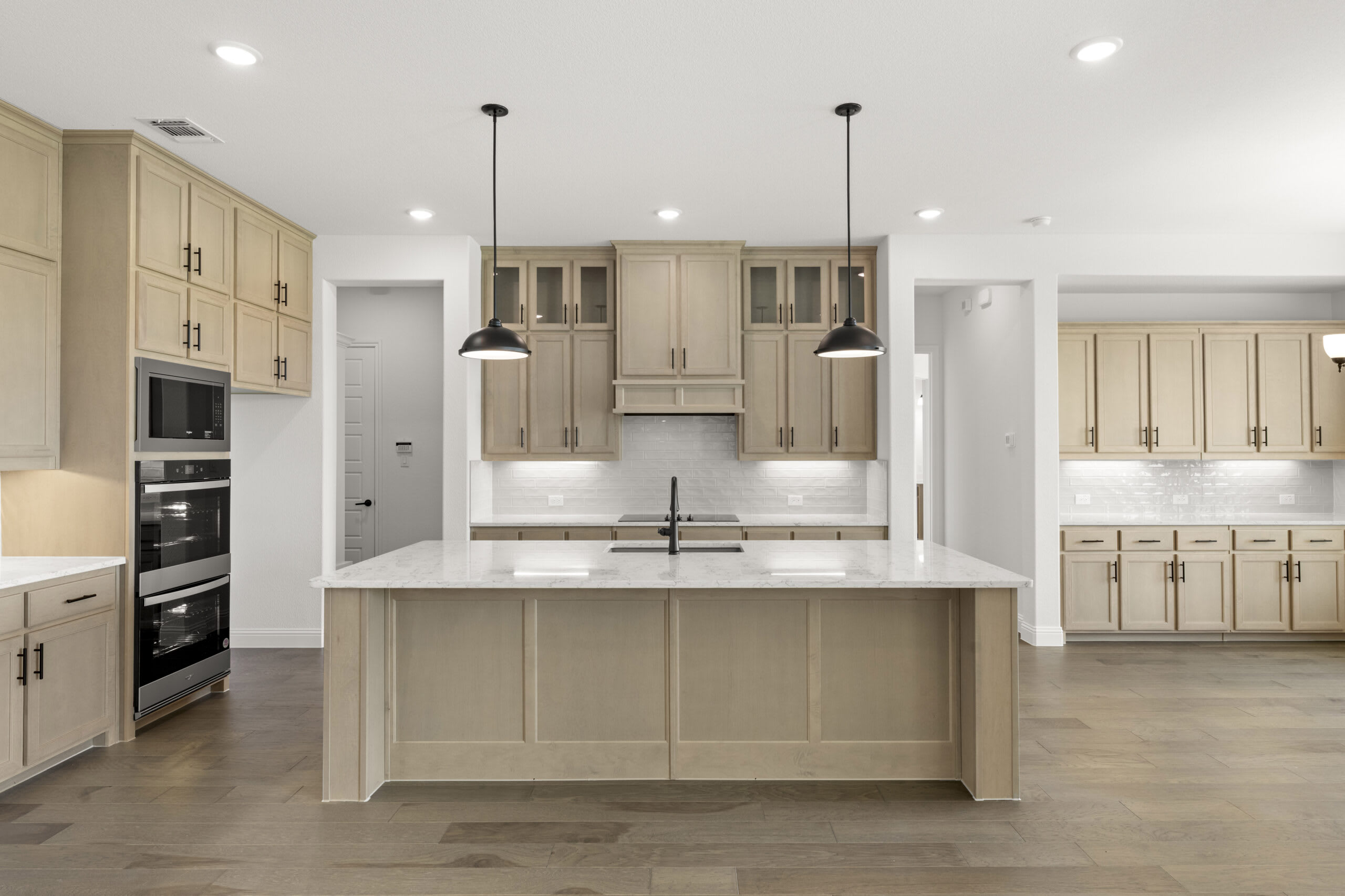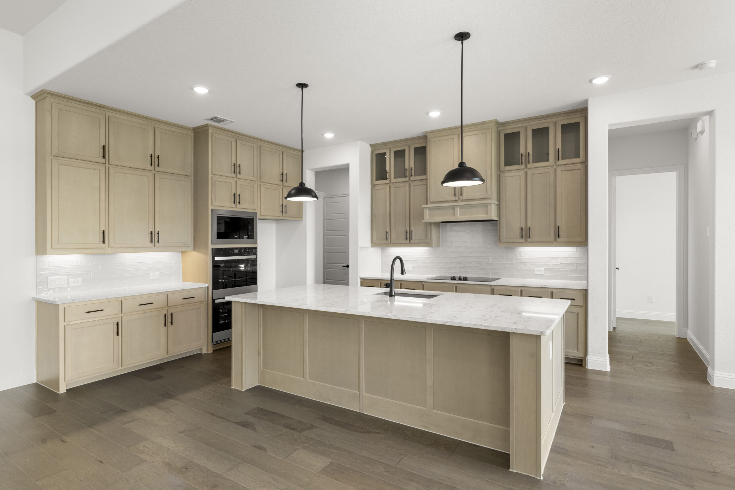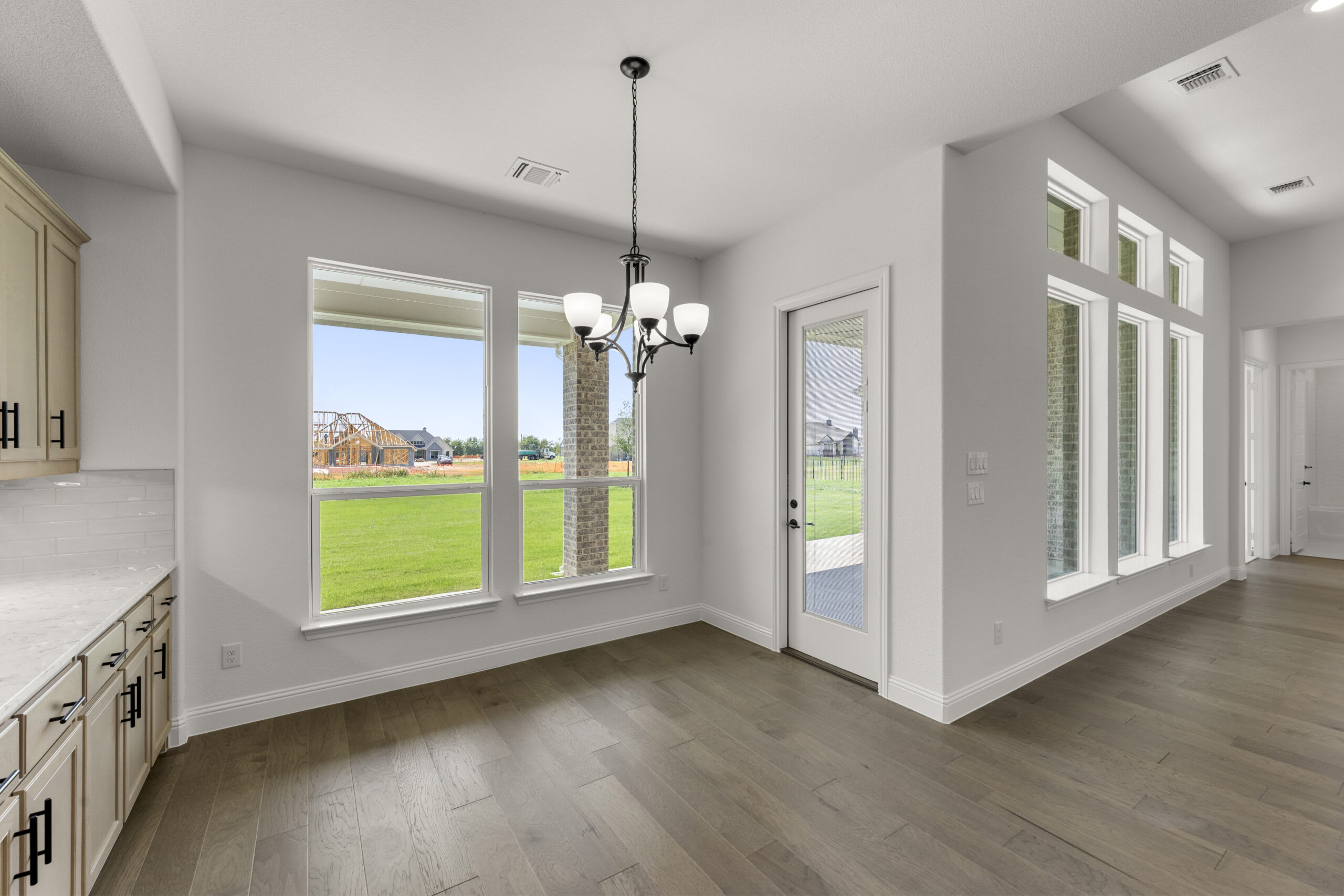 This spacious home features an open-concept layout with four bedrooms, three bathrooms, and a dedicated study. The heart of the home is the expansive family room, highlighted by a stunning floor-to-ceiling stone fireplace that serves as a beautiful focal point. The kitchen boasts a large island, ample cabinetry, and a walk-in pantry, seamlessly connecting to the nook and family room for easy entertaining. The primary suite offers a private retreat with a luxurious en-suite bath and a sizable walk-in closet. Additional bedrooms are well-spaced throughout the home all sharing a full bath in their own wing. A flex room provides extra versatility, perfect for a playroom, media room, or home gym. Outdoor living is enhanced with a covered patio, and the three-car garage offers plenty of storage space. With thoughtful design and high-end finishes, this home balances comfort, style, and functionality.