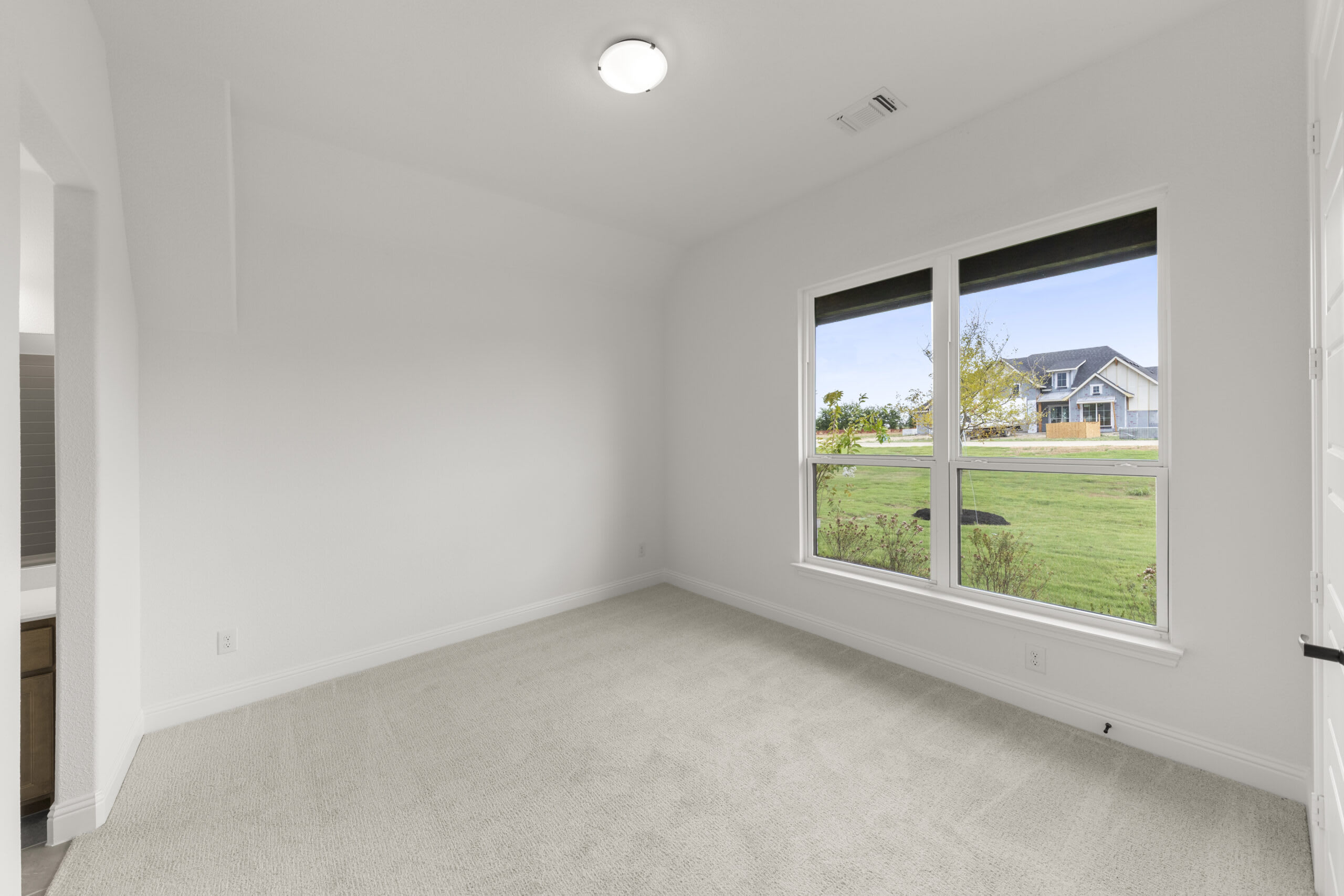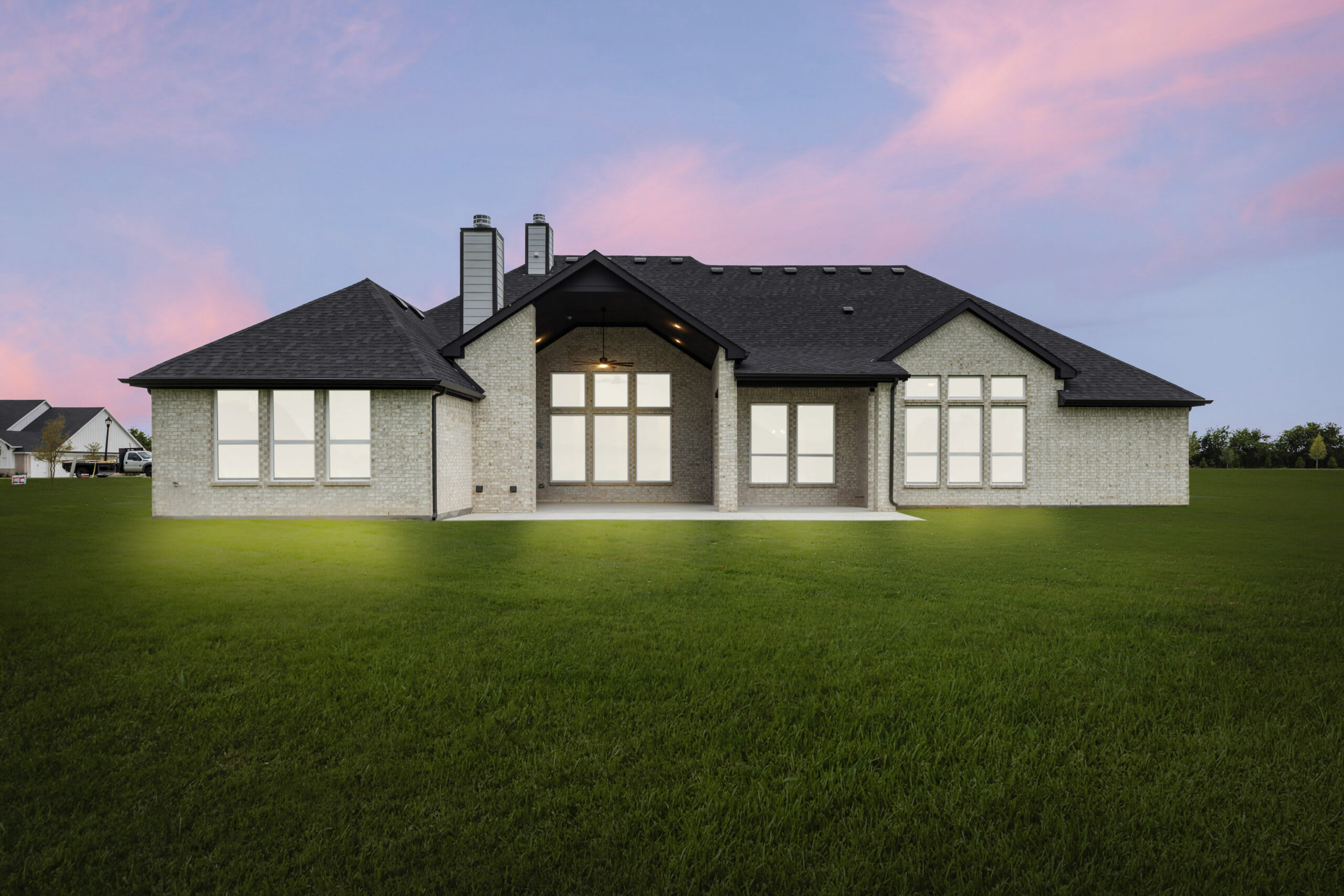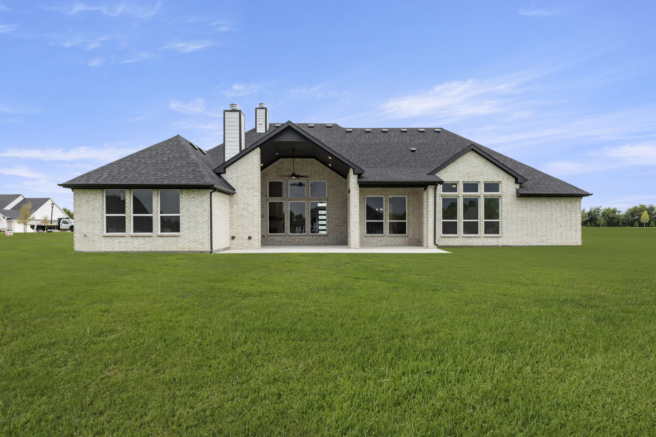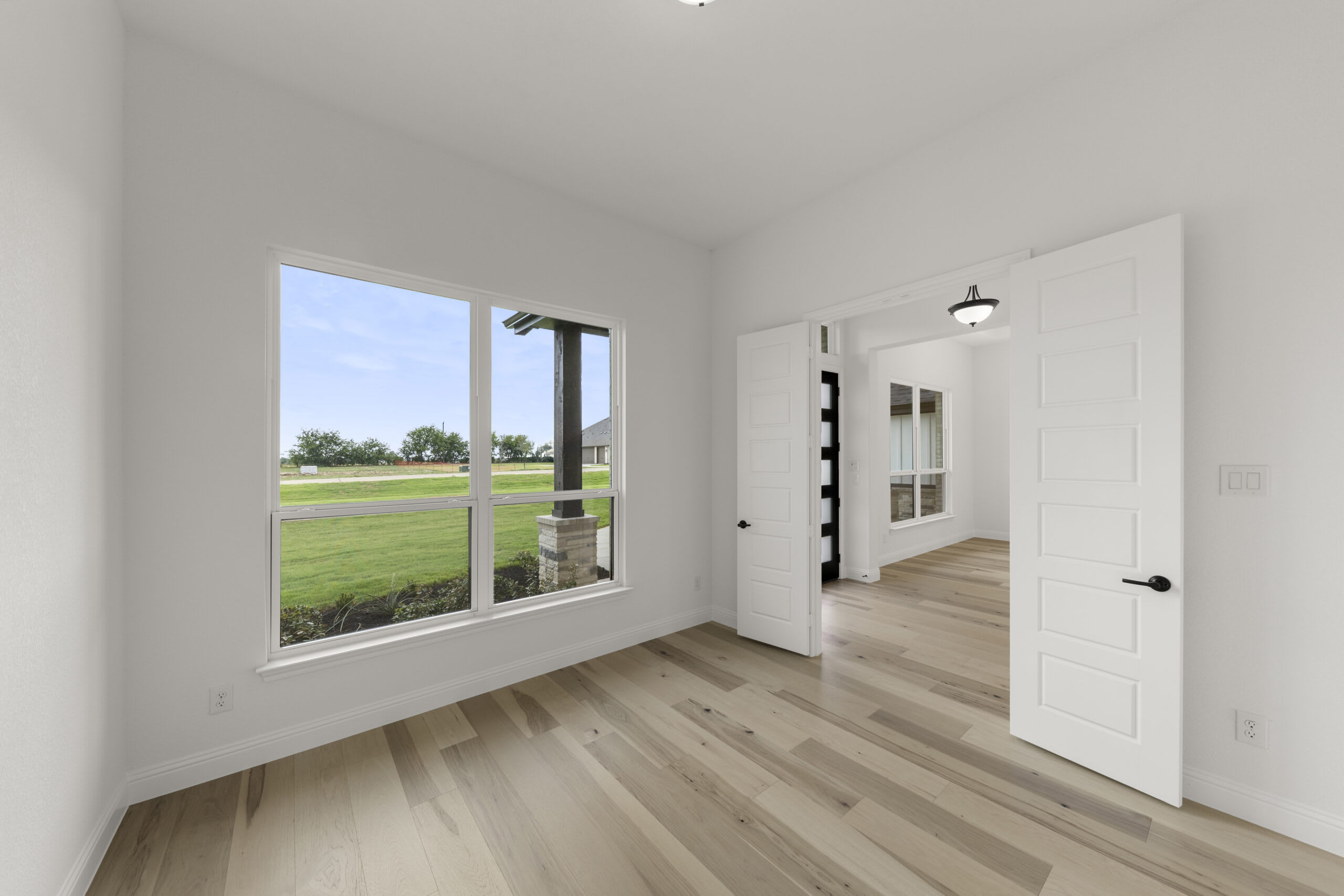 This spacious single-story home features a thoughtfully designed layout including 4 bedrooms, 3 bathrooms, a study, and multiple flexible living spaces. At the heart of the home, the open-concept kitchen includes a large island, walk-in pantry, butler’s pantry, and direct access to the dining room and family room. The adjoining nook and covered patio with fireplace provide excellent space for casual dining and entertaining. The family room is centrally located and filled with natural light, creating a welcoming gathering space. The primary suite is privately situated with a luxurious bath, soaking tub, separate shower, dual vanities, and a large walk-in closet. Three secondary bedrooms each include walk-in closets and are paired with two full bathrooms for convenience. A flex room offers additional space that can be used as a playroom, media room, or home office. At the front of the home, a dedicated study and elegant dining room provide formal living options. The home also features a spacious utility room and a 3-car garage. This floor plan balances functionality and comfort with open gathering areas, private retreats, and ample storage throughout.