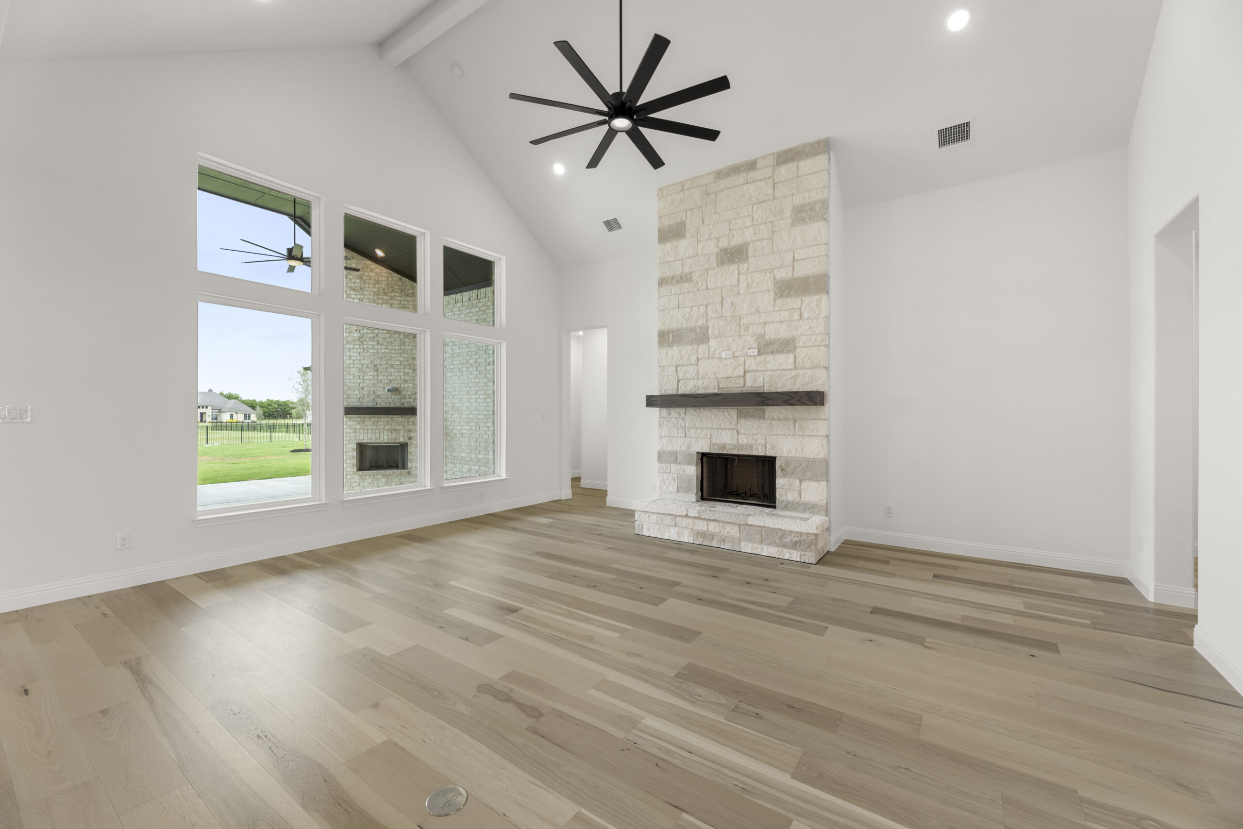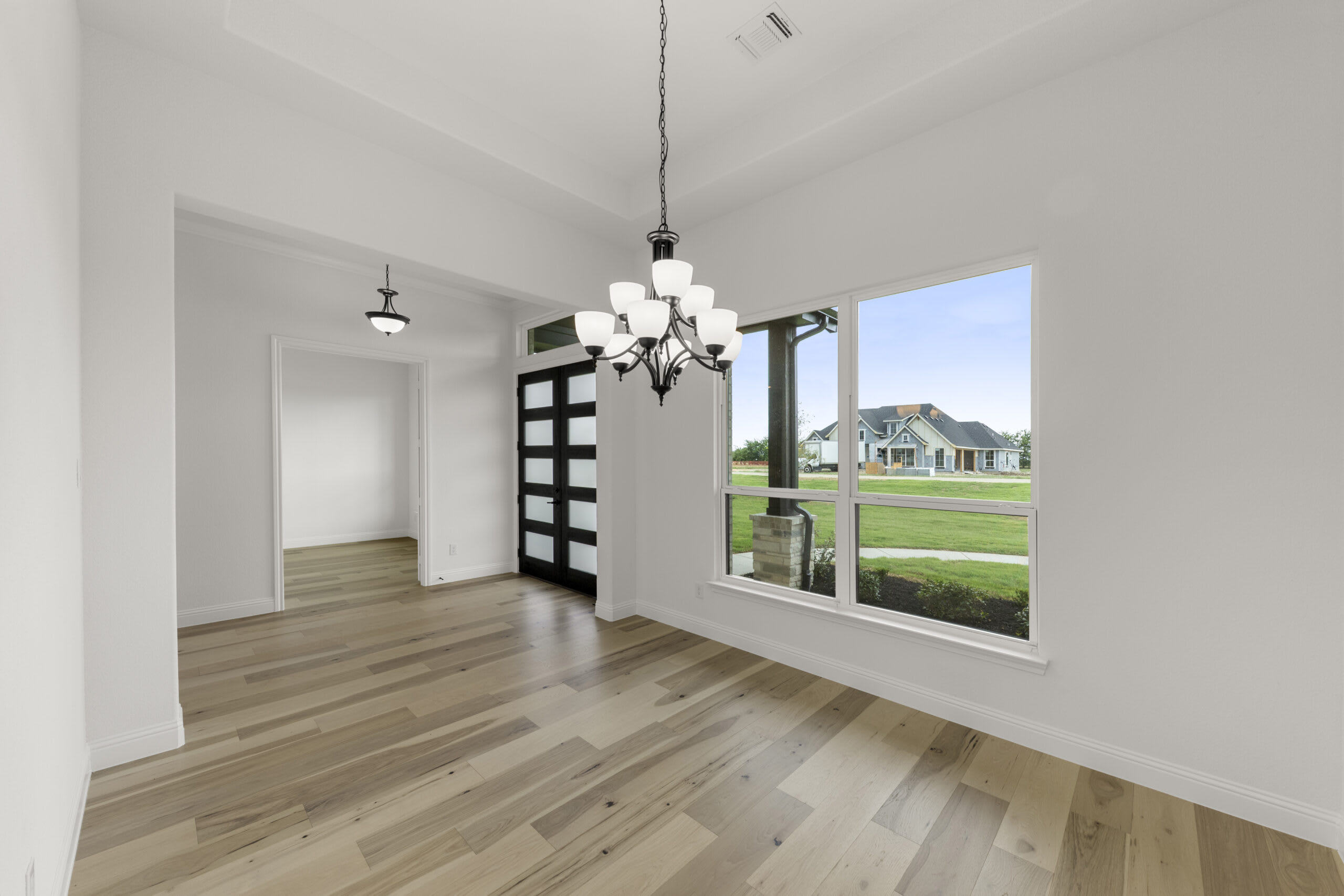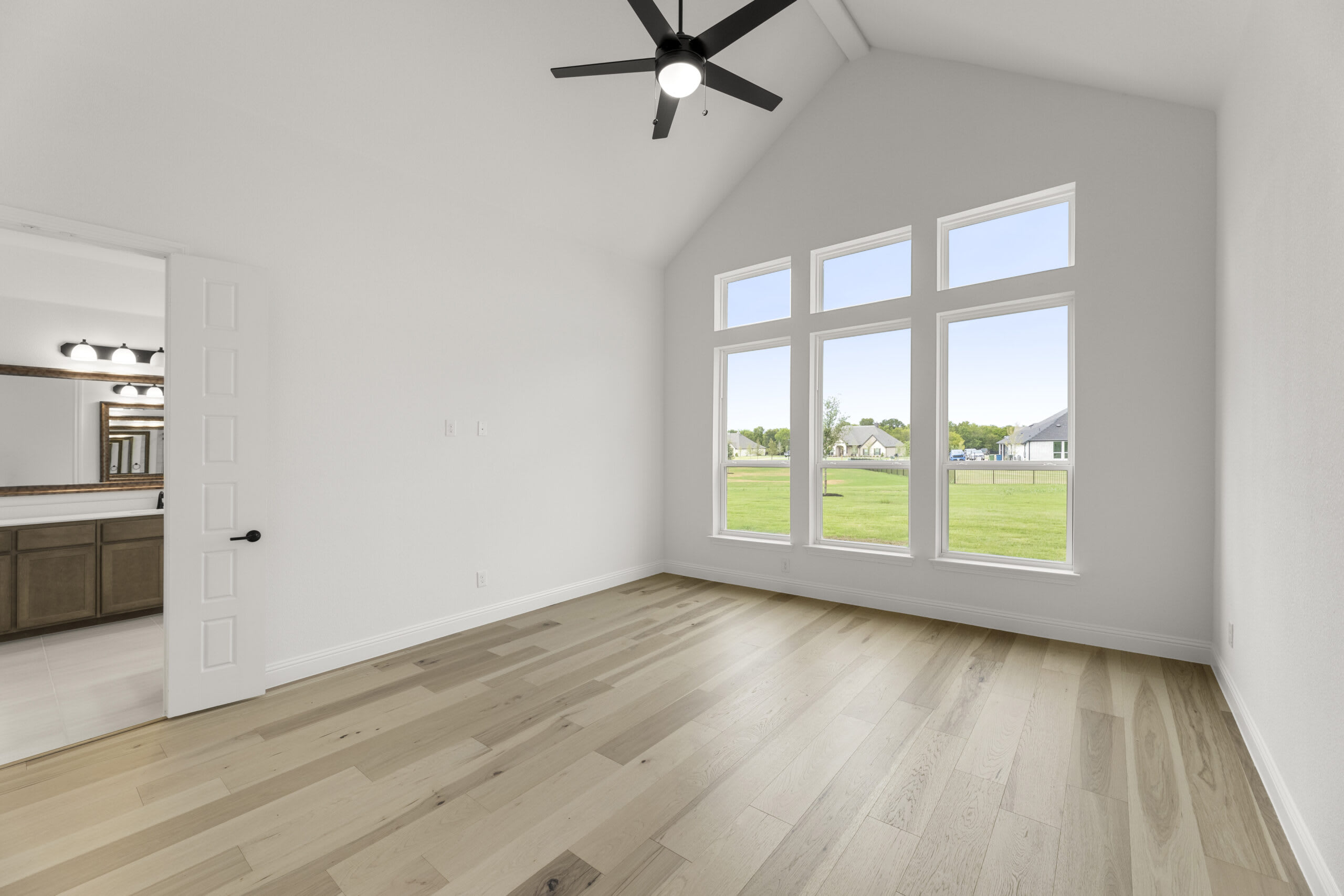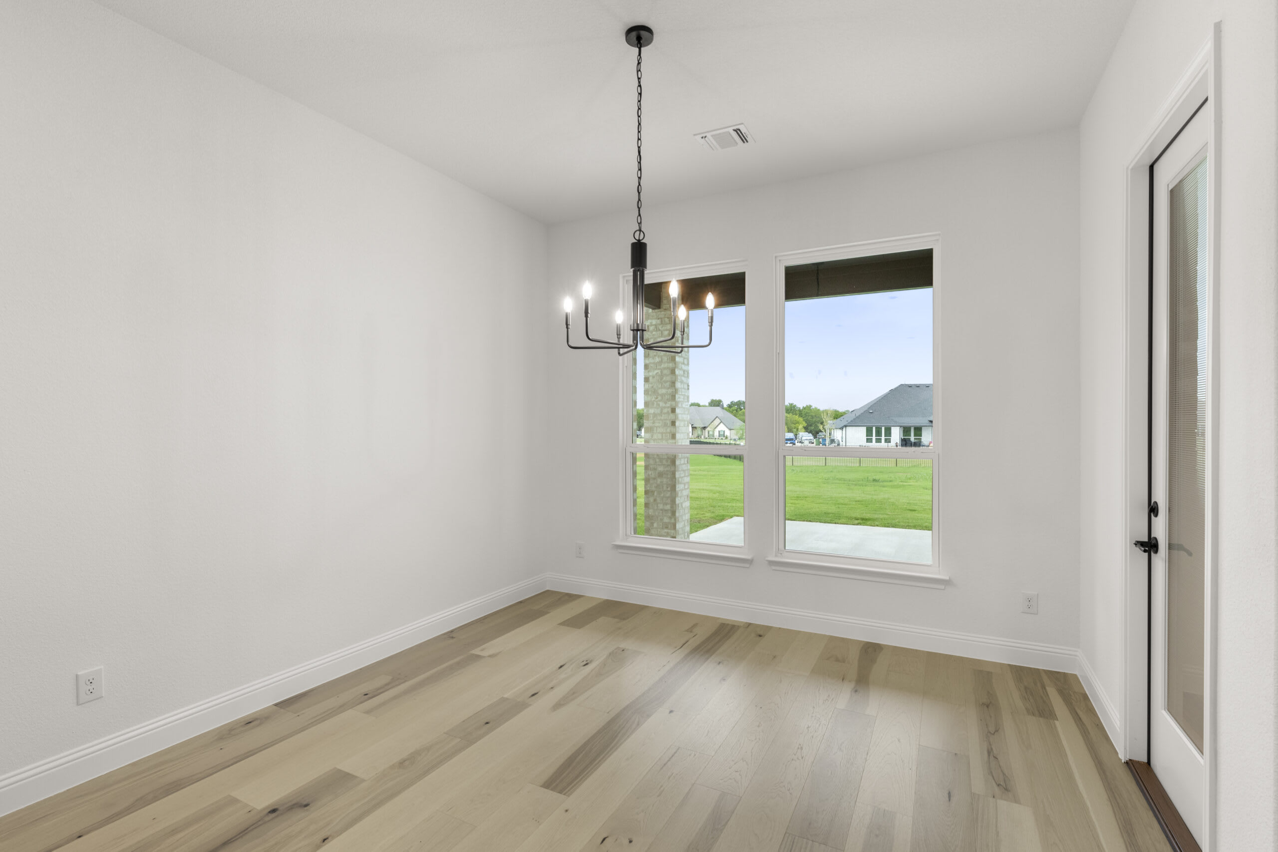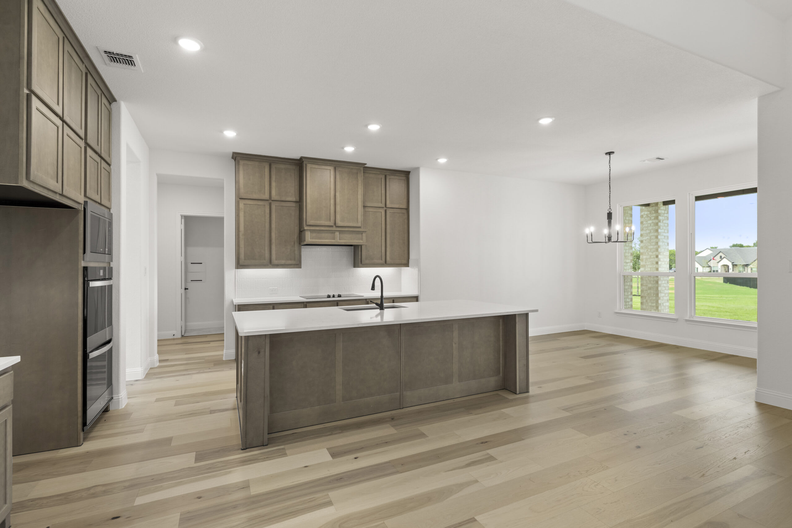 This spacious single-story home features a thoughtfully designed layout including 4 bedrooms, 3 bathrooms, a study, and multiple flexible living spaces. At the heart of the home, the open-concept kitchen includes a large island, walk-in pantry, butler’s pantry, and direct access to the dining room and family room. The adjoining nook and covered patio with fireplace provide excellent space for casual dining and entertaining. The family room is centrally located and filled with natural light, creating a welcoming gathering space. The primary suite is privately situated with a luxurious bath, soaking tub, separate shower, dual vanities, and a large walk-in closet. Three secondary bedrooms each include walk-in closets and are paired with two full bathrooms for convenience. A flex room offers additional space that can be used as a playroom, media room, or home office. At the front of the home, a dedicated study and elegant dining room provide formal living options. The home also features a spacious utility room and a 3-car garage. This floor plan balances functionality and comfort with open gathering areas, private retreats, and ample storage throughout.