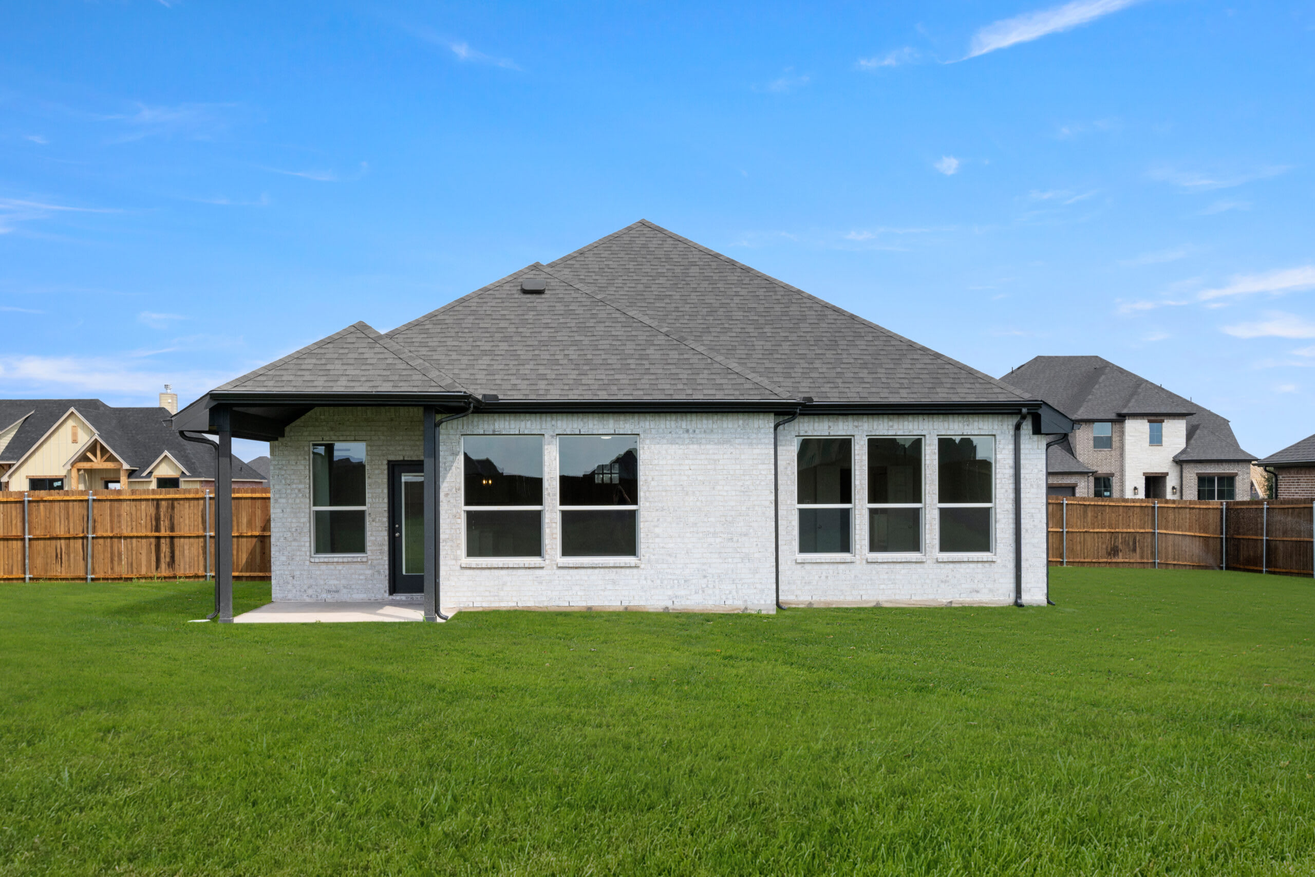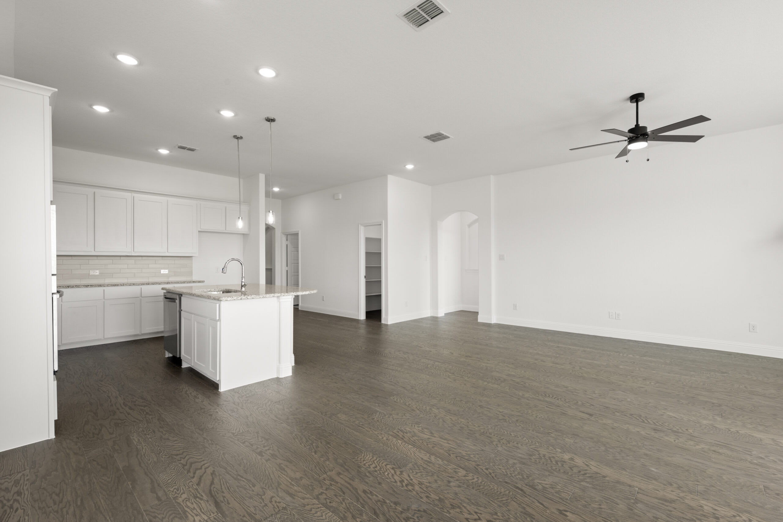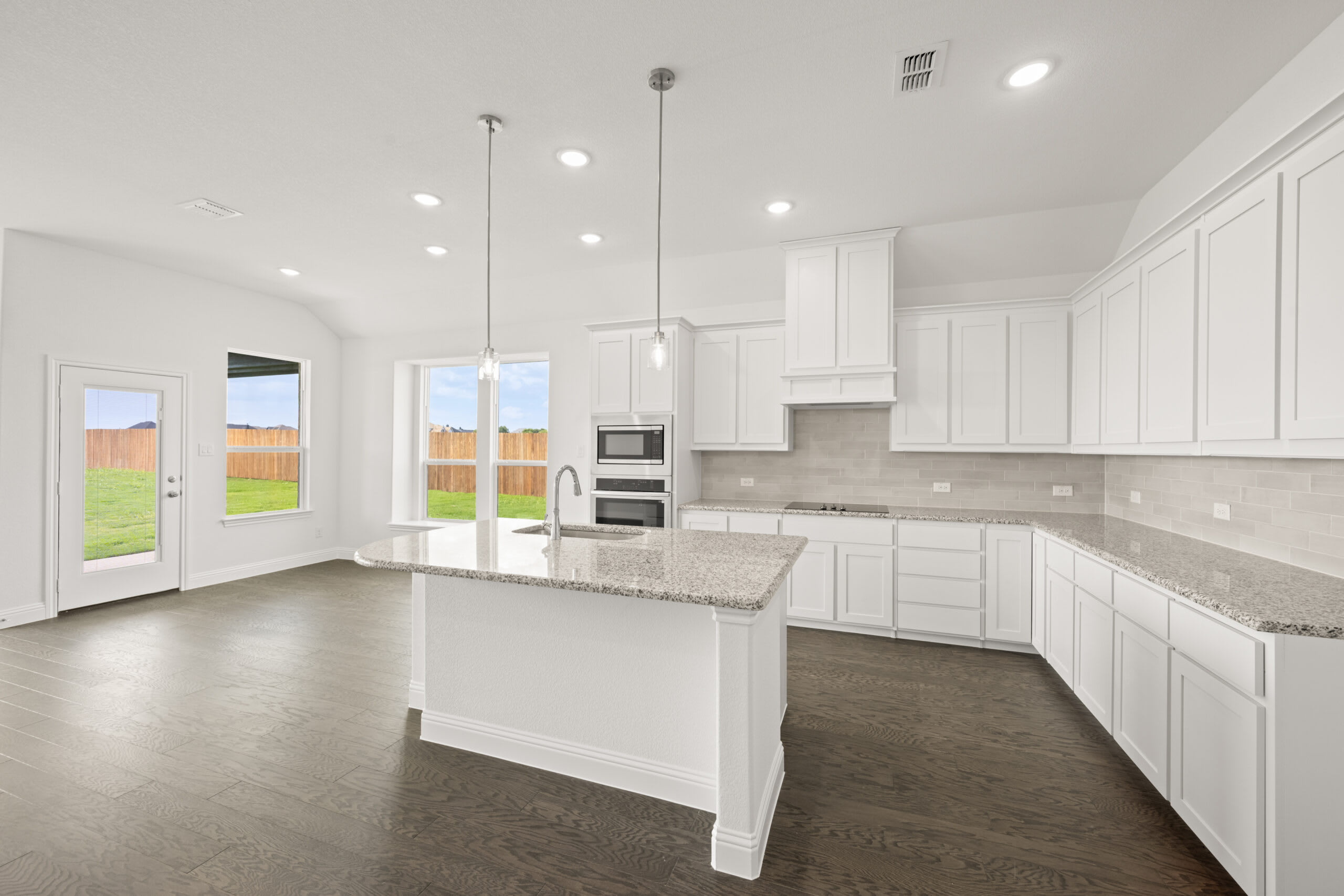 This smartly designed one-story home offers 3 bedrooms, 2 bathrooms, and an open layout that’s perfect for everyday living and entertaining. Step into a welcoming foyer that leads into the spacious family room, filled with natural light and seamlessly connected to the kitchen and nook. The kitchen features a large center island, walk-in pantry, and ample cabinetry—ideal for family meals or hosting friends. The private primary suite is tucked at the back of the home and includes a luxurious bathroom with dual sinks, a soaking tub, separate shower, and generous walk-in closet. Two secondary bedrooms are located at the front of the home, each with easy access to a full bath. Additional highlights include a full-sized utility room, a covered back patio, and a two-car garage.
