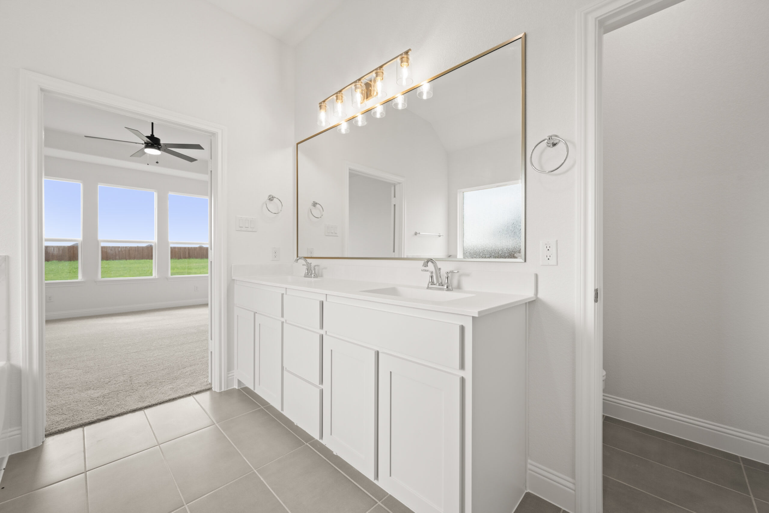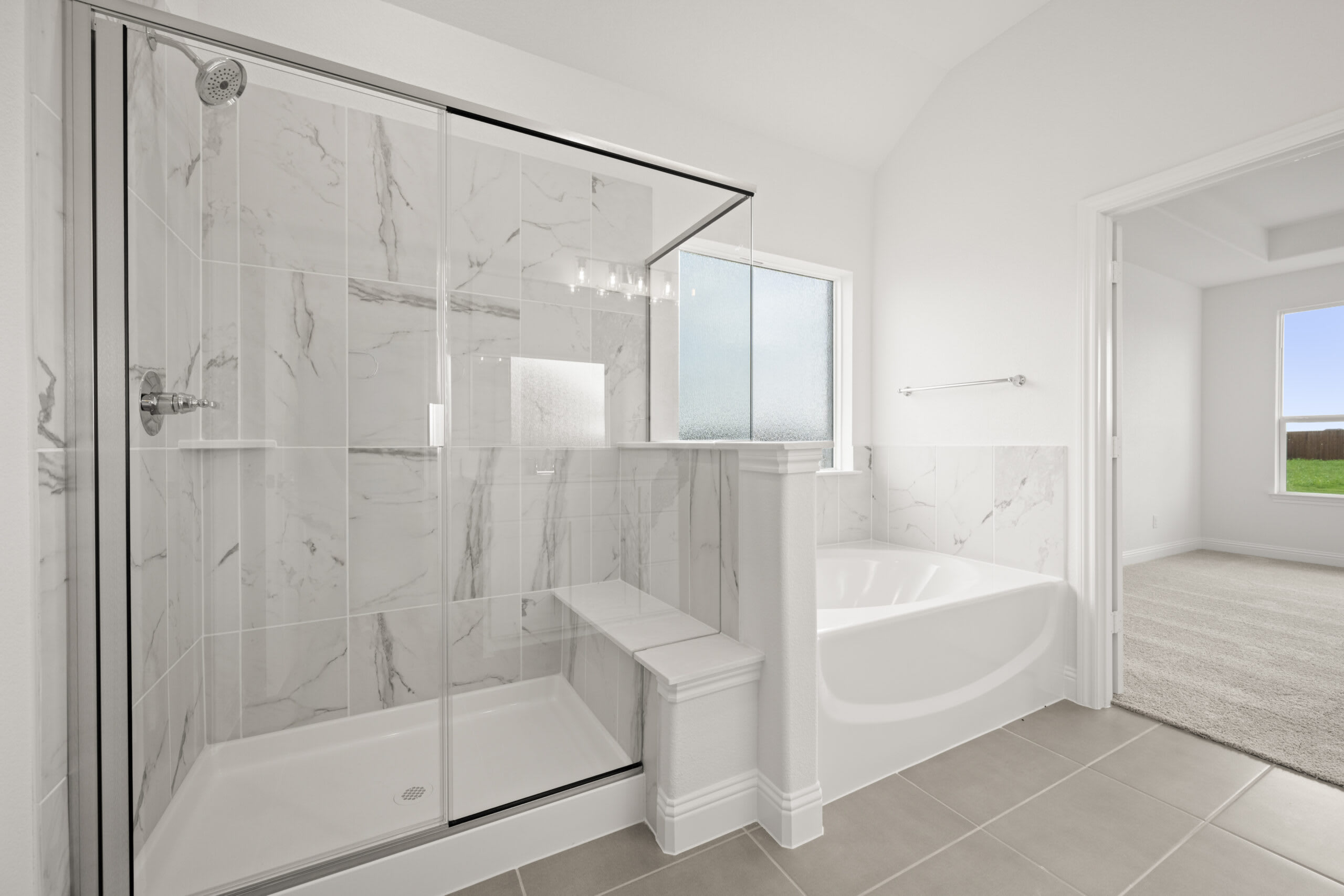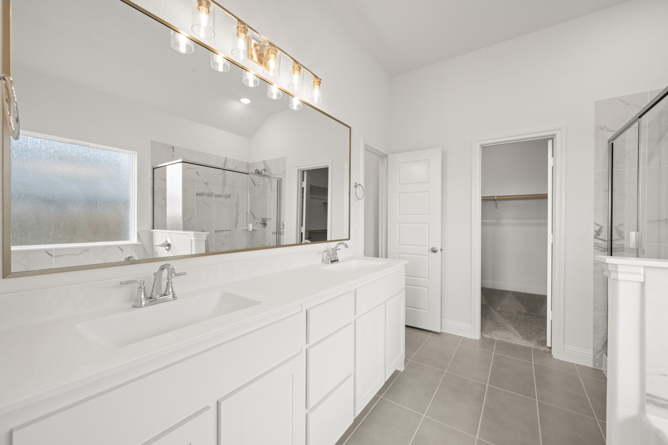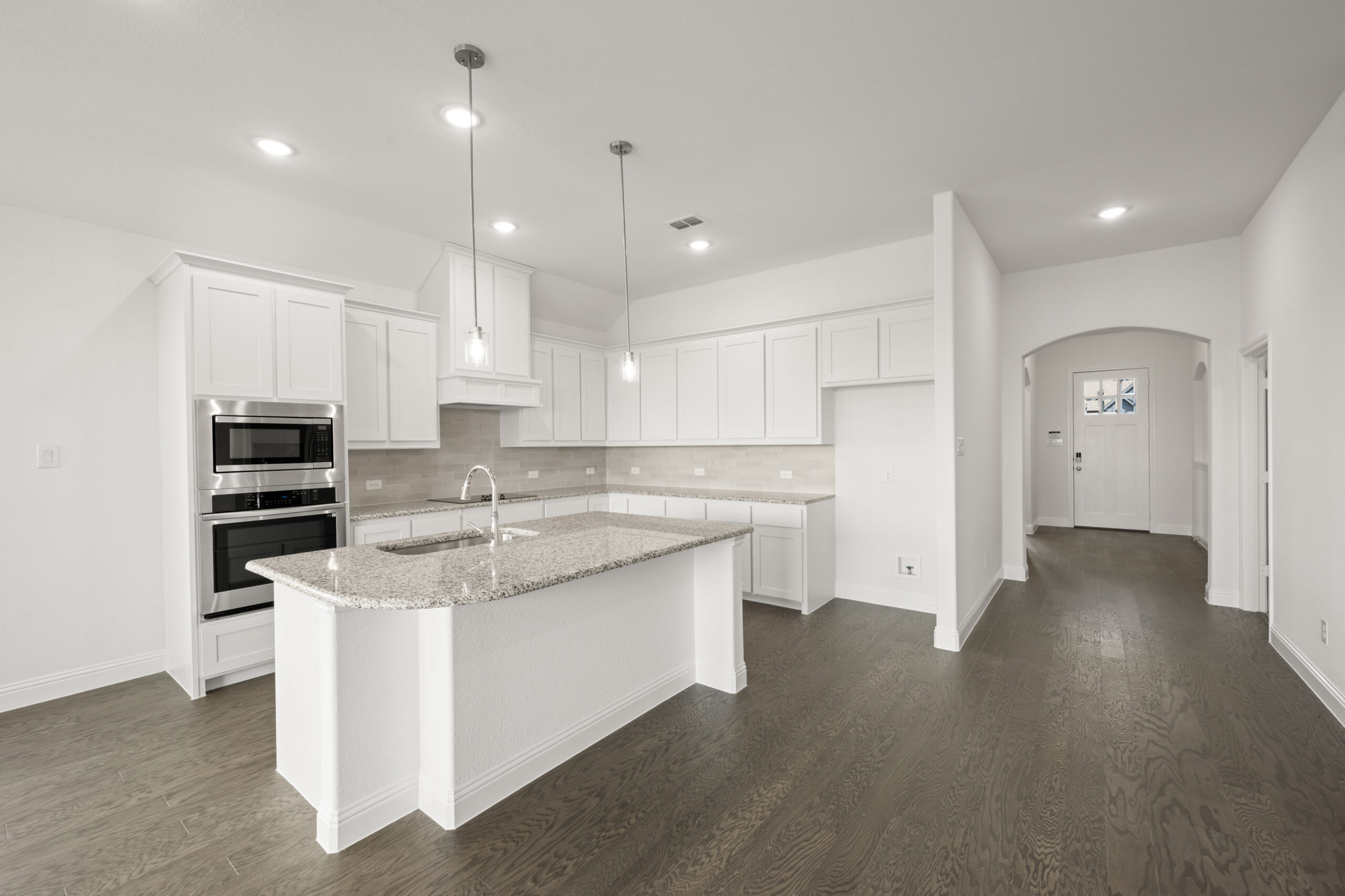 This smartly designed one-story home offers 3 bedrooms, 2 bathrooms, and an open layout that’s perfect for everyday living and entertaining. Step into a welcoming foyer that leads into the spacious family room, filled with natural light and seamlessly connected to the kitchen and nook. The kitchen features a large center island, walk-in pantry, and ample cabinetry—ideal for family meals or hosting friends. The private primary suite is tucked at the back of the home and includes a luxurious bathroom with dual sinks, a soaking tub, separate shower, and generous walk-in closet. Two secondary bedrooms are located at the front of the home, each with easy access to a full bath. Additional highlights include a full-sized utility room, a covered back patio, and a two-car garage.