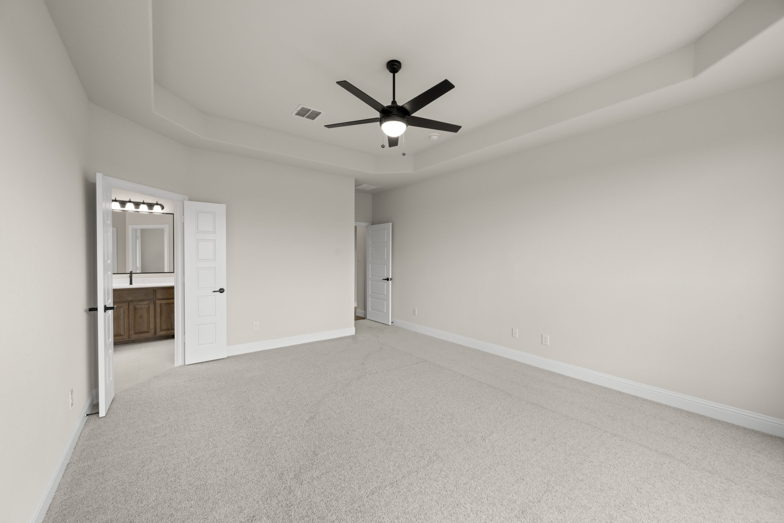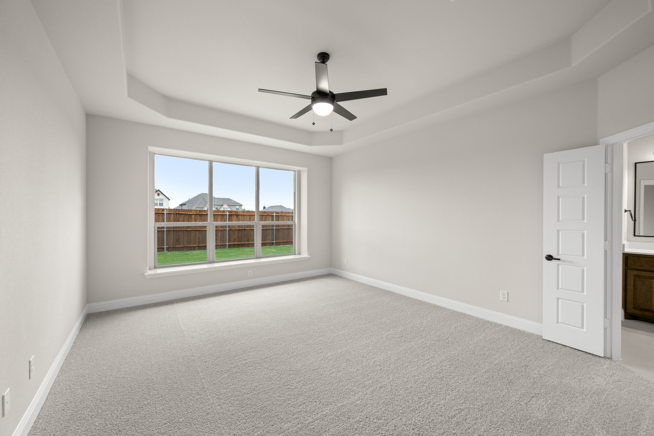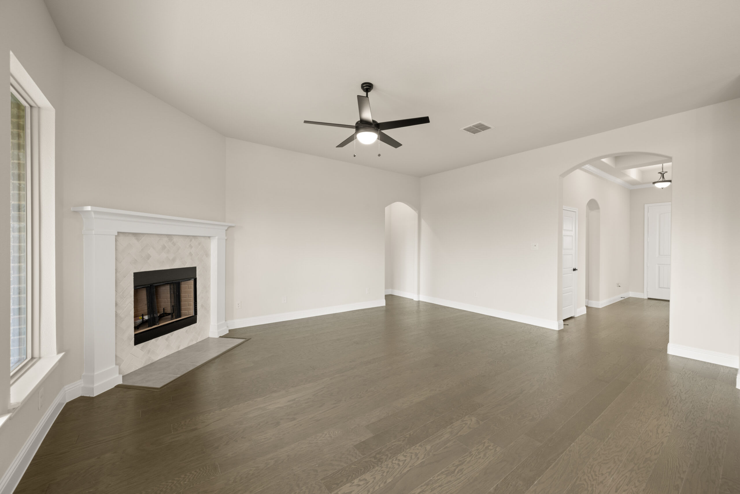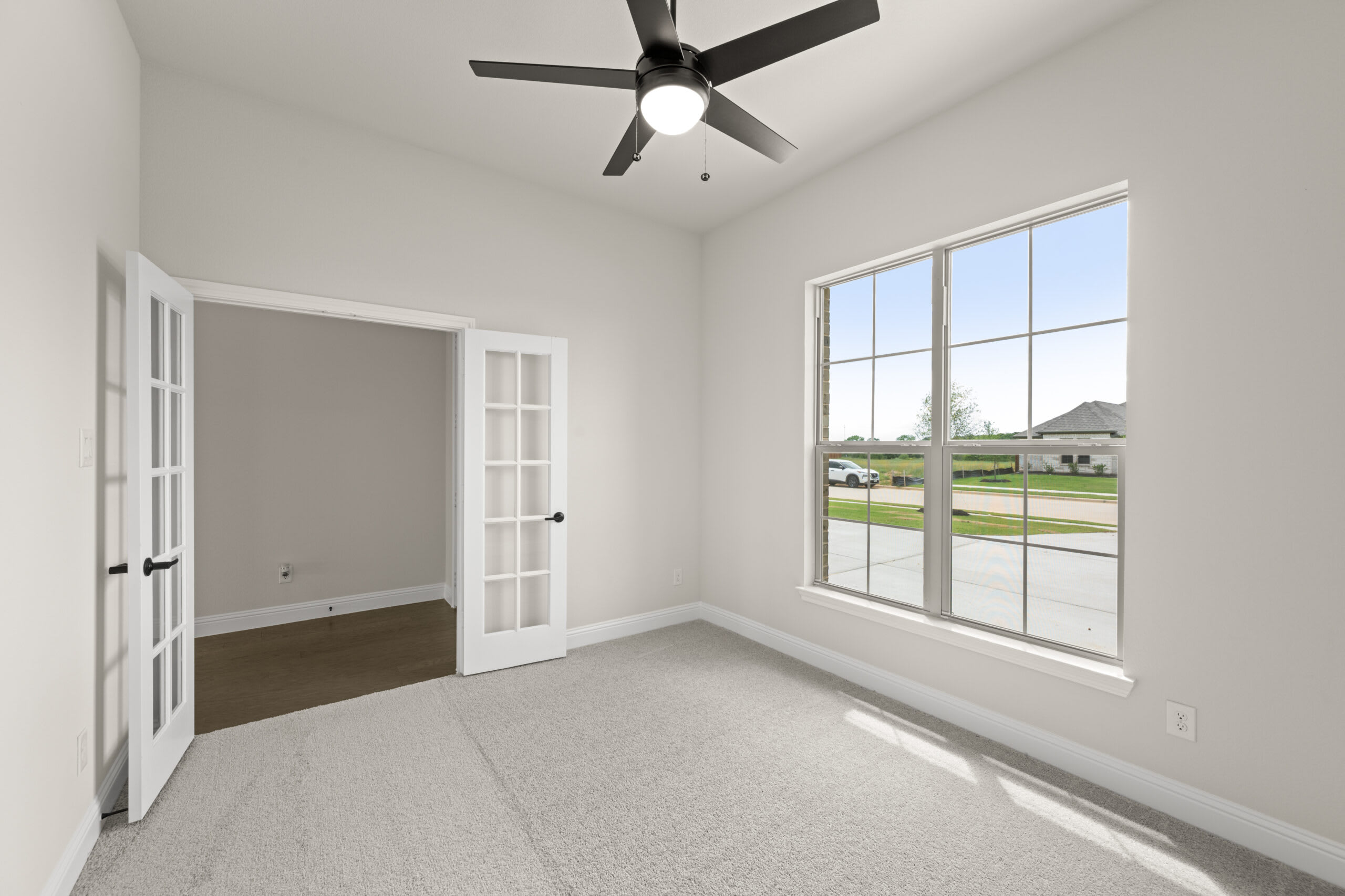 This expansive single-story home features four bedrooms, two bathrooms, and plenty of versatile living space. At the heart of the home is the spacious family room. The open-concept kitchen offers a large island, walk-in pantry, and flows seamlessly into the bright nook, perfect for casual dining. A formal dining room and private study provide additional space for hosting and working from home. The luxurious primary suite includes a spa-like bath with split vanities, a soaking tub, separate shower, and an oversized walk-in closet. Three secondary bedrooms, each with walk-in closets, share a full bath with dual sinks. A convenient utility room is located near the two-car garage, making daily routines simple. The covered patio extends your living space outdoors, ideal for relaxing or entertaining. Thoughtful design and elegant details make this home perfect for both everyday living and special occasions.