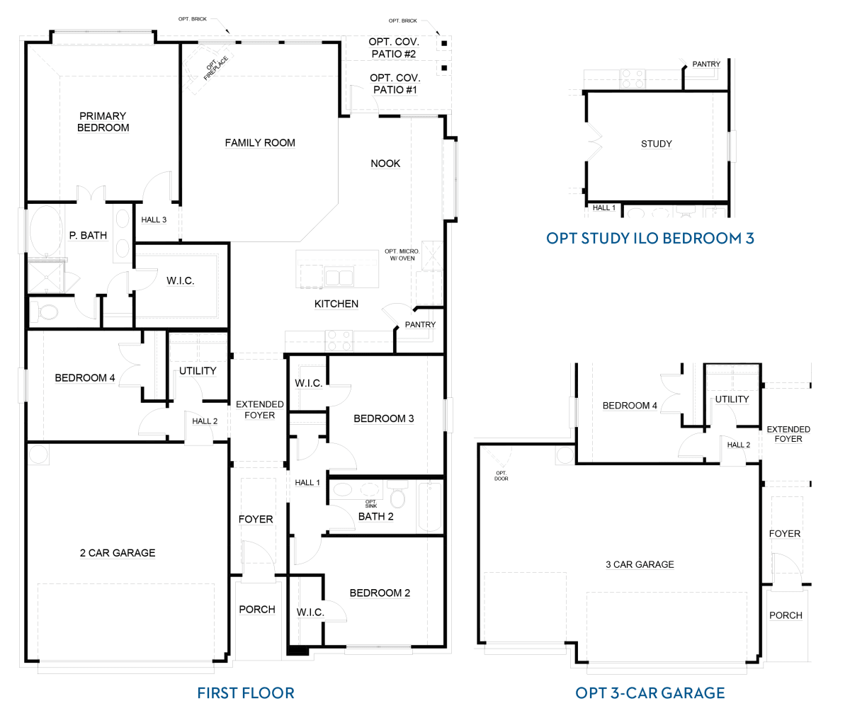 Step inside this charming single-story home featuring four bedrooms and up to 1,832 square feet. From the extended foyer, the open kitchen and adjacent family room create a sense of connection. The large windows in the nook and primary bedroom bring natural light and warmth while the secondary bedrooms with a shared bathroom offer space for large families, with the option to convert the third bedroom into a study. With multiple elevation choices, optional covered patios and the ability to convert the two-car garage into a three-car garage, this floor plan perfectly matches any lifestyle.