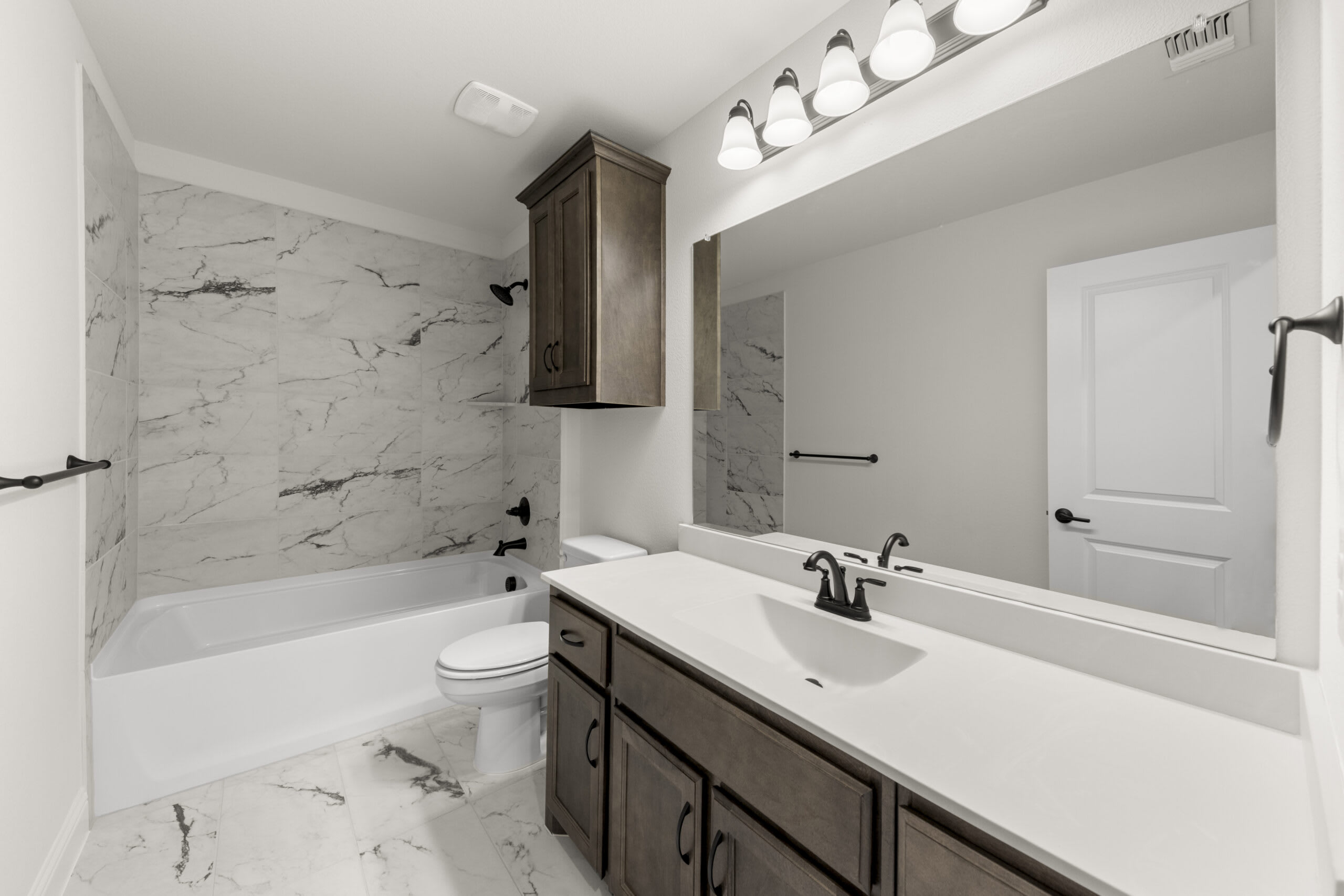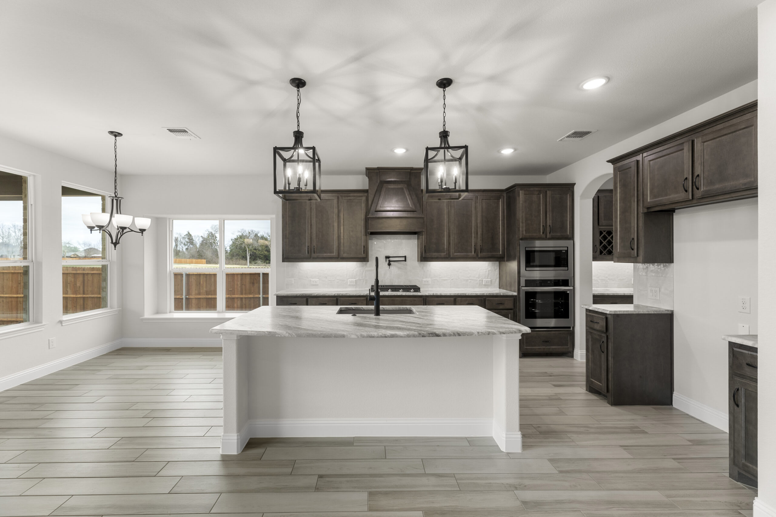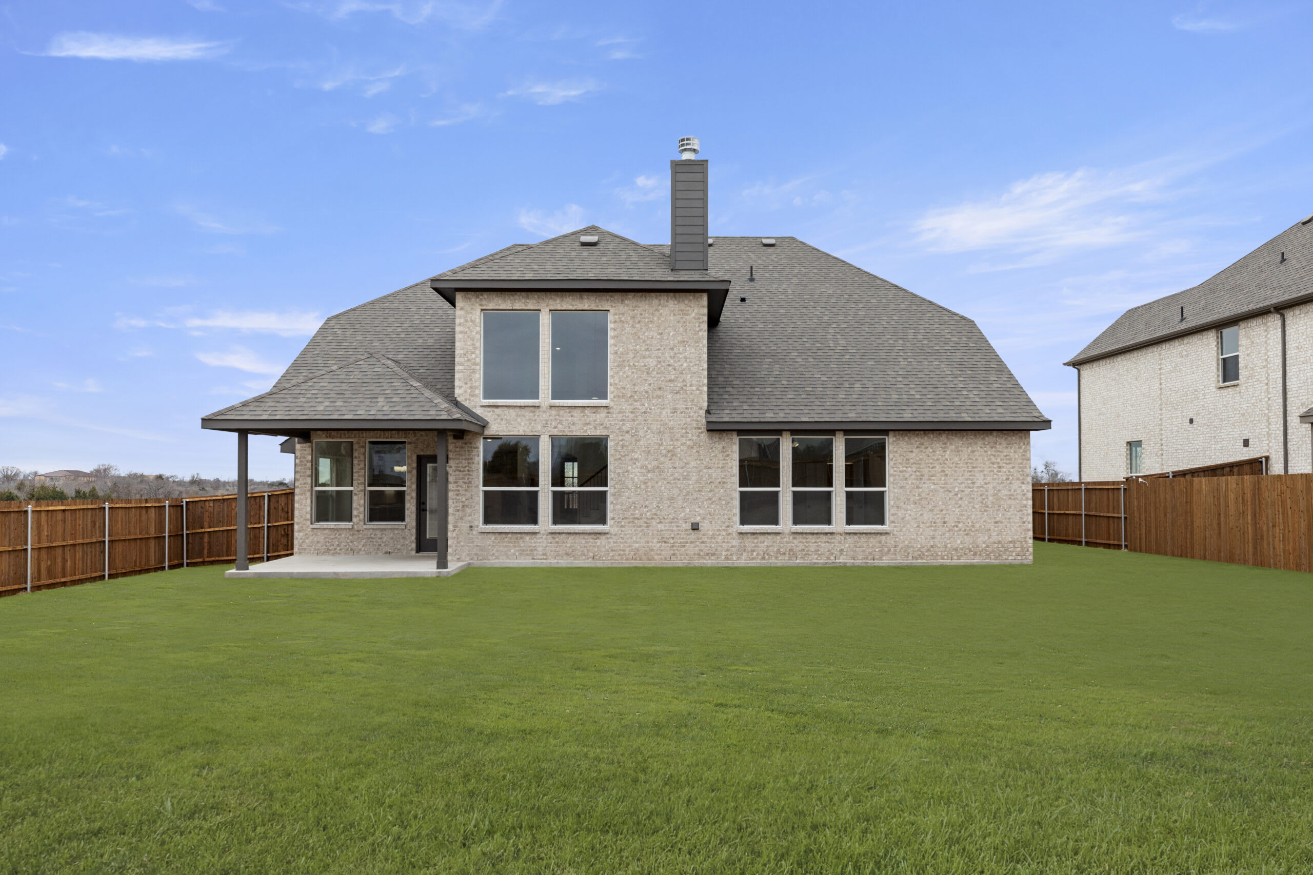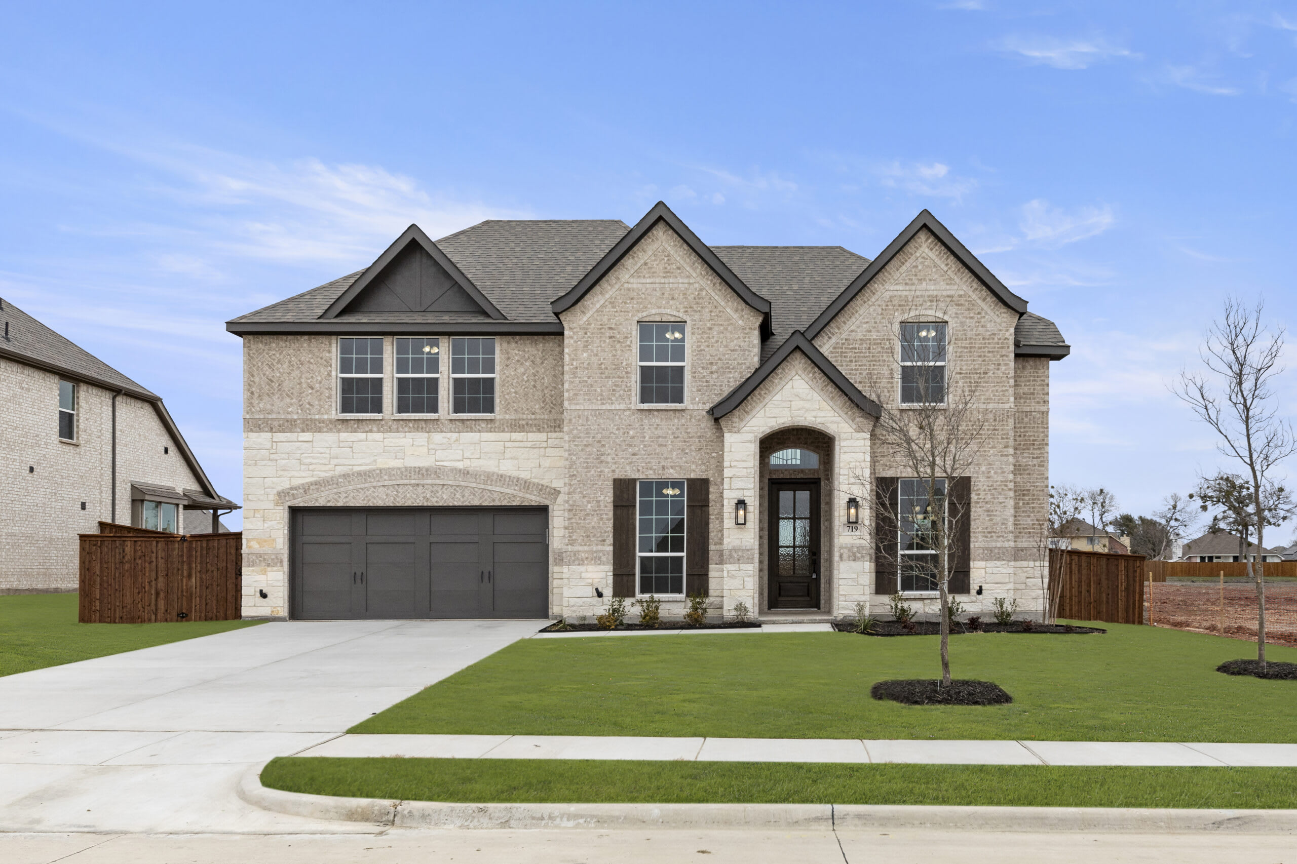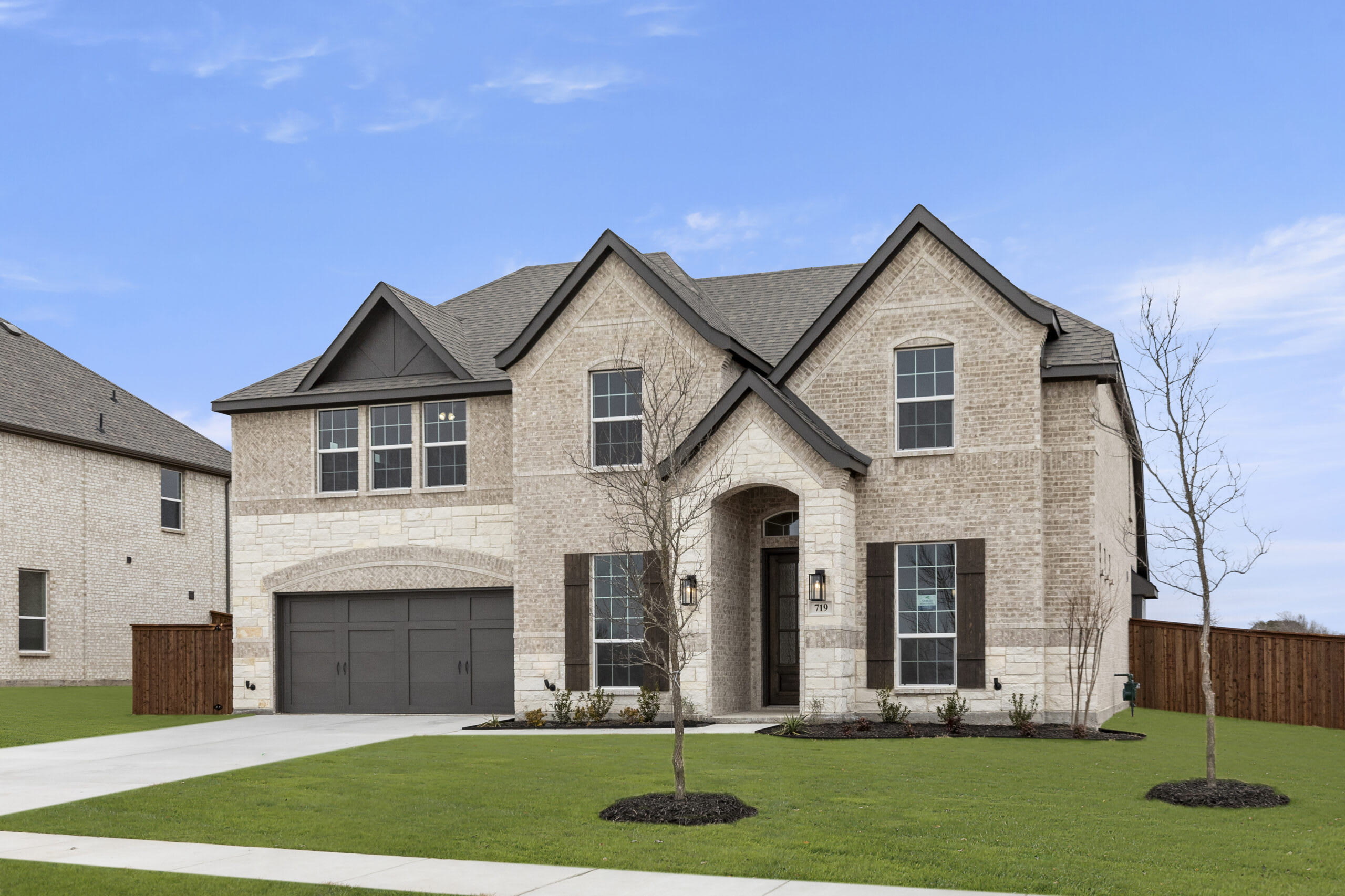 This stunning two-story home offers an exceptional blend of elegance and functionality. On the first floor, the expansive family room is centered around a floor-to-ceiling stone fireplace, creating a warm and inviting atmosphere. The spacious kitchen features a breakfast nook overlooking a covered patio, while the adjacent dining room and study add versatility and charm. The primary suite boasts a luxurious en-suite bathroom with a soaking tub, separate shower, and an oversized walk-in closet. Upstairs, the second floor includes a media room, a game room, and three additional bedrooms with access to two full baths, ensuring plenty of space for everyone. The two-car garage provides ample storage, completing this thoughtfully designed home that balances style, comfort, and convenience.