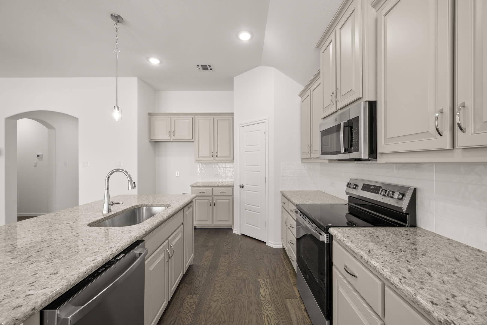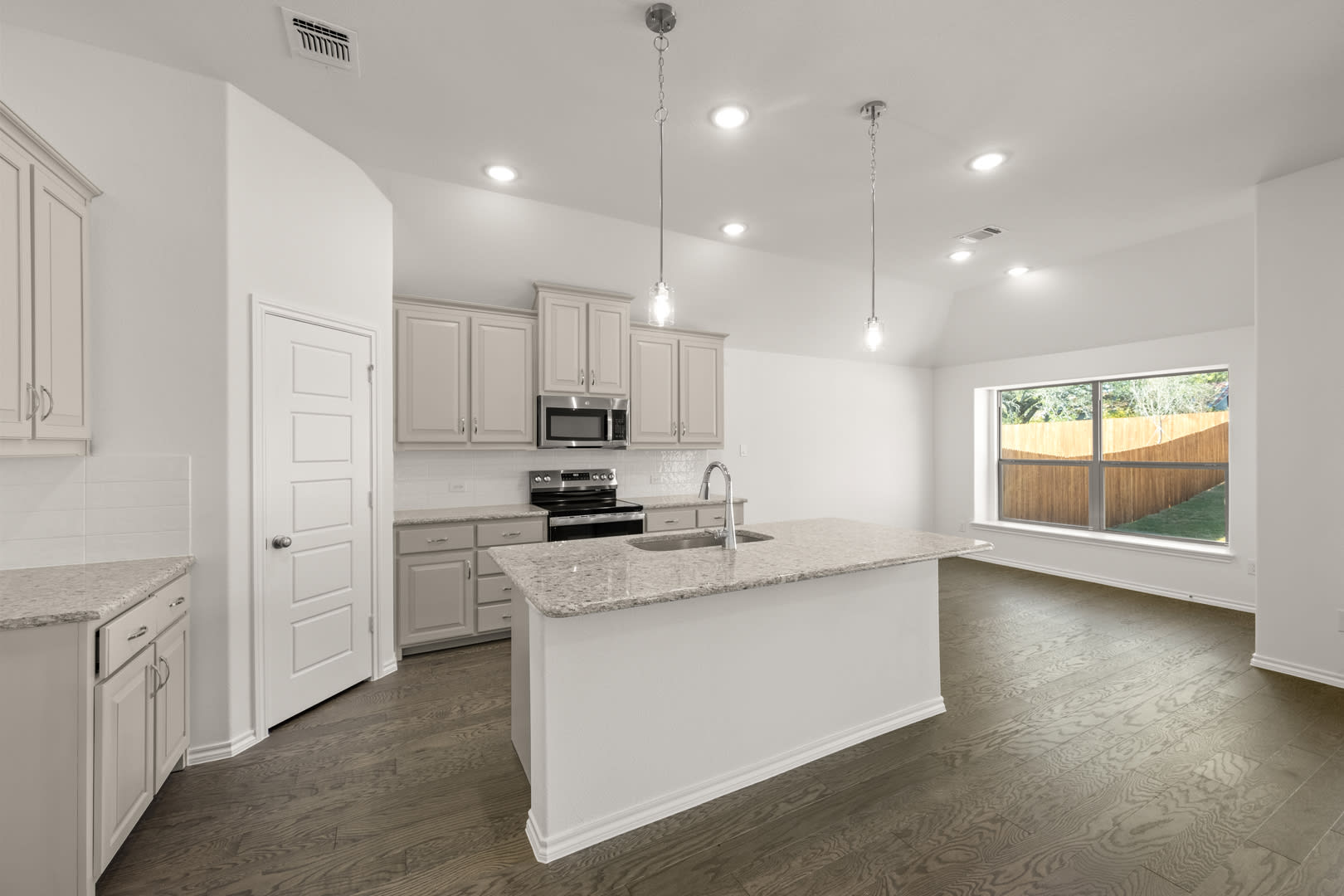 This single-story home in the Waterford Park community of Weatherford, TX offers 3 bedrooms, 2 bathrooms, and 1,700 square feet of well-designed living space. The open-concept layout connects the kitchen, nook, and spacious family room, creating a functional and inviting area for both everyday living and entertaining. The kitchen is equipped with an electric range, upgraded cabinetry, and a stylish backsplash, with access to an optional covered patio for outdoor enjoyment. The private master suite features a large walk-in closet and a luxurious bath with an upgraded shower tile pan. Two additional bedrooms and a full bath provide space for family or guests, while the extended foyer, utility room, and 2-car garage add convenience. With upgraded flooring, modern finishes, and thoughtful details throughout, this home offers the perfect blend of comfort and style in a sought-after community.