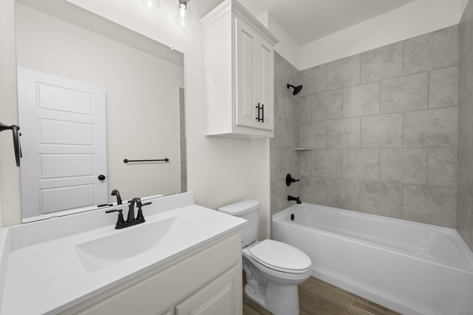 Discover this stunning two-story home in Weatherford, TX, offering 5 bedrooms, 3 bathrooms, and 2,900 square feet of thoughtfully designed living space. The main level features an open-concept layout with a spacious family room, modern kitchen with electric range, island, and stylish backsplash, along with a dining nook that opens to an optional covered patio. The private master suite includes a large walk-in closet and elegant bath with dual vanities, soaking tub, and walk-in shower. An additional bedroom and full bath are also located downstairs. Upstairs, you’ll find a generous game room, three more bedrooms—most with walk-in closets—a Jack-and-Jill bath, and a cozy sitting area. With upgraded flooring options throughout and tile in all bathrooms, this home offers both comfort and convenience in a sought-after Weatherford neighborhood close to schools, shopping, and more.