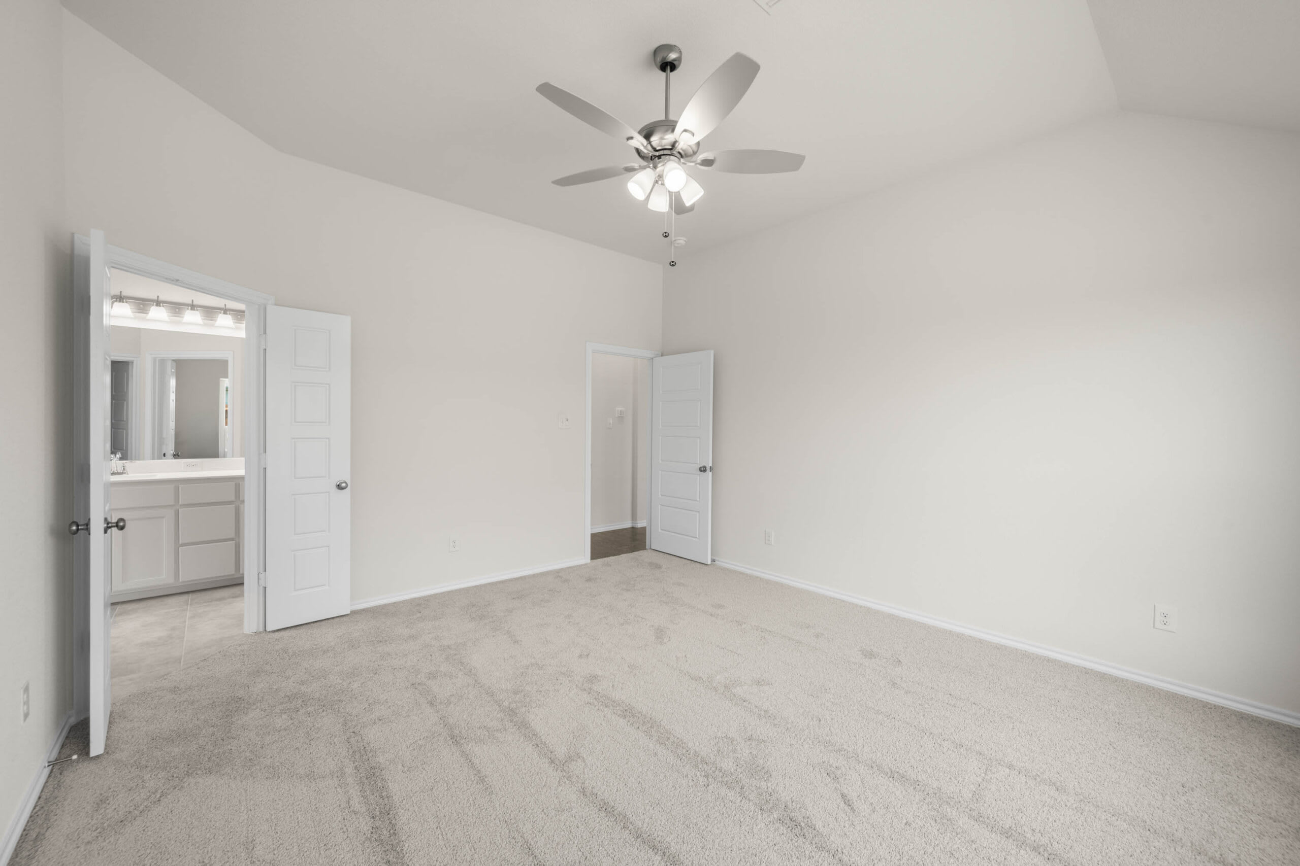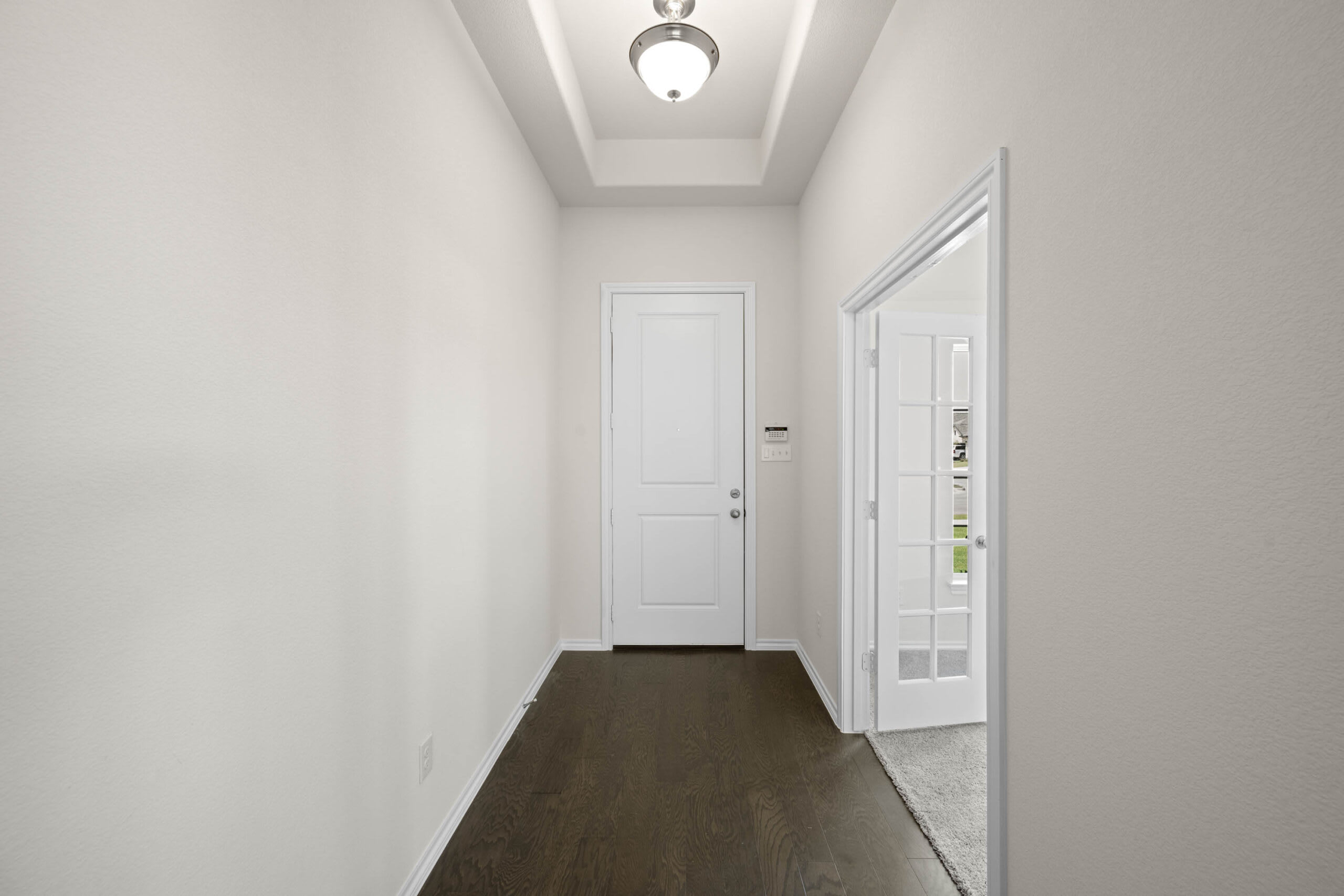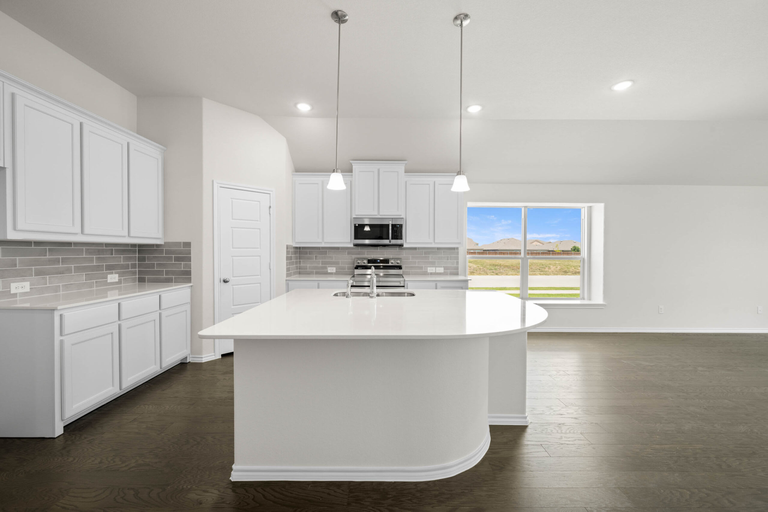 This beautiful single-story home is built to make your life easy! Step inside from the covered front porch and the foyer with boxed ceilings welcomes you into your home. Just off the foyer is the study with double doors for those needing a space to work from home or a quiet space to enjoy hobbies. Continue down the foyer to the open-concept kitchen, a space designed to be the hub of the home. With ample storage and counter space, stainless steel appliances, a curved island, a planning desk, and a corner walk-in pantry, day-to-day life is made easy. The kitchen opens to a breakfast nook with a built-in window seat, a sunny space to enjoy early morning coffee, or additional seating. The exclusive primary suite is set back from the living spaces, providing parents optimal privacy and relaxation at the end of each day. The adjoined bathroom is complete with a dual sink vanity, a separate walk-in shower, a large garden tub, and a spacious walk-in closet. Two additional bedrooms are located toward the front of the home. Both bedrooms have easy access to a full bathroom and linen closet, making getting ready in the mornings a breeze. For added privacy and convenience, the full-sized utility room provides direct access to the two-car garage.