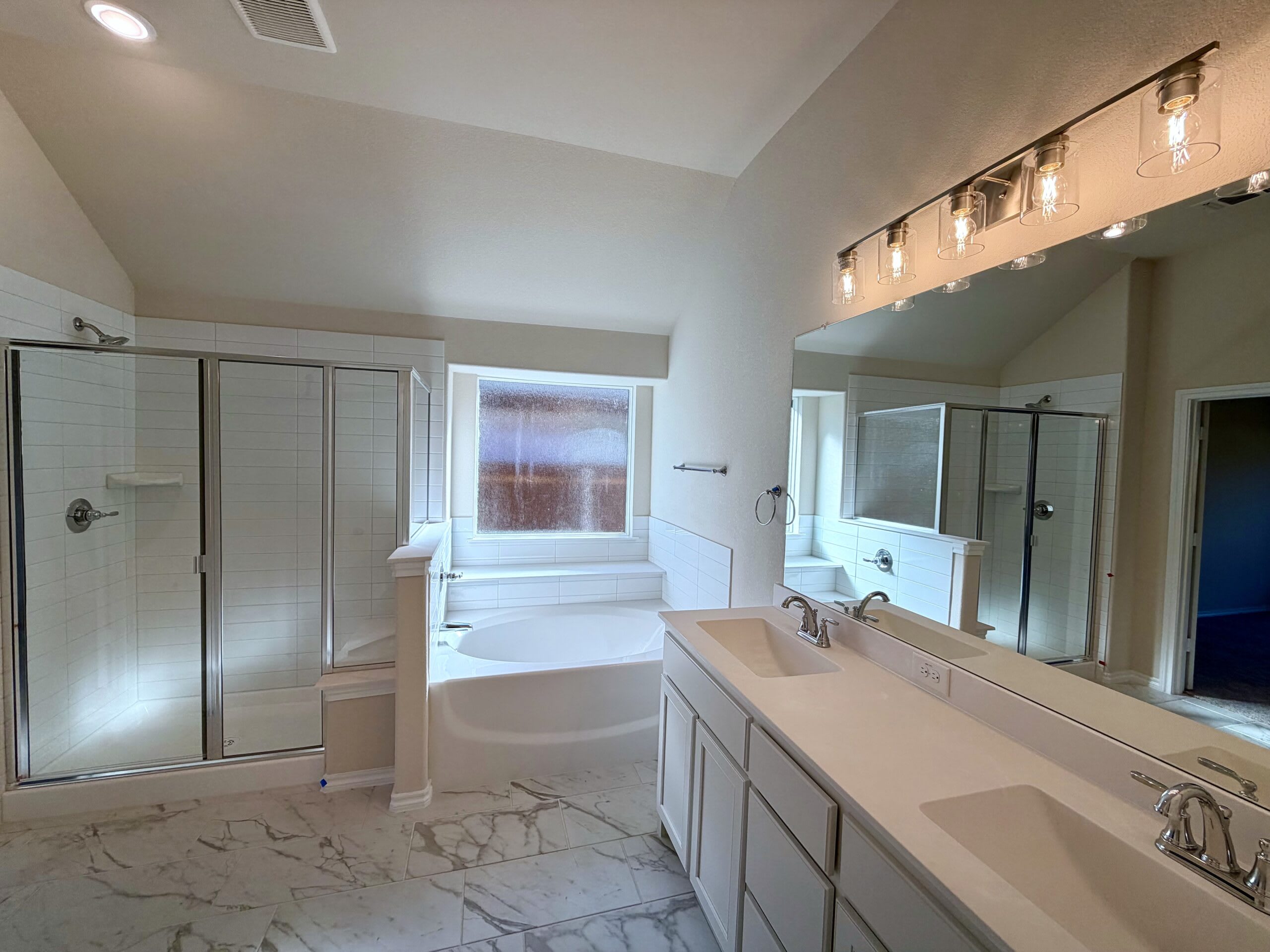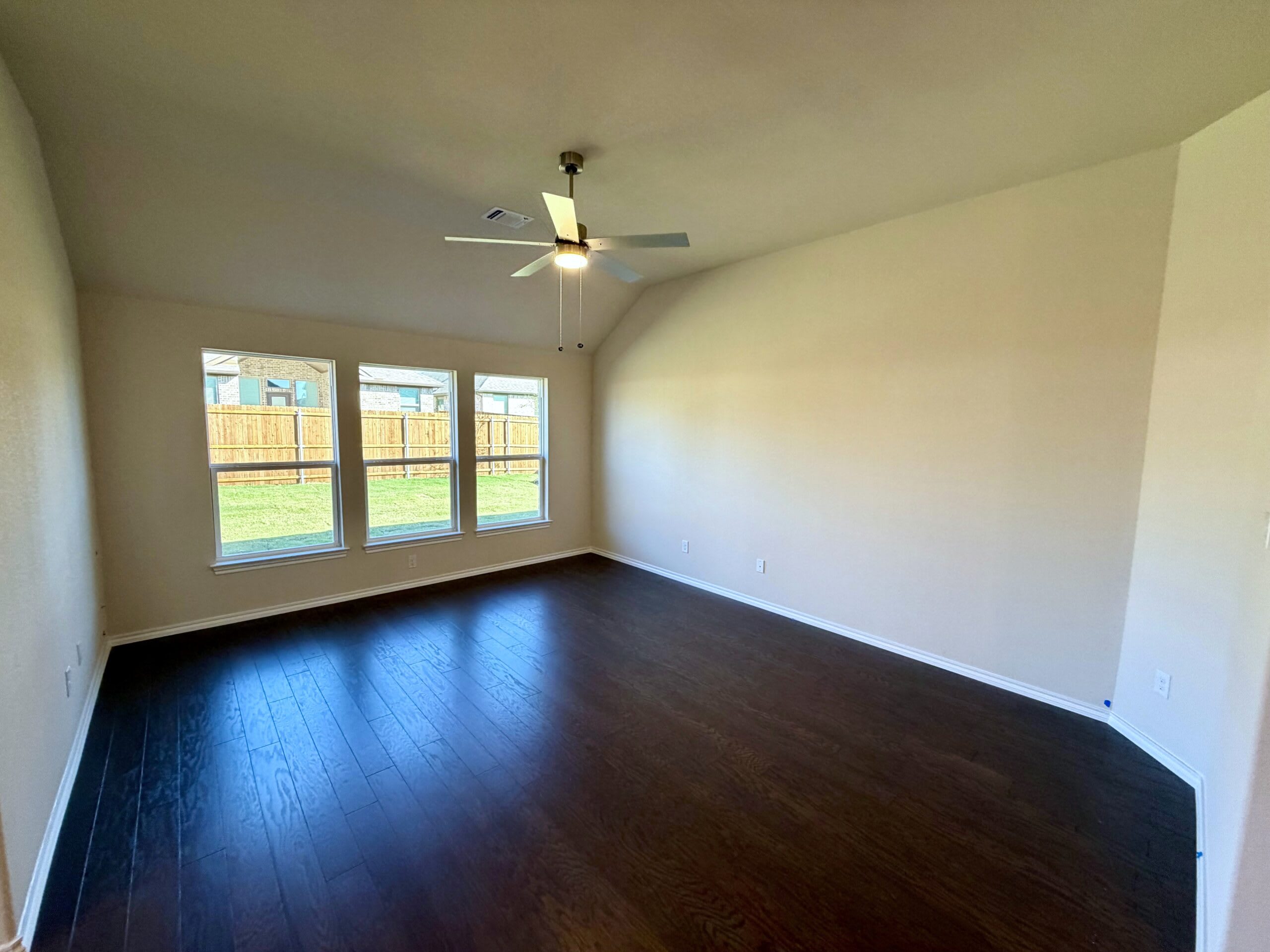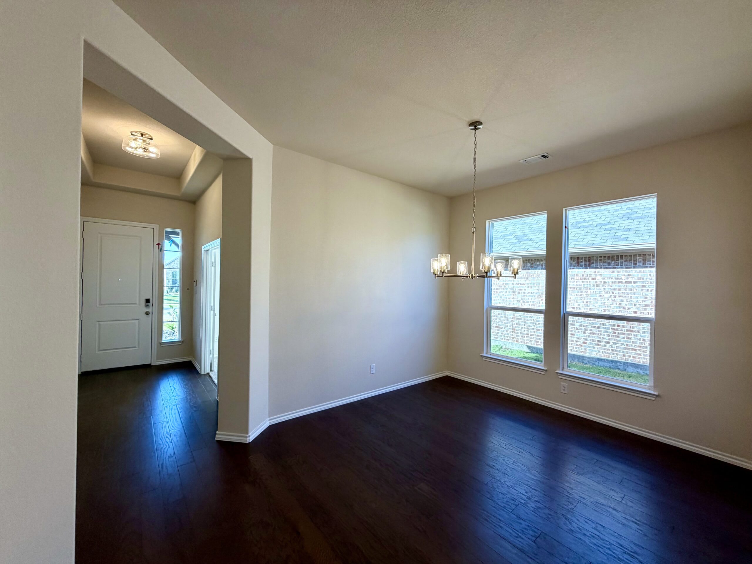 This spacious, single-story home is ideal for families and entertainers alike, offering an open-concept layout with generous gathering spaces and a private primary retreat. From the covered porch, you’re welcomed into a foyer with boxed ceilings and a dedicated study—perfect for working from home. A formal dining room flows into the well-appointed kitchen featuring a curved island, stainless steel appliances, ample storage, and a cozy breakfast nook with a window seat and patio access. The family room is perfect for relaxing or hosting. Tucked away for privacy, the primary suite includes vaulted ceilings, a window seat, and a luxurious bath with a dual vanity, a garden tub, separate shower, and walk-in closet. Two secondary bedrooms and a full bath form a separate wing, ideal for kids or guests. A utility room and two-car garage complete the home’s smart and functional layout.