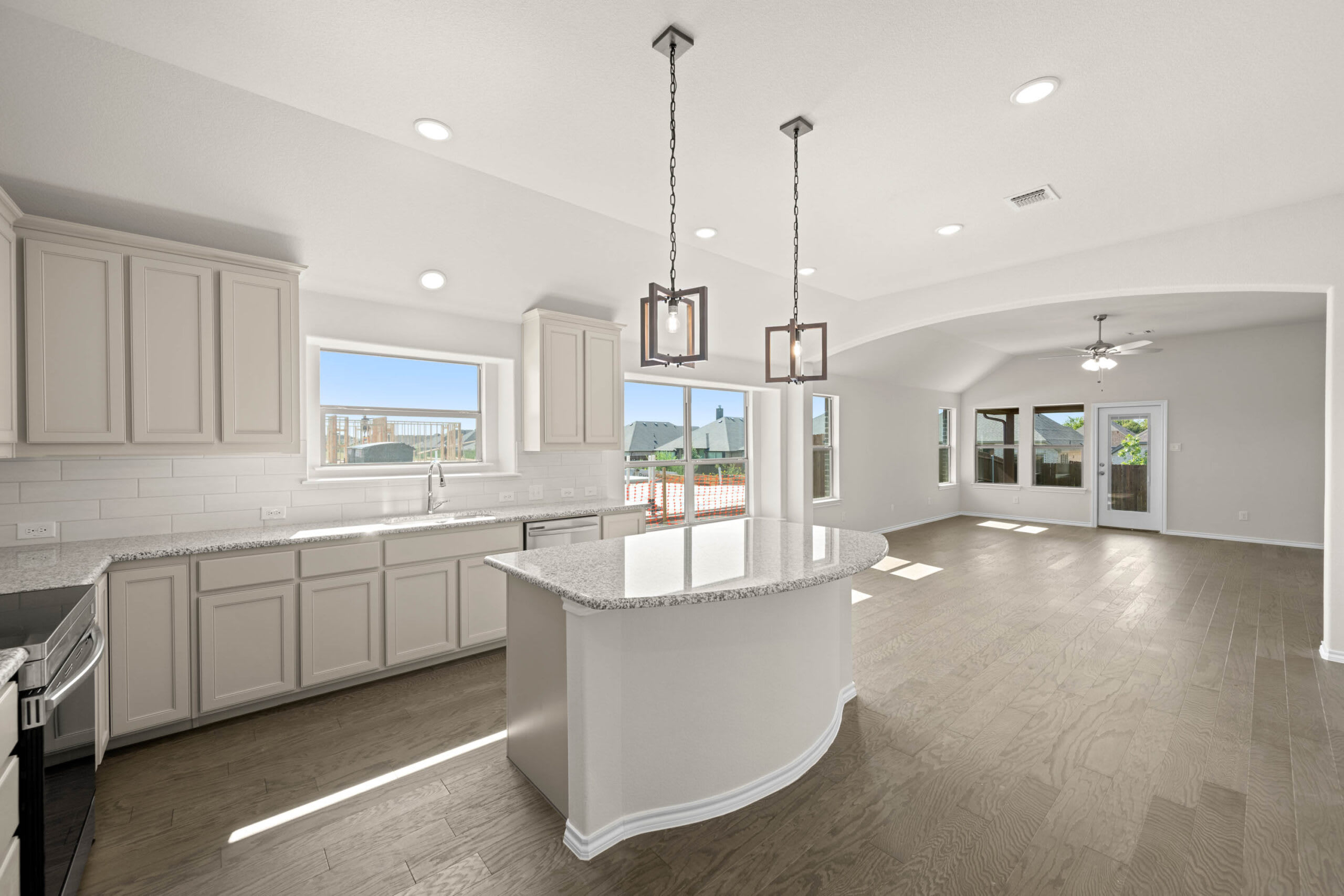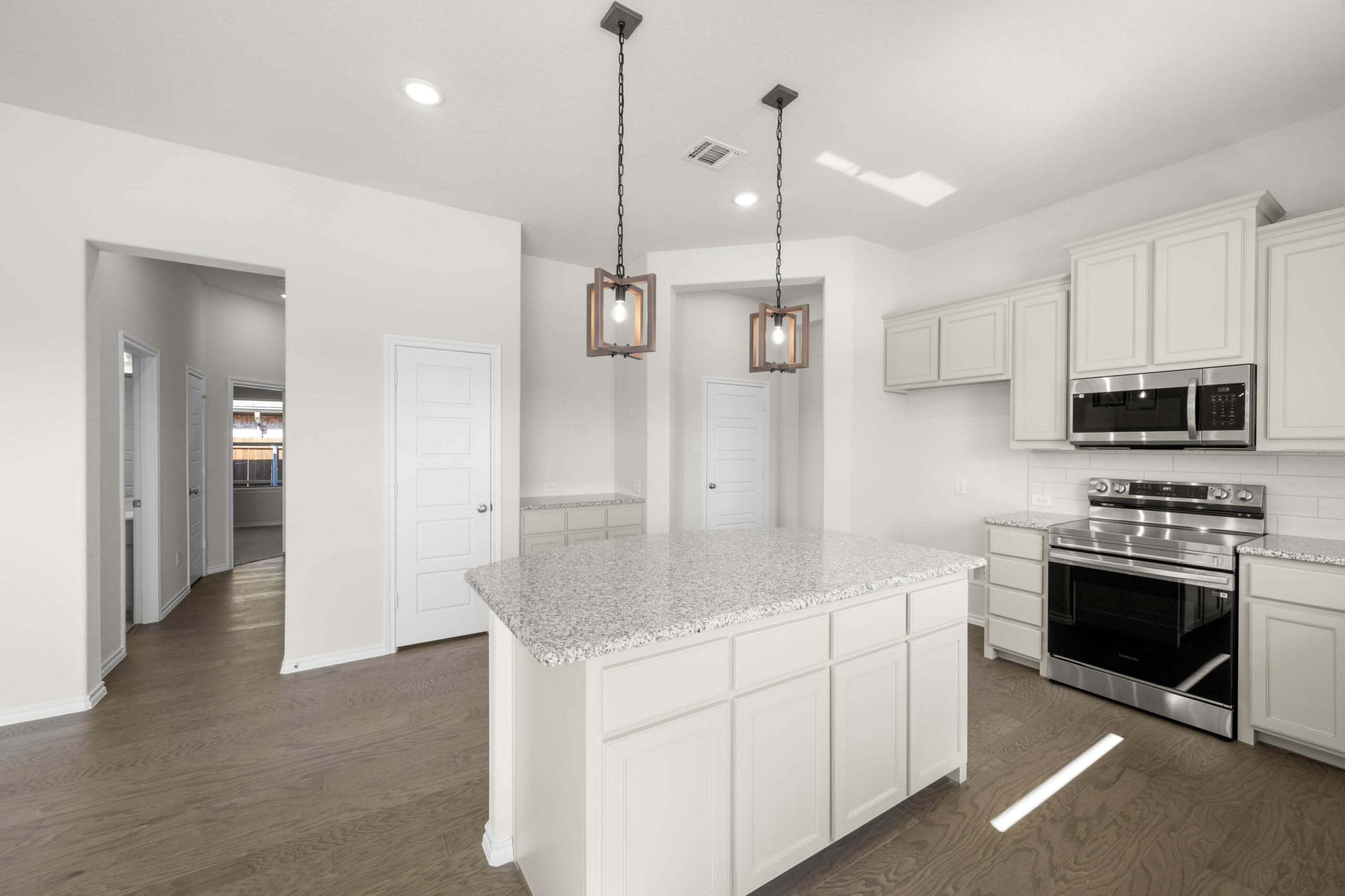 This versatile home features a dining room at the entrance and a study near the primary suite—both offering flexible space that can easily be transformed into a home office, playroom, or additional living area to fit your needs. No matter your style, this floorplan is easy to make uniquely your own. Enjoy a quiet evening on your back patio or entertain in this expansive kitchen where the home chef can relish the inclusion of a window over the sink, a large center island with bar seating, a walk-in pantry, a planning desk, and an abundance of storage. In true transitional style, the kitchen is open to the dining nook with a built-in seat and a large window that allows plenty of natural light to fill the room. Beautiful wood flooring throughout the family spaces is complemented by lots of natural light. A luxurious primary suite enjoys views over the yard from the built-in window seat. Relax in style in the beautiful primary bathroom with twin sinks, a soaking tub, a walk-in shower with a seat, and a large walk-in closet. Two additional bedrooms, both have easy access to the full bath and utility room.