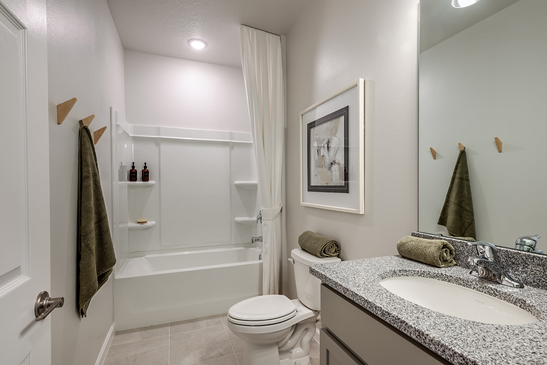 Boasting casual and functional spaces, like a first-floor laundry room and upstairs loft and bathroom, Laurel is defined by a thoughtful two-story layout. From a top-floor study that offers privacy for those who work from home to the convenience of two ground-floor bedrooms, this is contemporary living at its peak! Plus, the great room opens out to a covered porch, ensuring a seamless connection between indoor and outdoor gathering spaces.