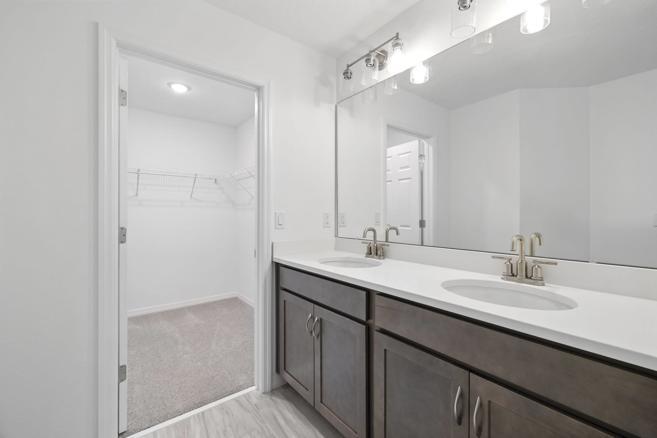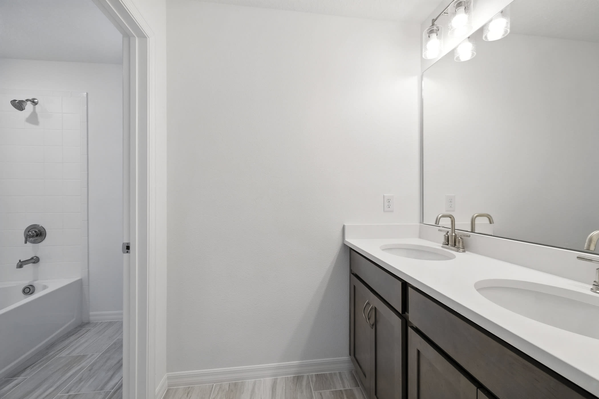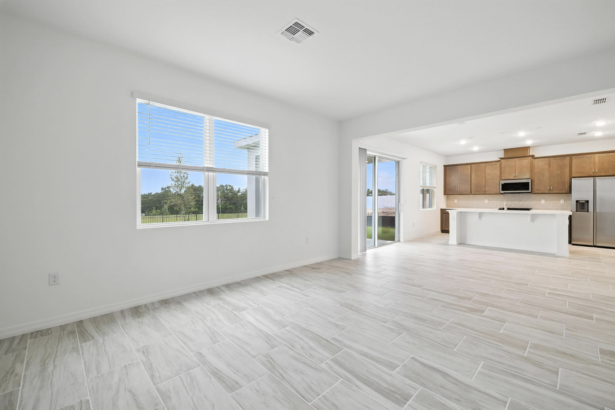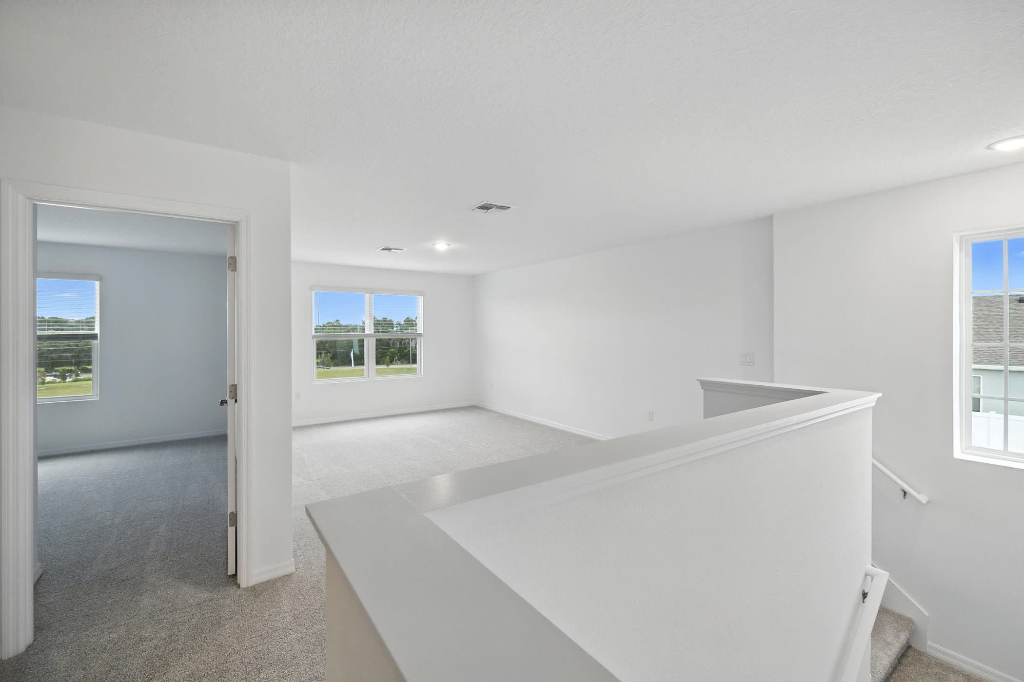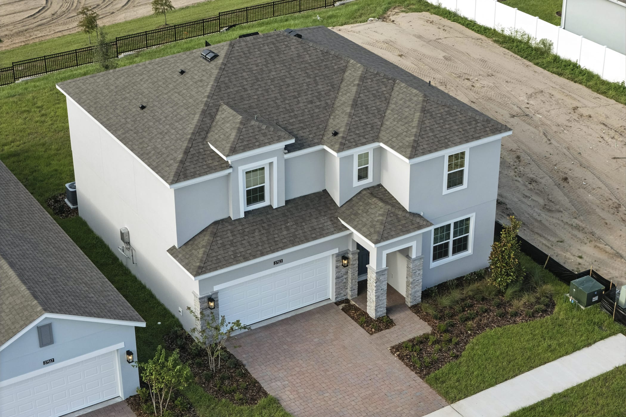 The Newcastle is a two-story home that focuses on functionality and gathering spaces. The first floor features a large living room, which can function as a formal dining room, an office space or a game room. The generous kitchen opens up to the dining and living space as well as the covered lanai—perfect for entertaining and gathering. The second floor, along with the bedrooms and laundry space, features an enormous gathering room—perfect for a kids’ playroom, media room or home exercise suite.