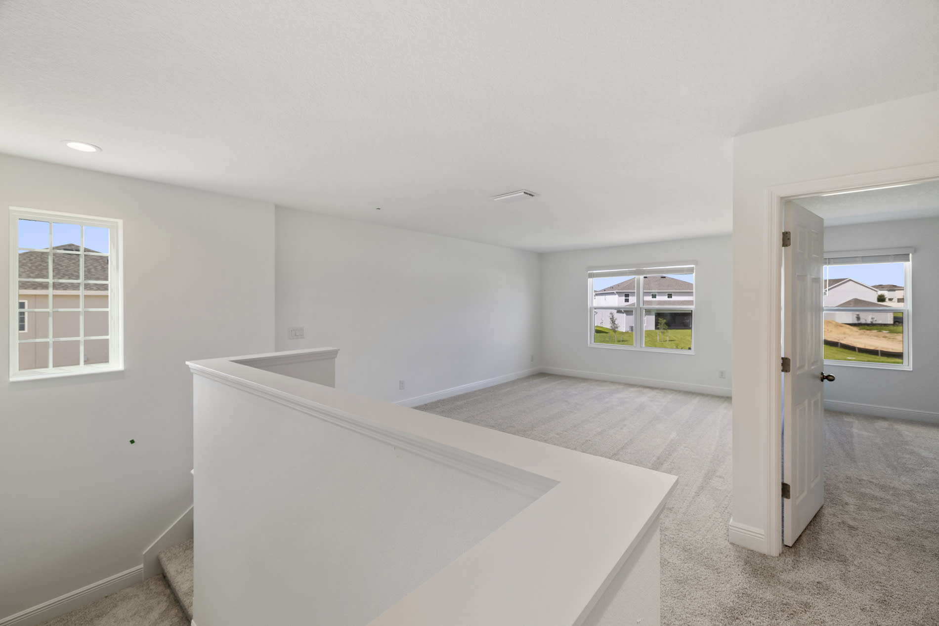 The Newcastle is a two-story home that focuses on functionality and gathering spaces. The first floor features a large living room, which can function as a formal dining room, an office space or a game room. The generous kitchen opens up to the dining and living space as well as the covered lanai—perfect for entertaining and gathering. The second floor, along with the bedrooms and laundry space, features an enormous gathering room—perfect for a kids’ playroom, media room or home exercise suite.