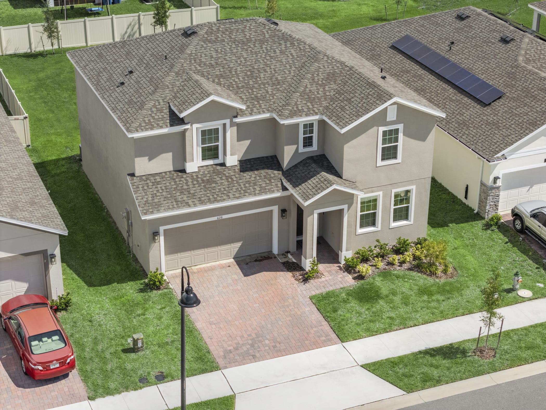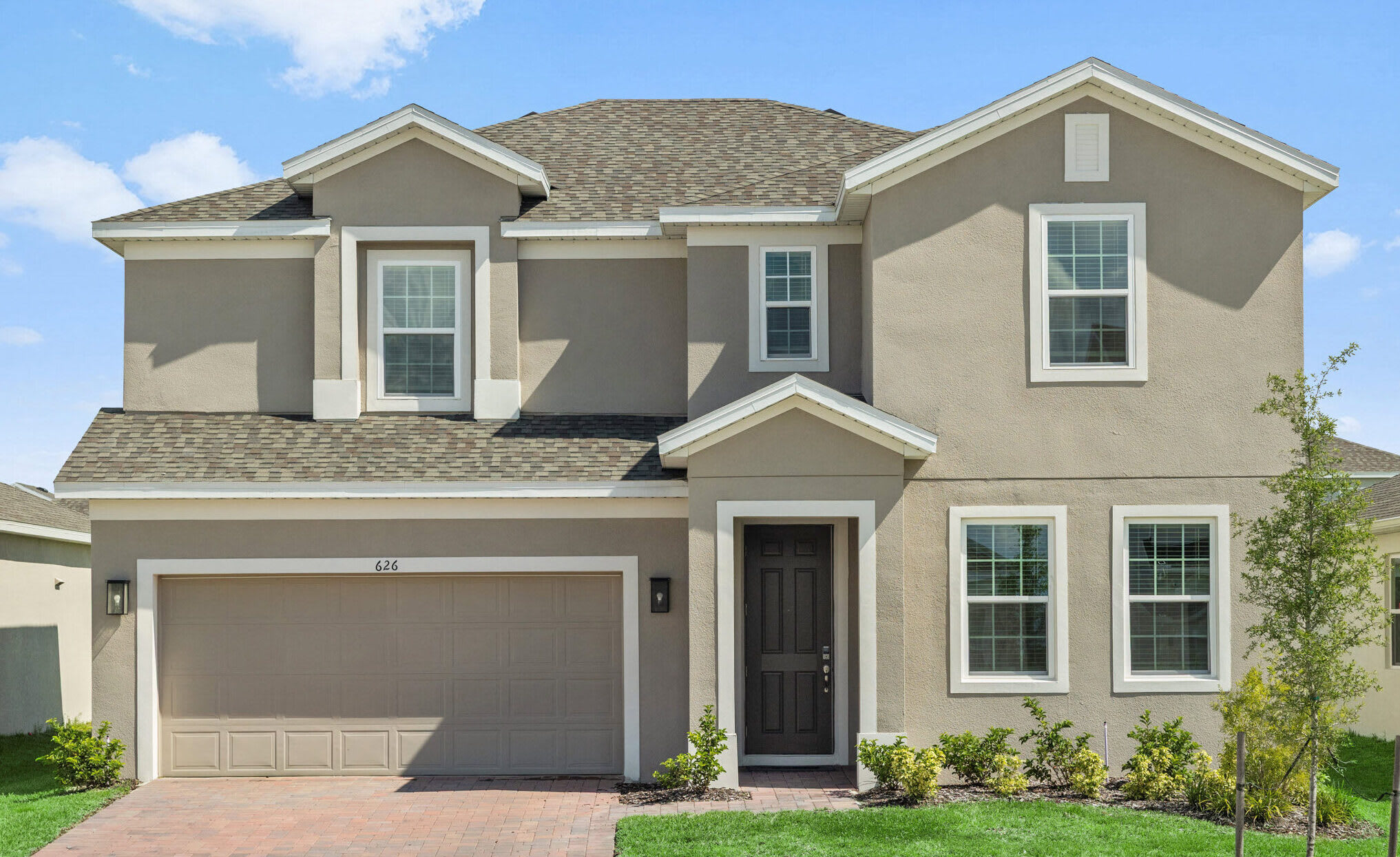 The Newcastle is a two-story home that focuses on functionality and gathering spaces. The first floor features a large living room, which can function as a formal dining room, an office space or a game room. The generous kitchen opens up to the dining and living space as well as the covered lanai—perfect for entertaining and gathering. The second floor, along with the bedrooms and laundry space, features an enormous gathering room—perfect for a kids’ playroom, media room or home exercise suite.